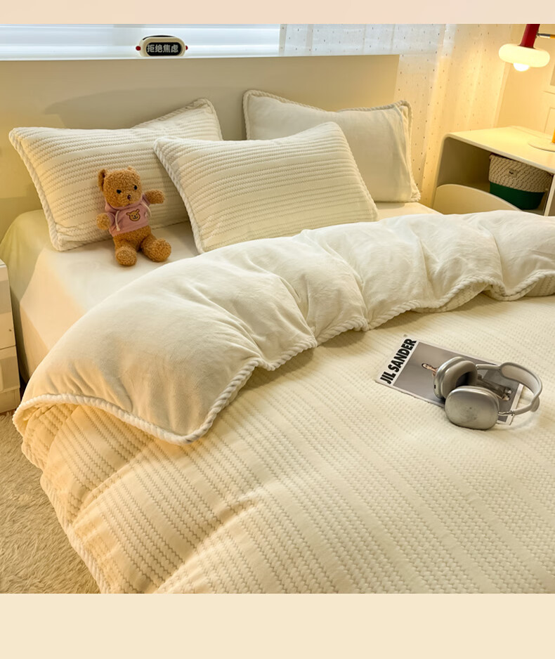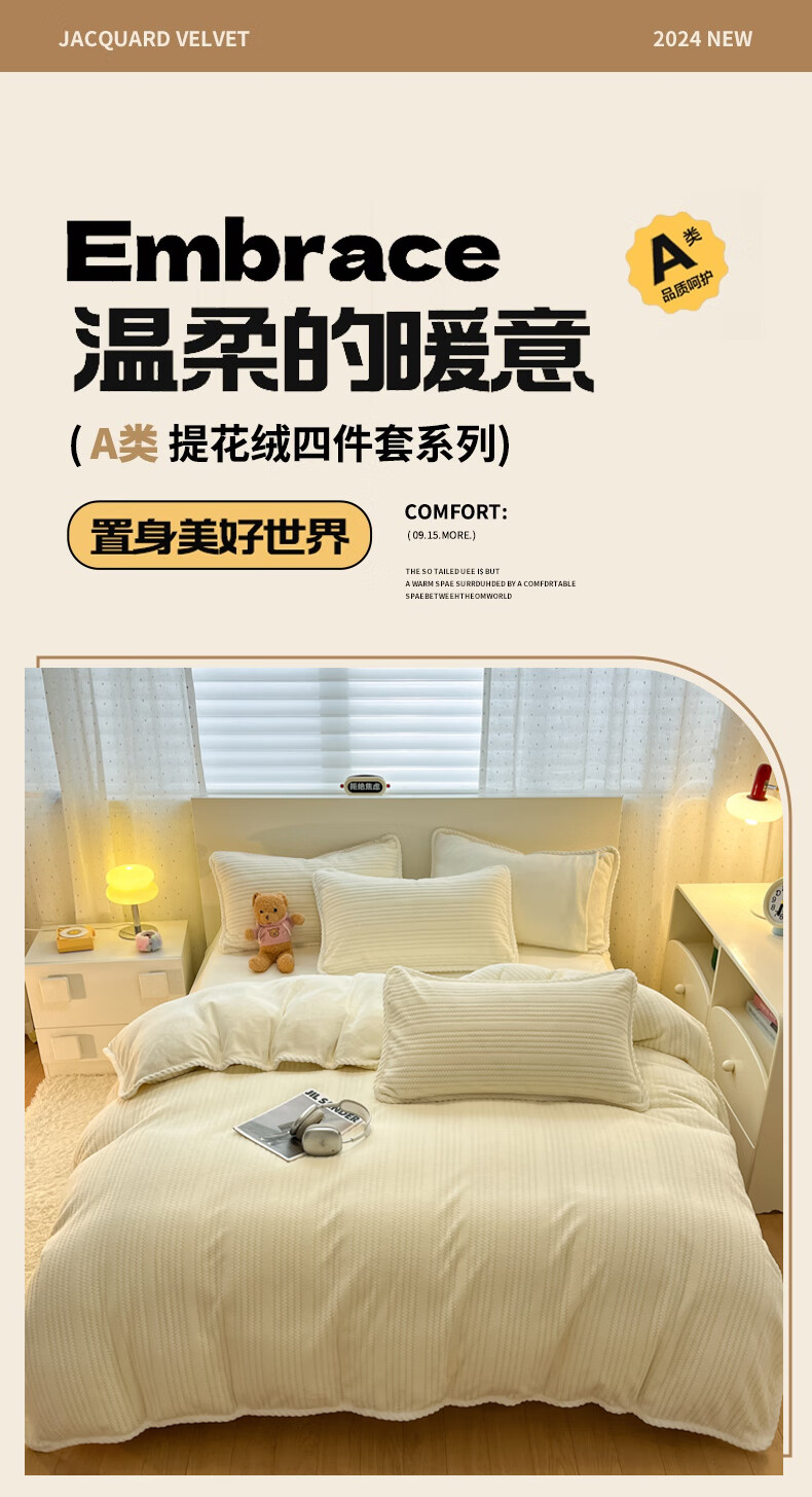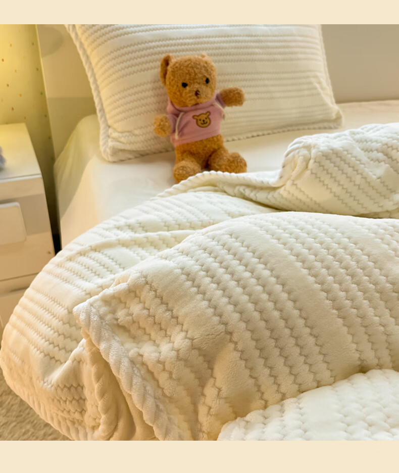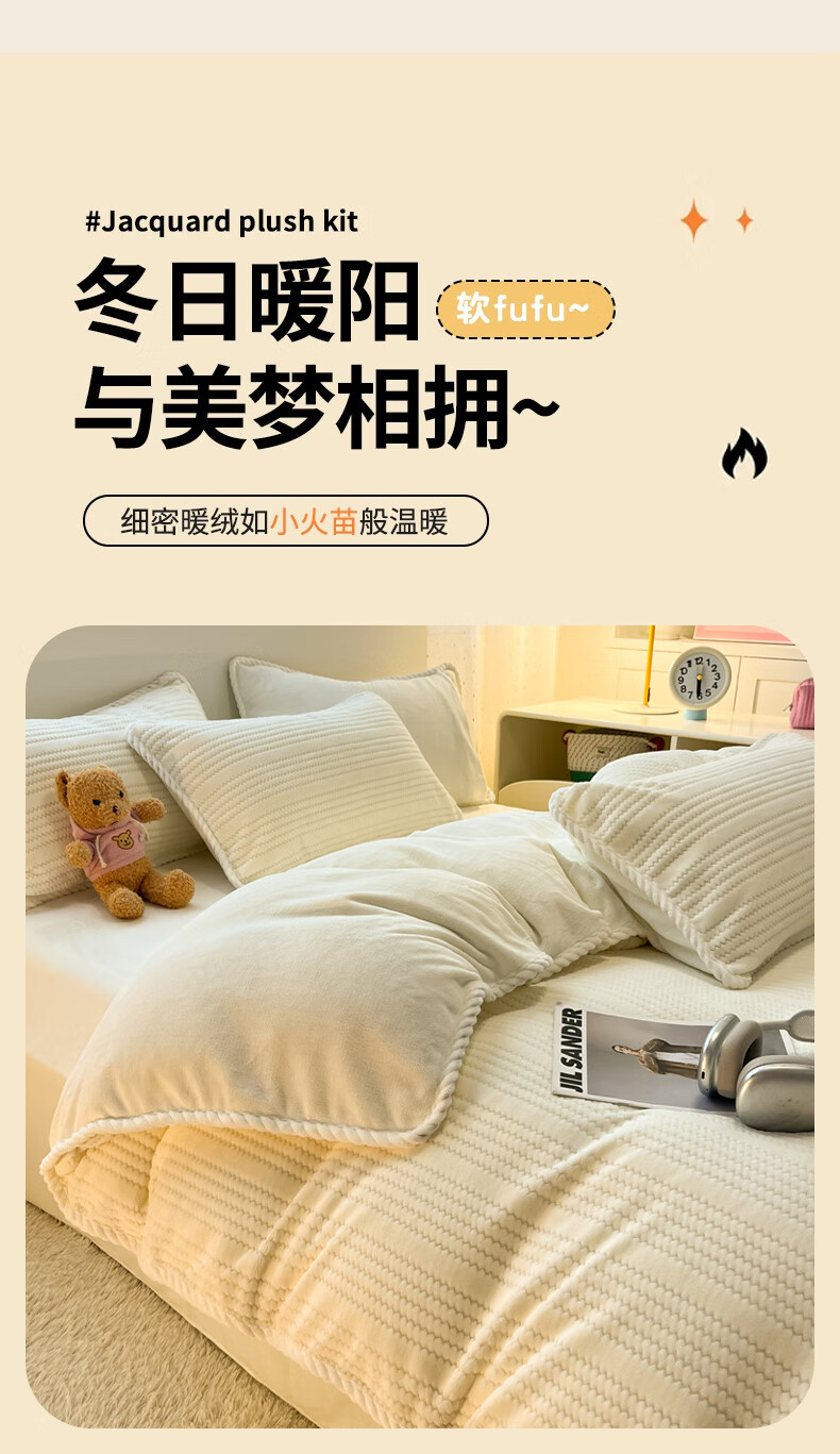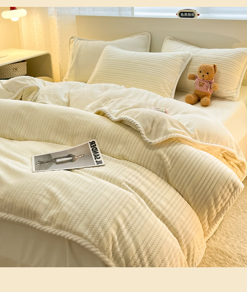 猫人(MiiOW)牛奶绒床上四件套 冬季加厚保暖提花被套床单床笠单双人床品 提花-碧落【亲肤细腻保暖舒适】 0.9/1.2 床单款 三件套(被套150*200)