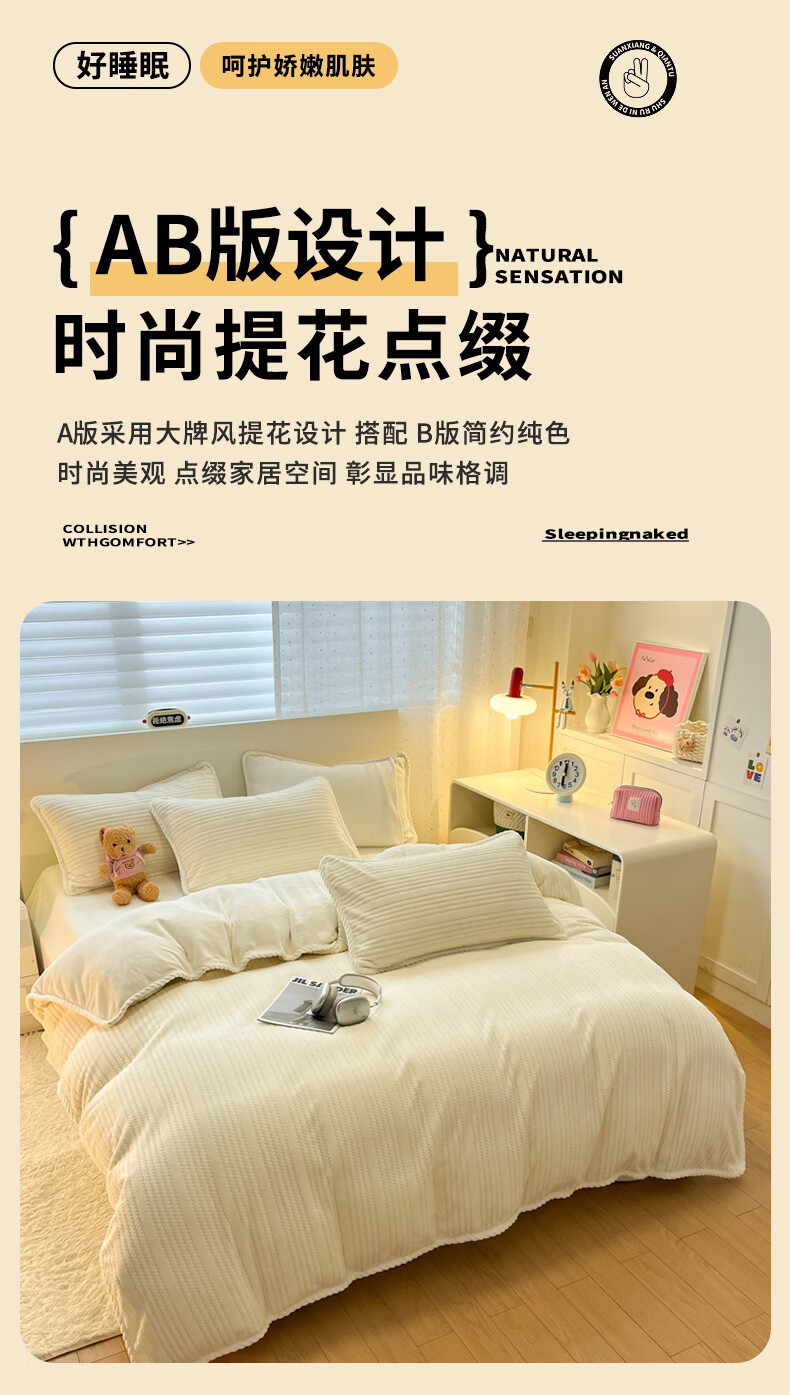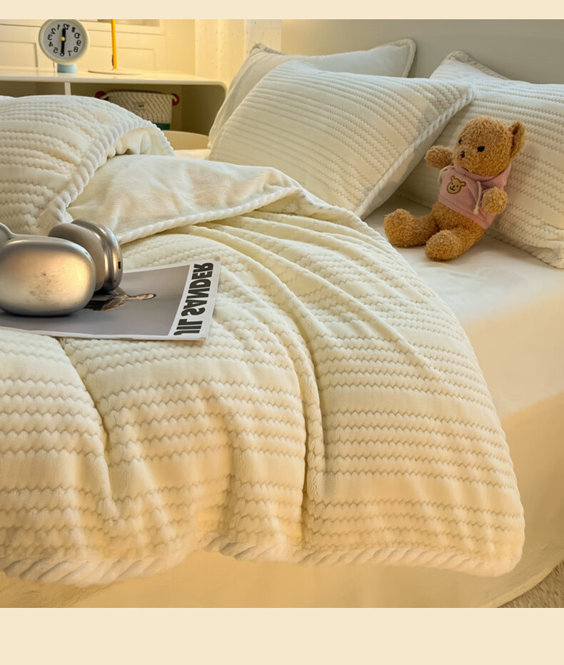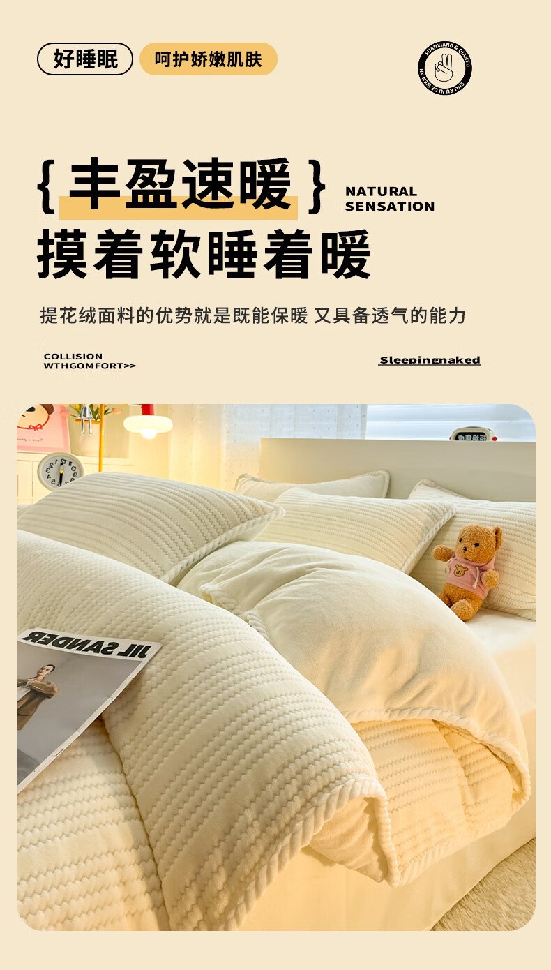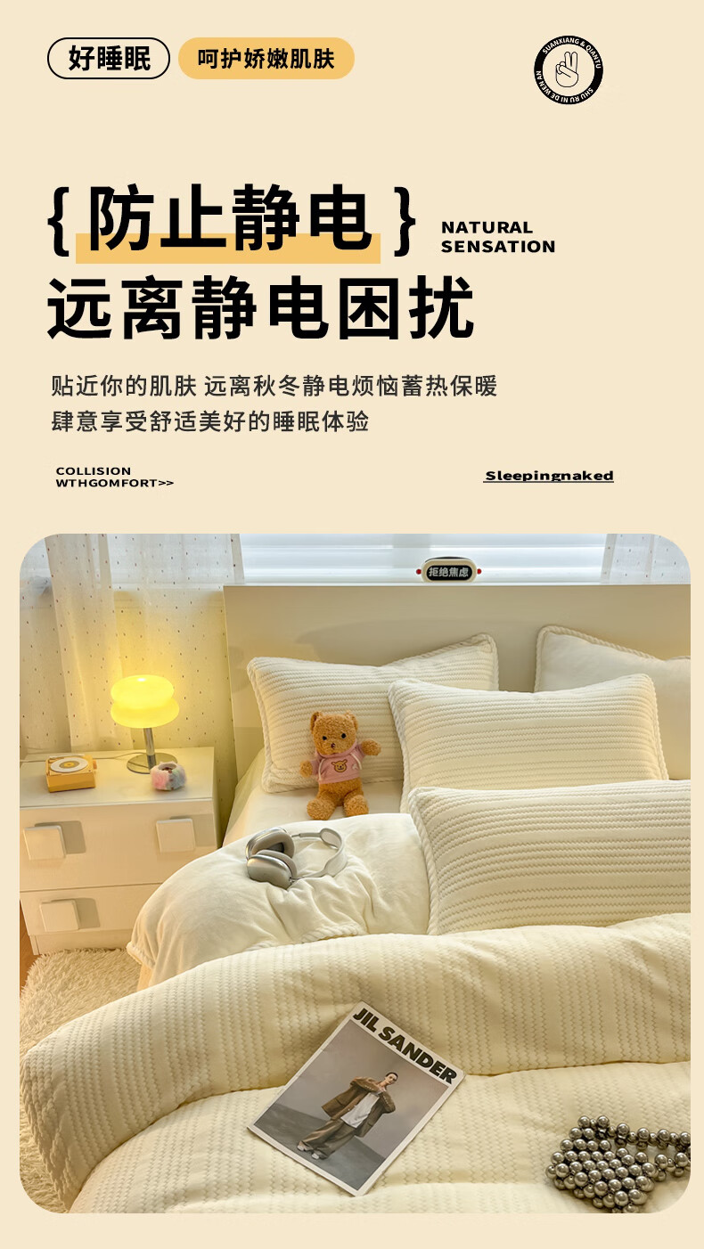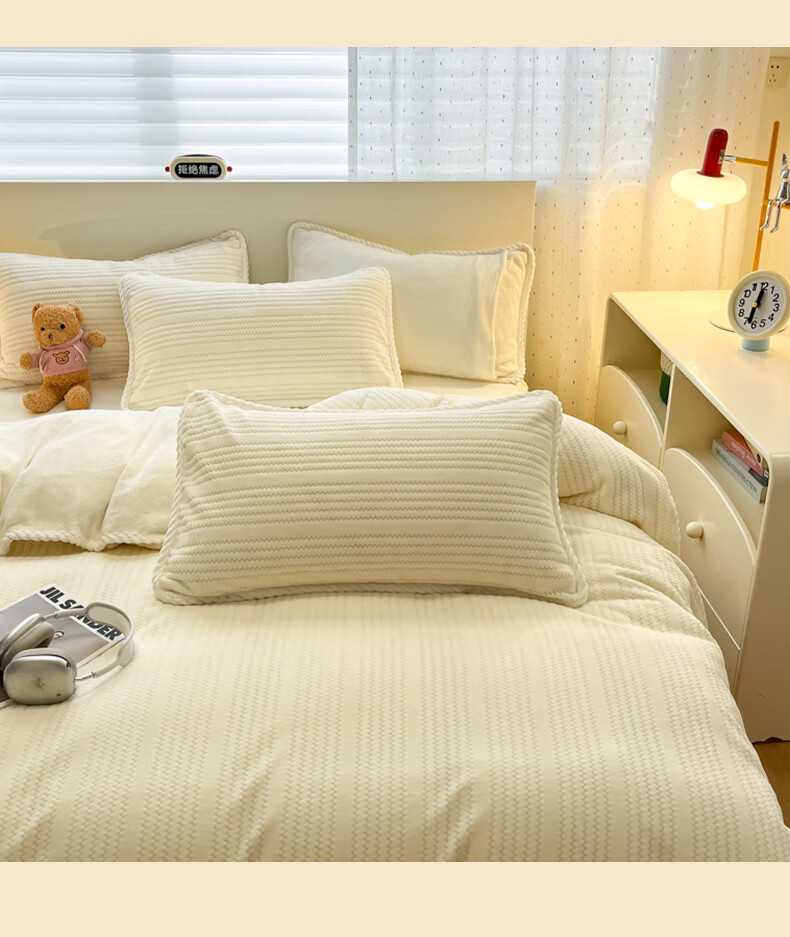 猫人(MiiOW)牛奶绒床上四件套 冬季加厚保暖提花被套床单床笠单双人床品 提花-碧落【亲肤细腻保暖舒适】 0.9/1.2 床单款 三件套(被套150*200)