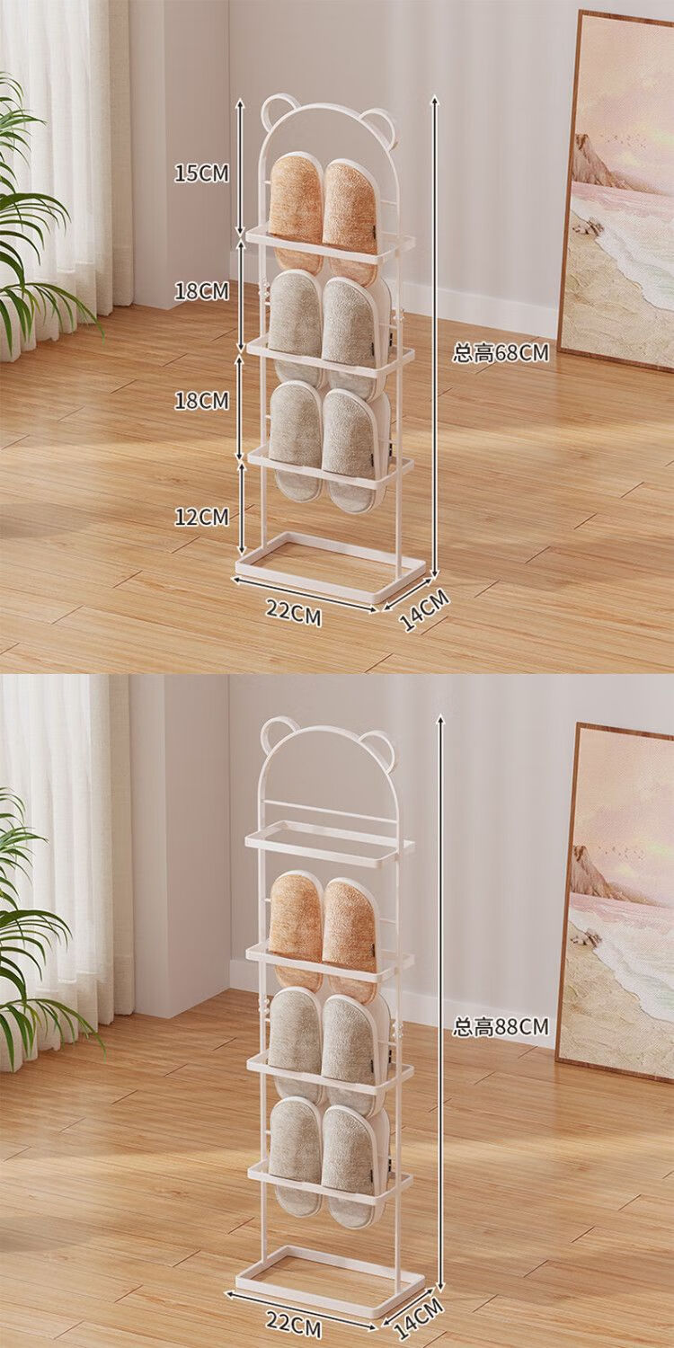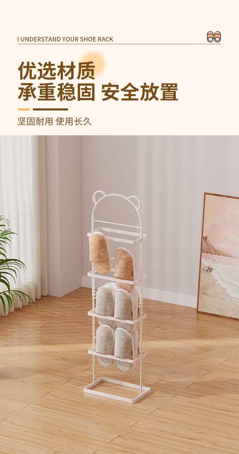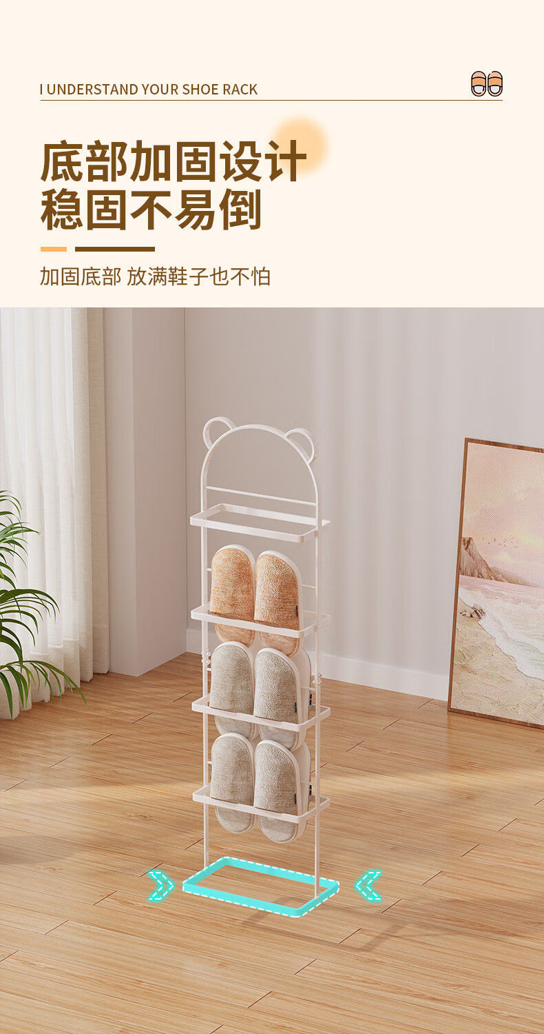 馨婺家鞋架鞋子放置架简易门口多层简约家用室内门后好看小窄立式拖鞋架 白色-三层【加固底部】