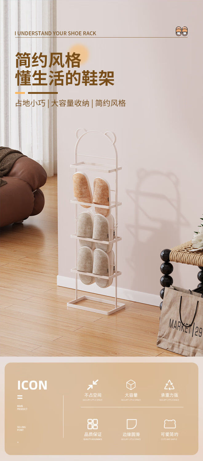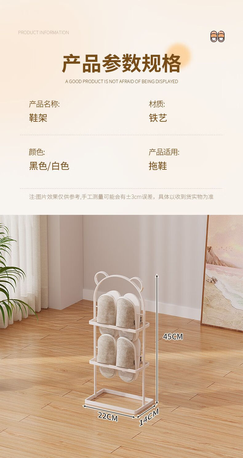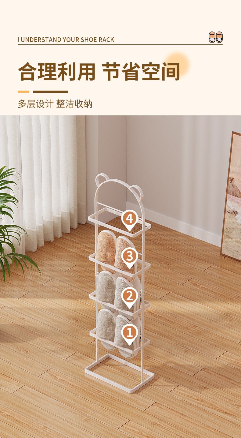 馨婺家鞋架鞋子放置架简易门口多层简约家用室内门后好看小窄立式拖鞋架 白色-三层【加固底部】