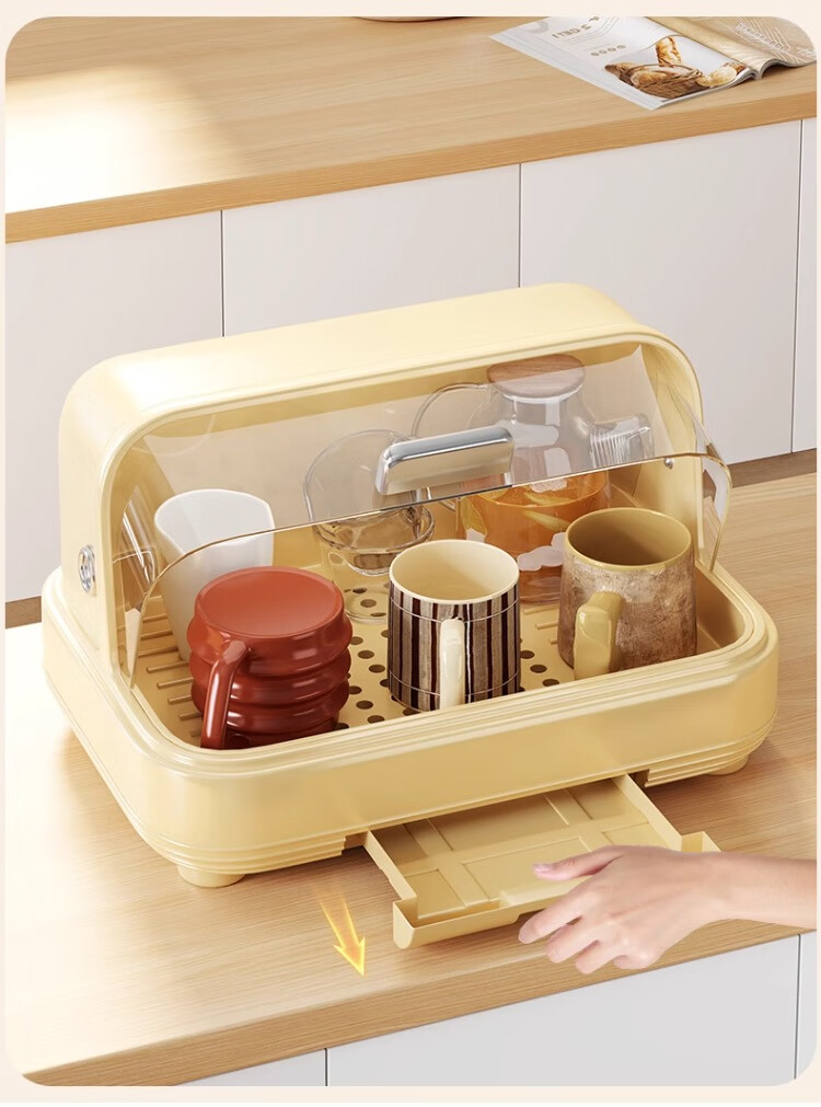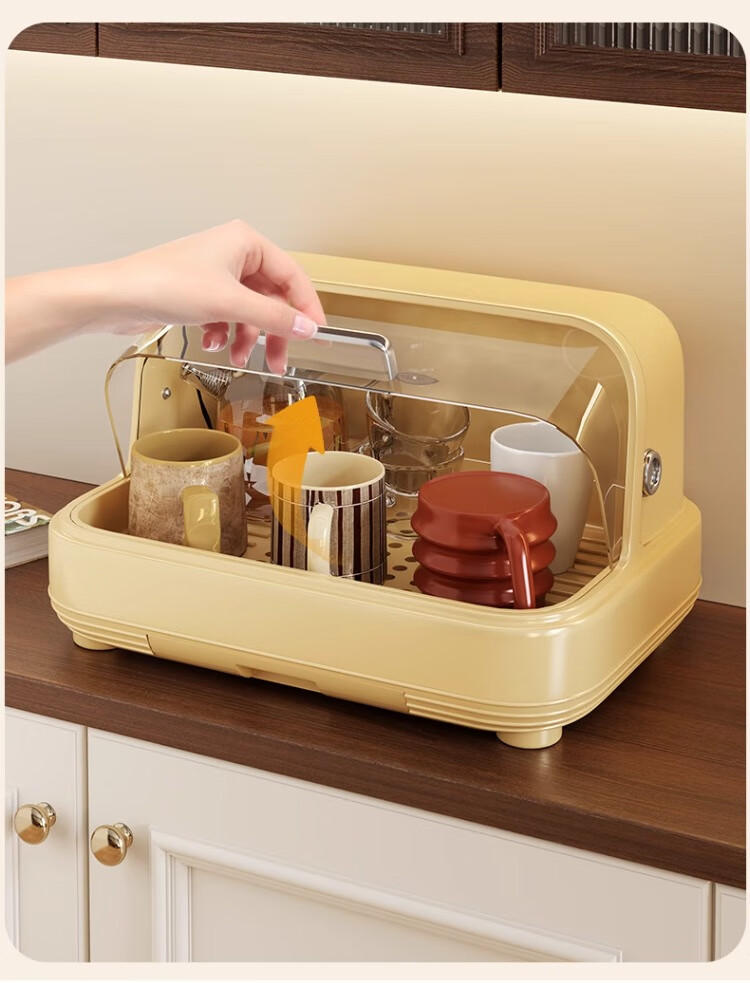 尔思家杯子收纳置物架茶杯茶具台面家用桌面水杯咖啡杯橱柜防尘沥水托盘 鸢尾黄【大号无支架】翻盖开合/抽拉接盘