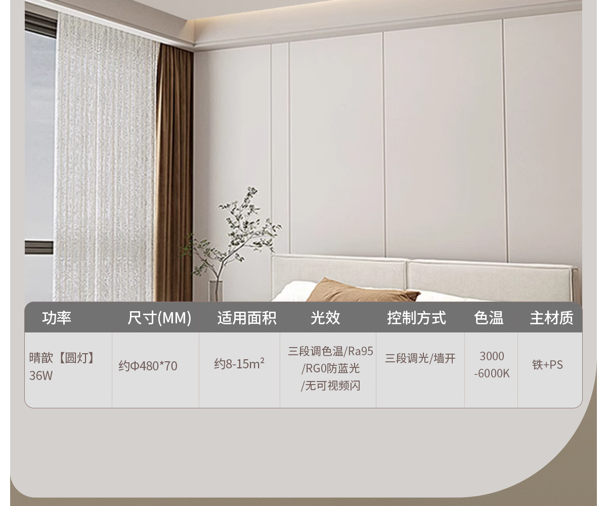 鸿雁【央企品牌】现代简约奶油风吸顶灯客厅卧室阳台灯套餐灯具 36w圆灯-三段调光款