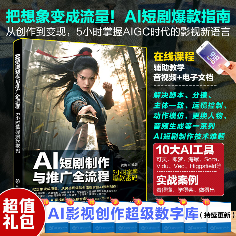 AI短剧制作与推广全流程:5小时掌握爆款密码贺楠 编著人工智能化学工业出版社新华书店正版 正版正货 新华书店