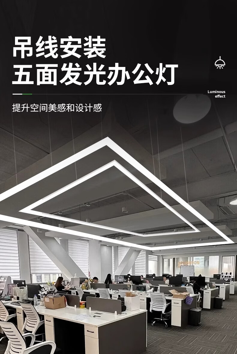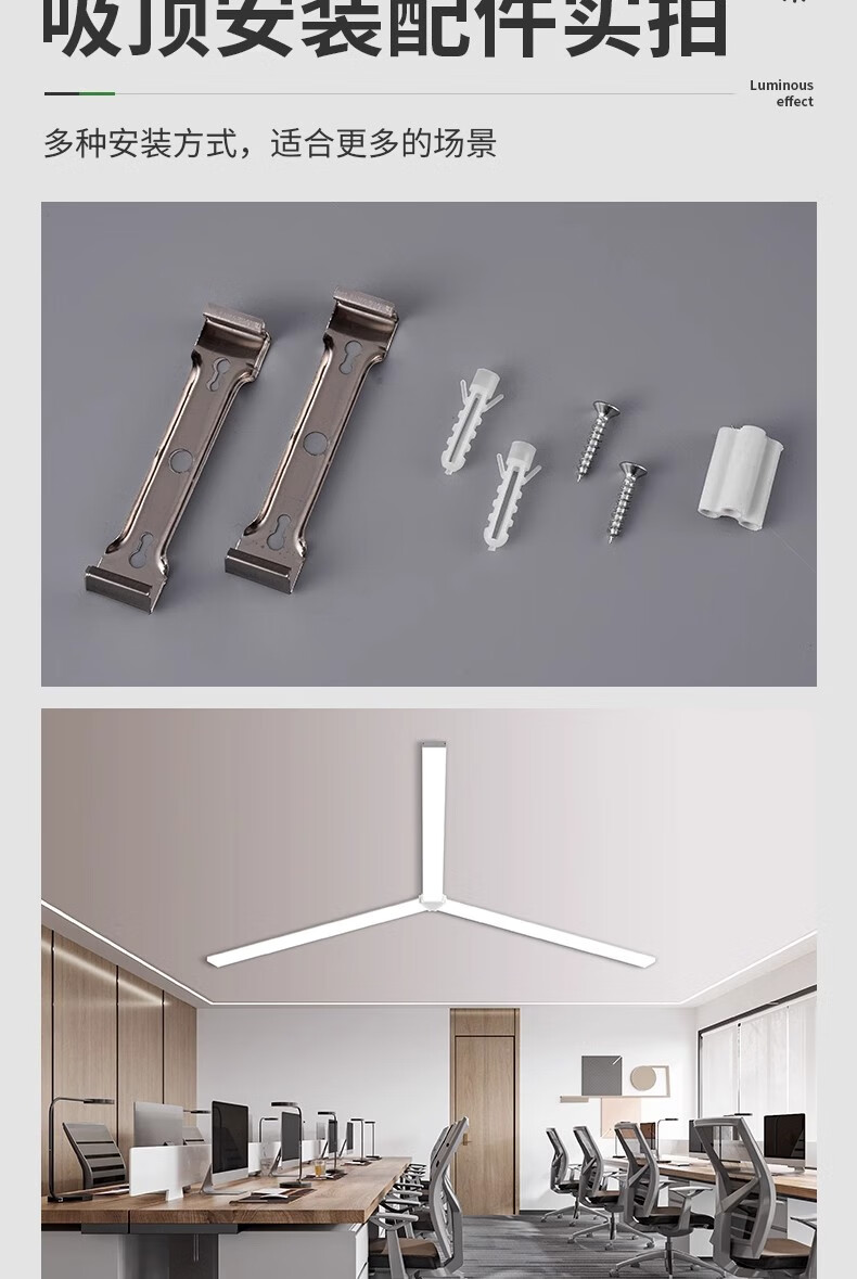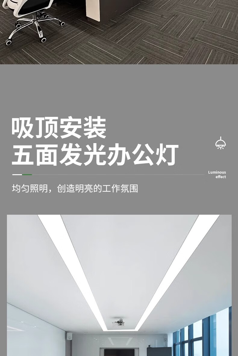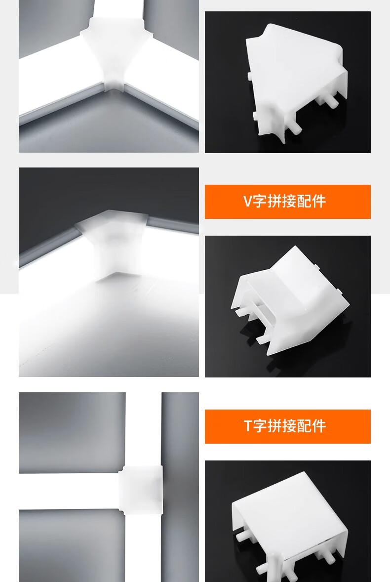 拉伯塔五面发光办公灯无缝拼接件方通吸顶组合配件长条灯办公室吊灯照明 V型拼接件【3.5公分】