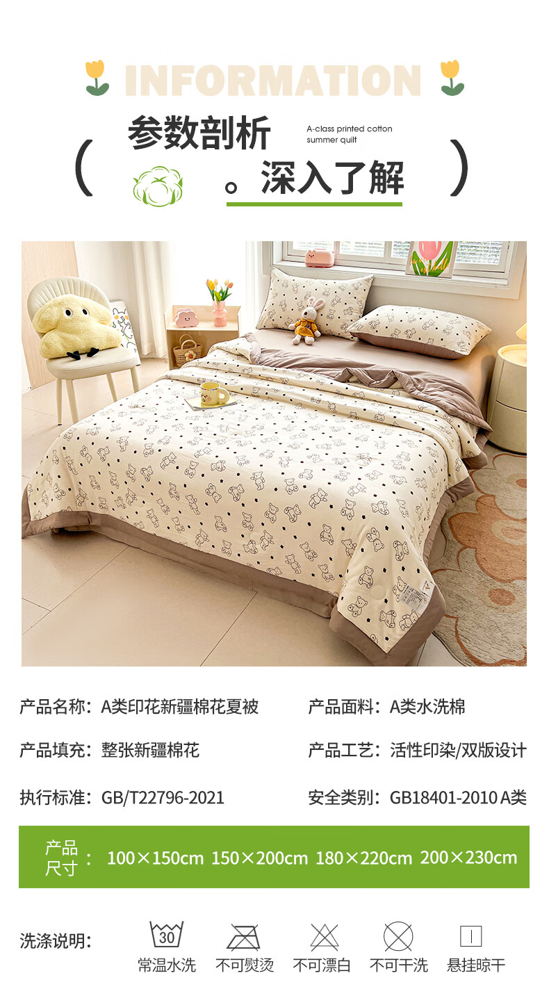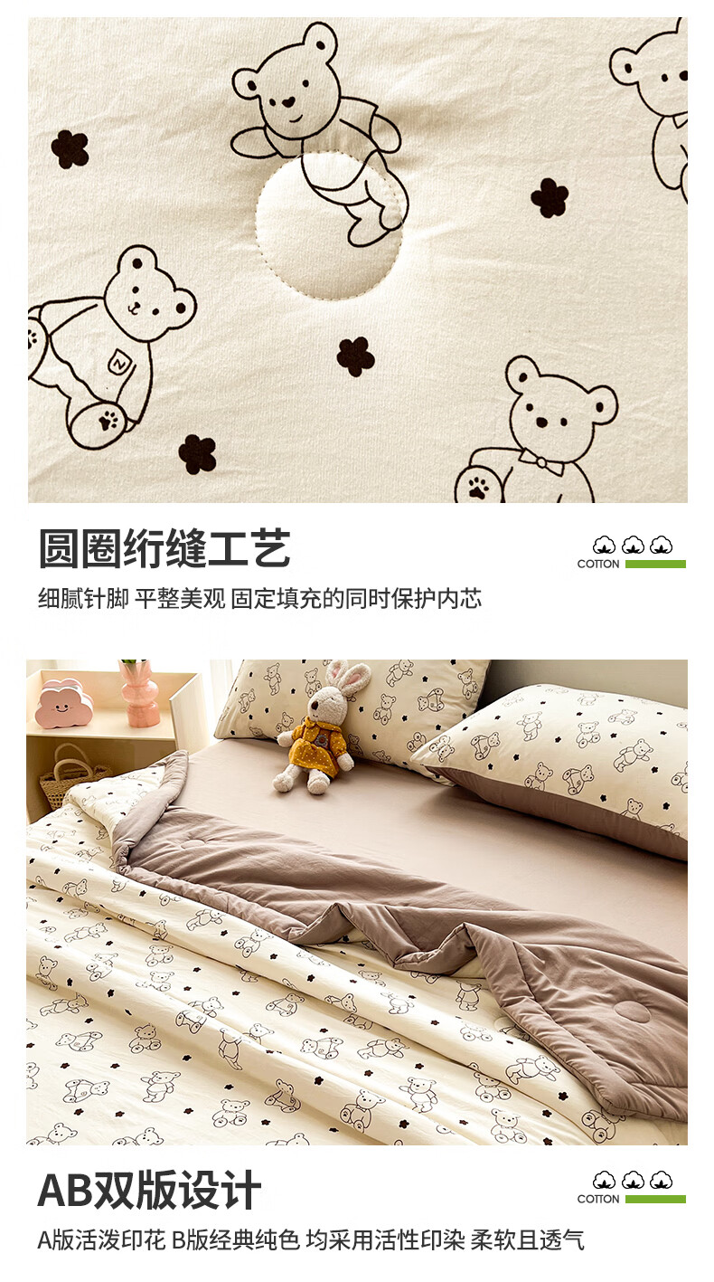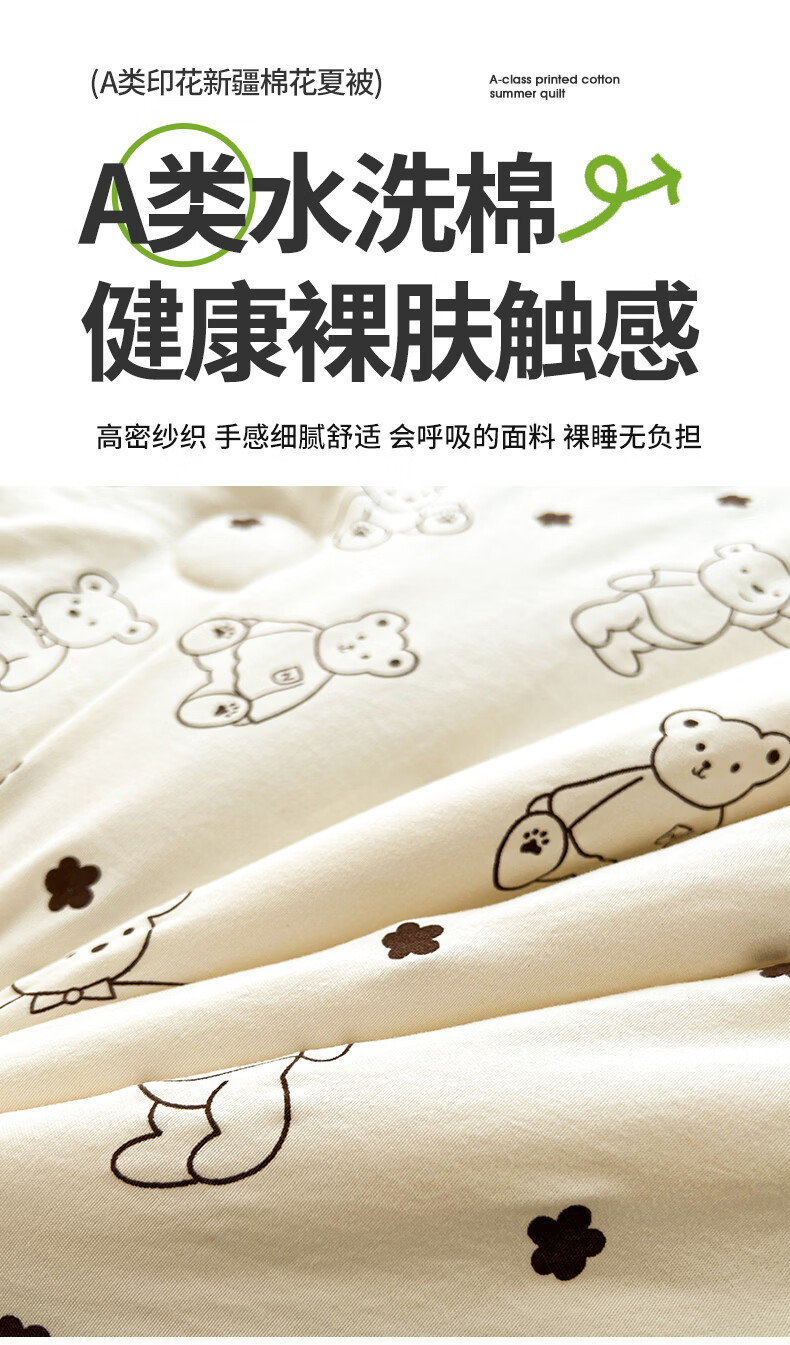 雅鹿a类新疆纯棉花被子夏凉被空调被夏季儿童宿舍单双人可机洗薄被芯 小熊院长【A类裸睡级 新疆棉花填充】 150x200cm【单人夏被】