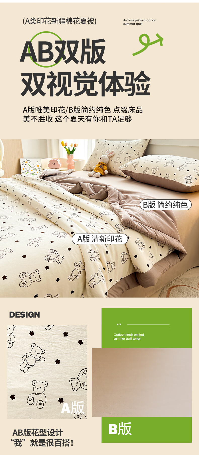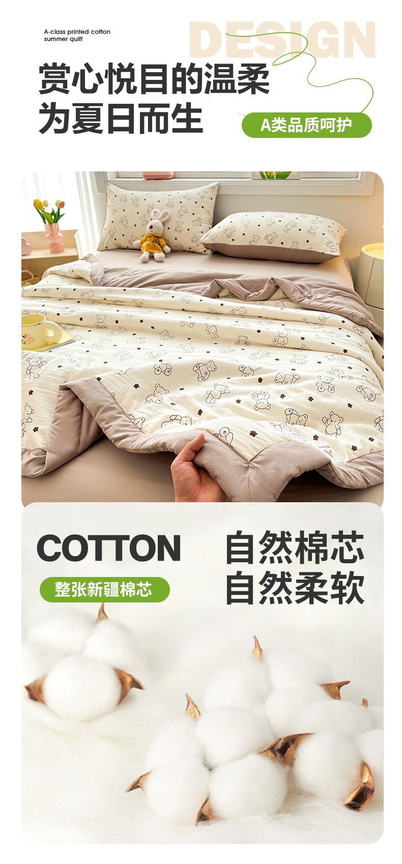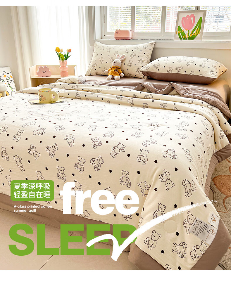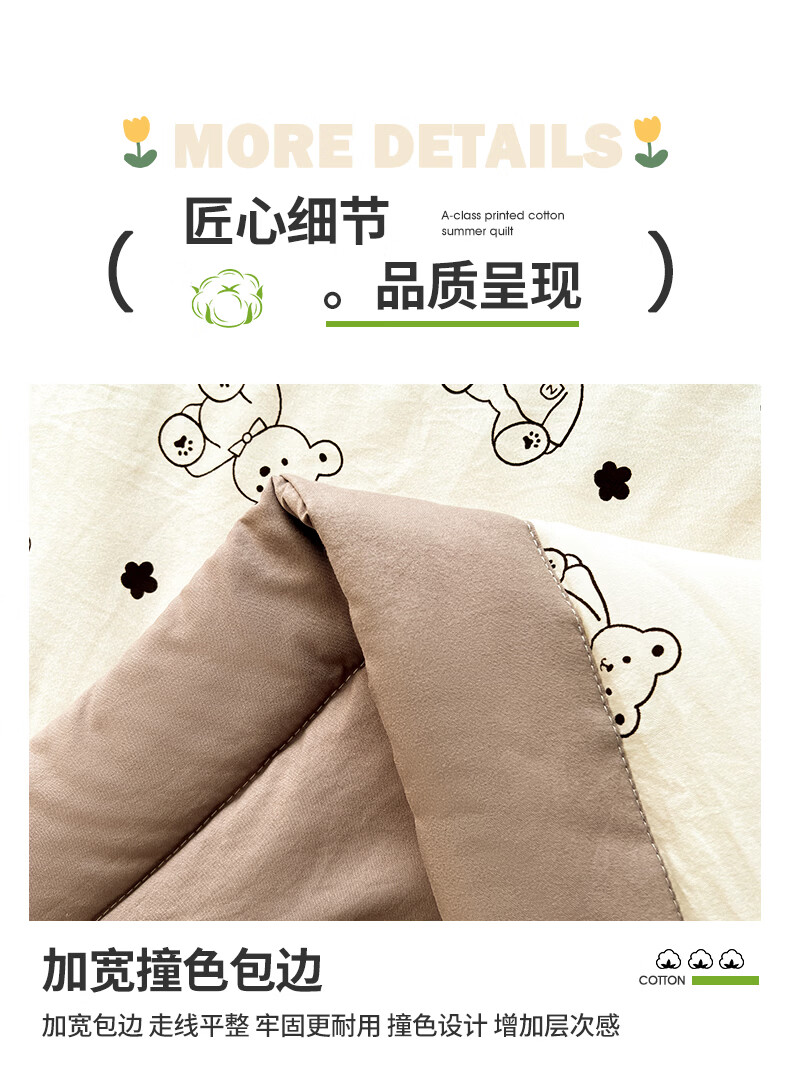 雅鹿a类新疆纯棉花被子夏凉被空调被夏季儿童宿舍单双人可机洗薄被芯 小熊院长【A类裸睡级 新疆棉花填充】 150x200cm【单人夏被】