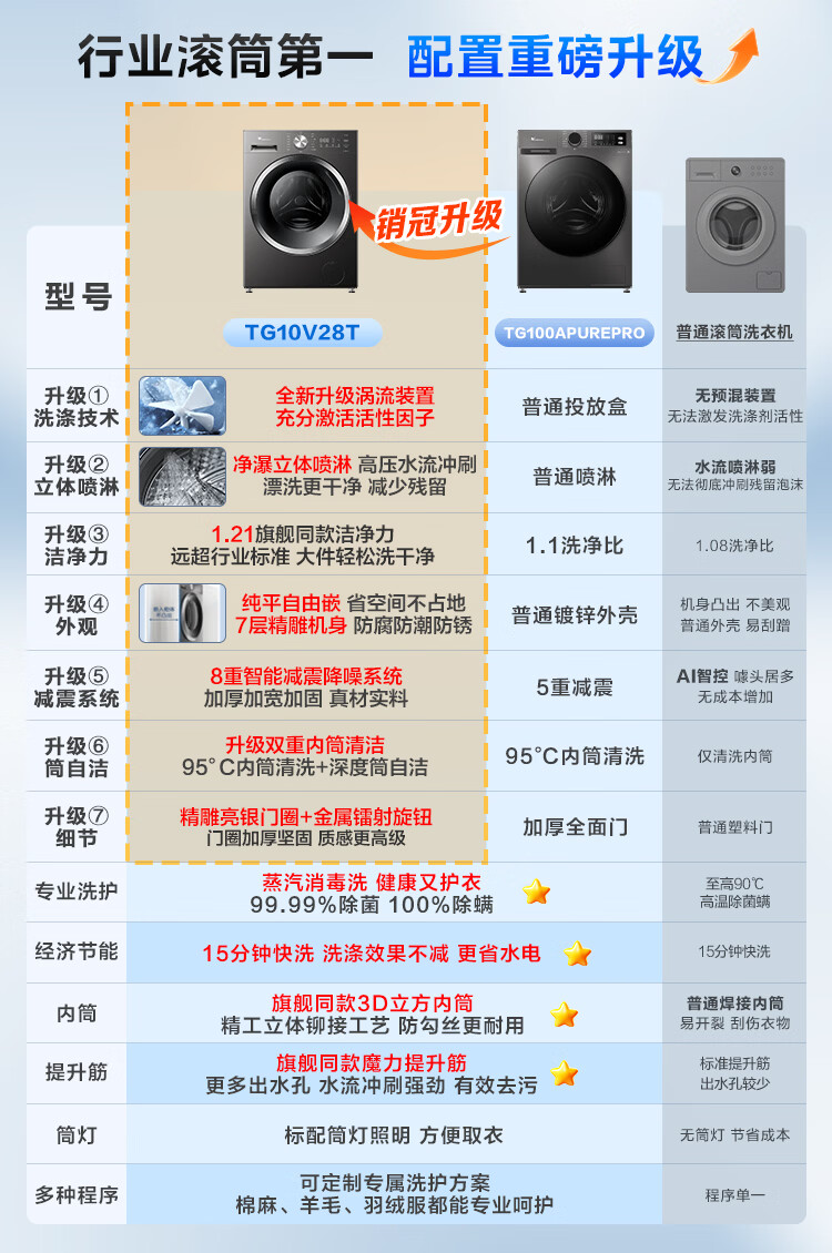 小天鹅(LittleSwan)滚筒洗衣机全自动家用 10KG 纯平自由嵌 TG10V28T 以旧换新 国家补贴 出租屋 内衣洗 一级能效