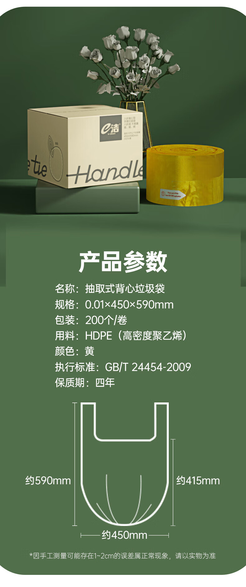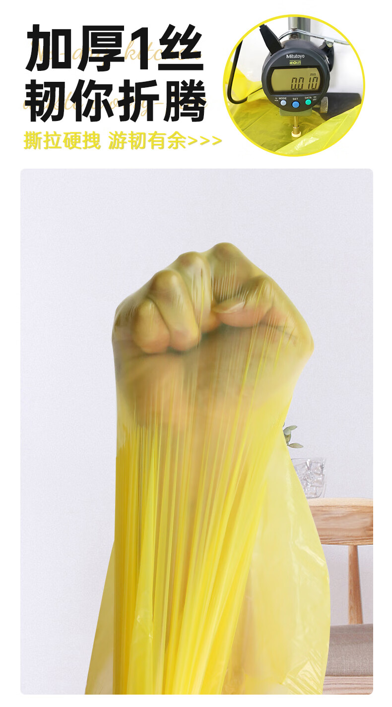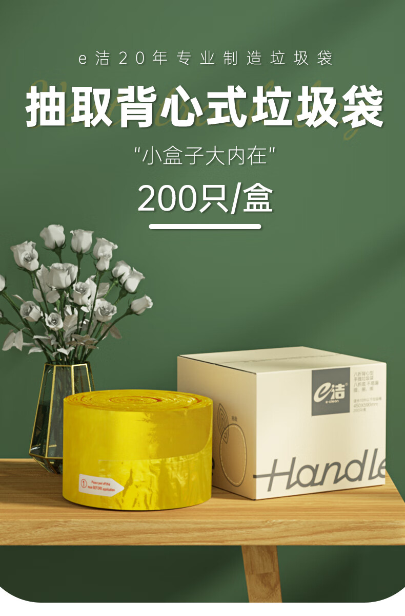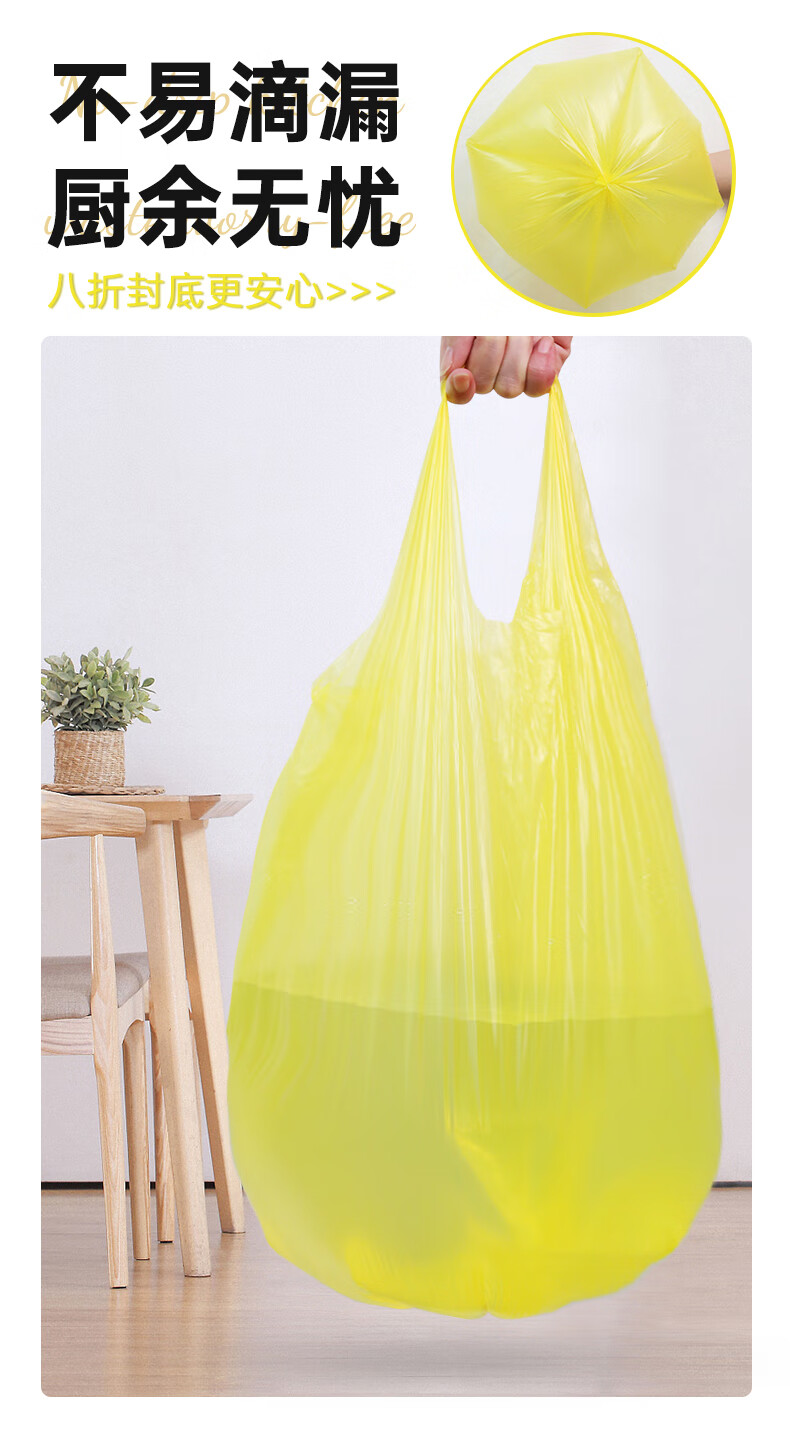 e洁背心垃圾袋黄色45*59cm200只1丝点断手提绑提袋塑料袋厨房家用