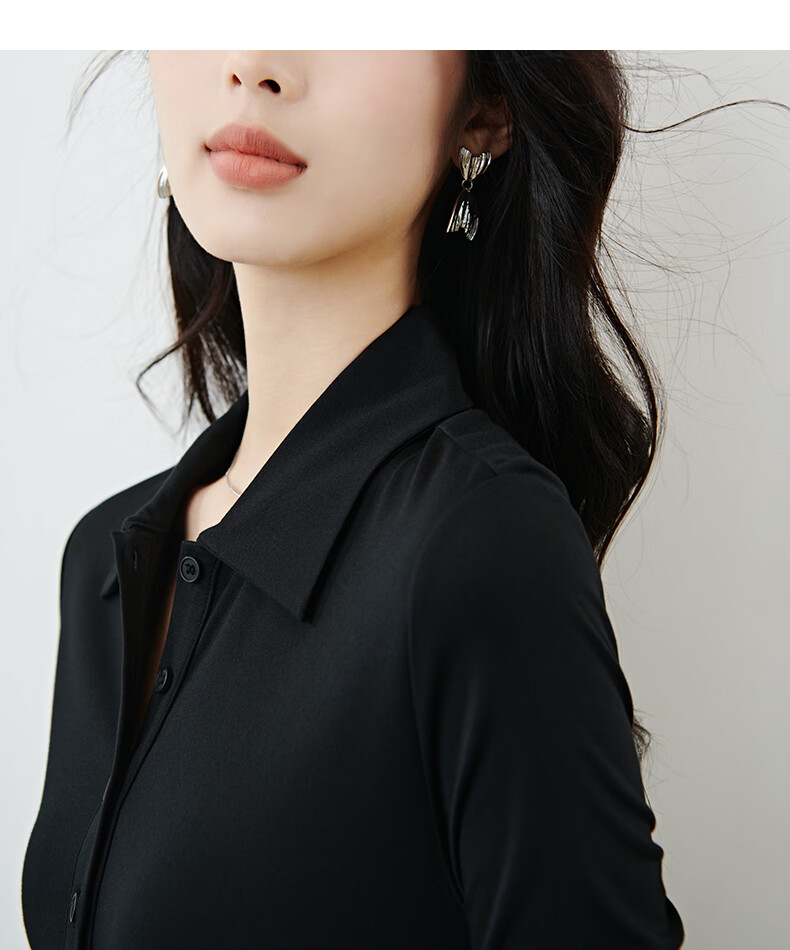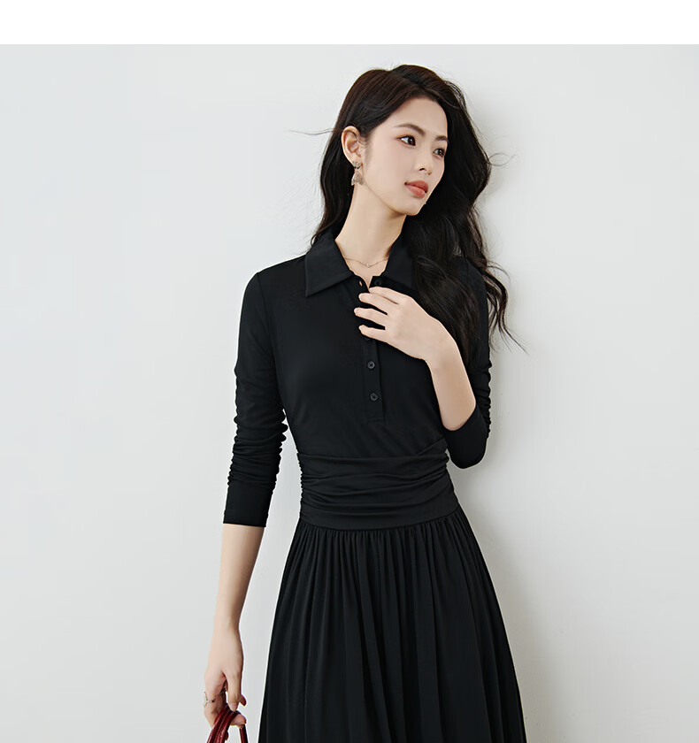 晚白2026春气质流行穿搭法式翻领小黑裙褶皱收腰显瘦垂感超大摆连衣裙 黑色 XL