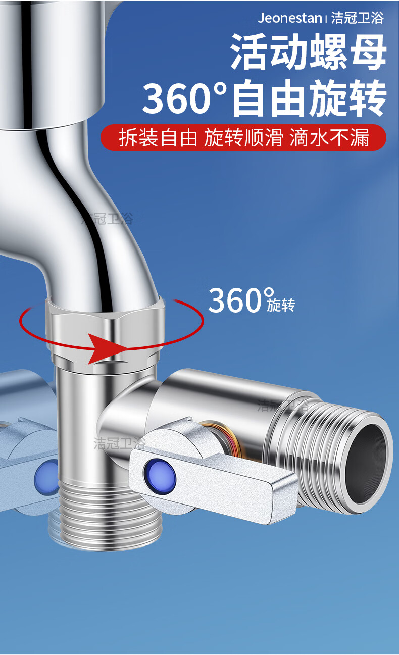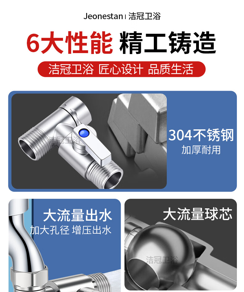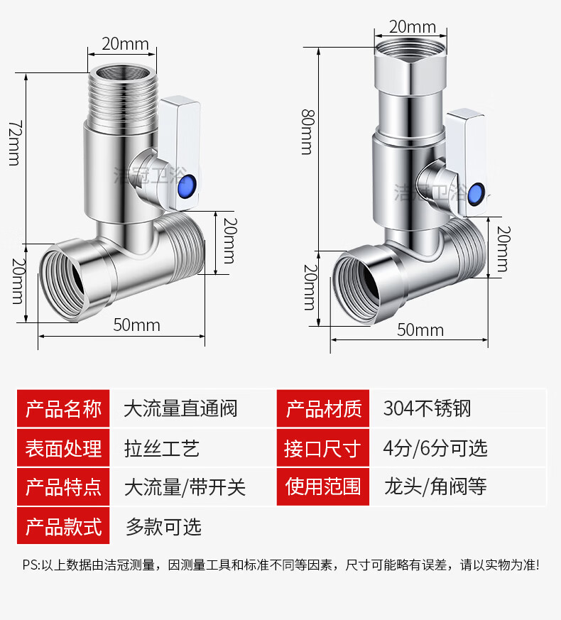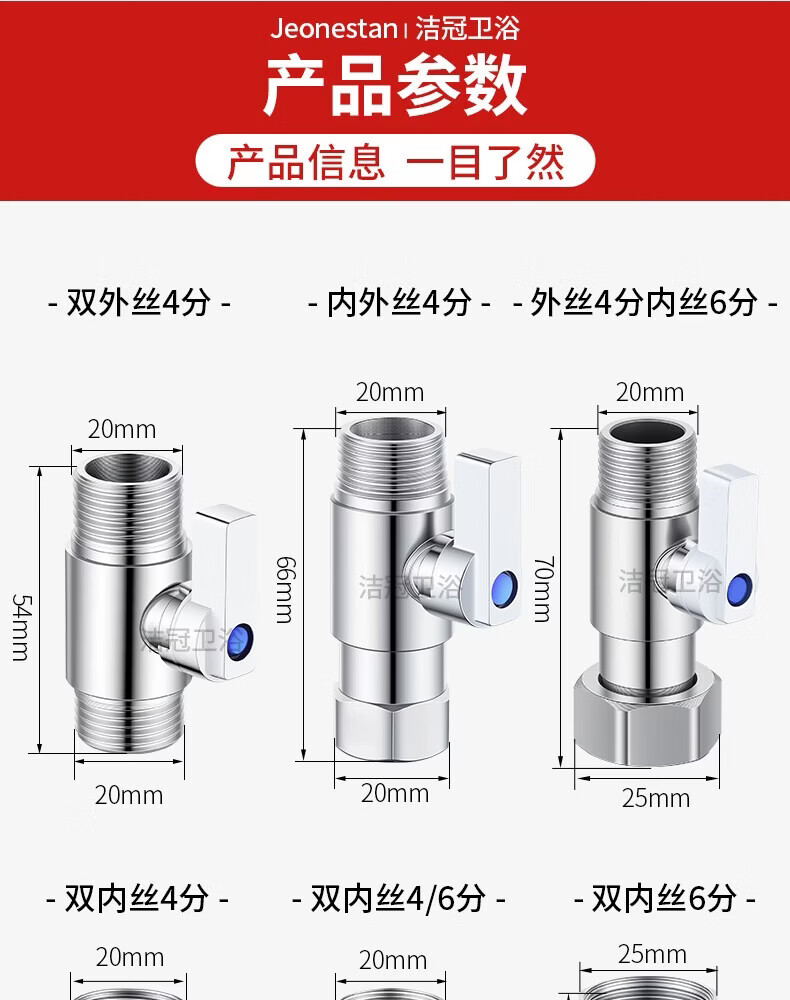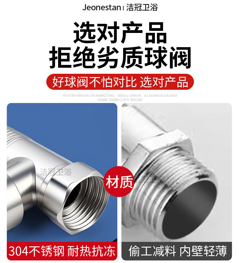 Jeonestan304不锈钢直通阀4分球阀大流量球芯角阀三通活接6分内外丝带开关 【4分双外丝】球芯直通阀