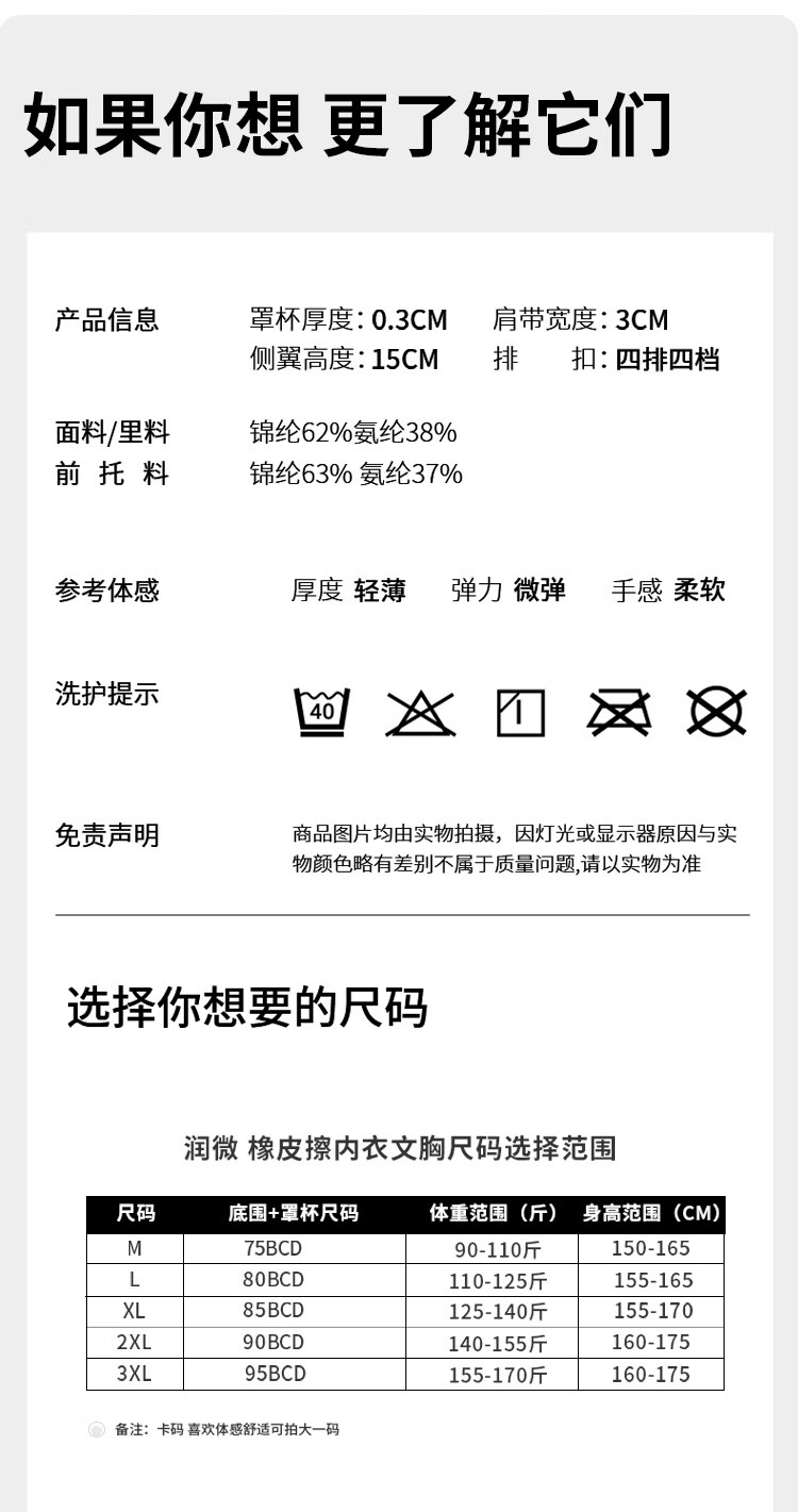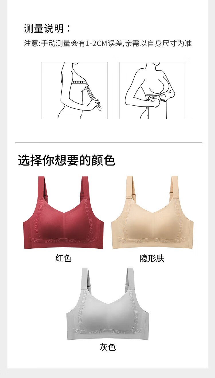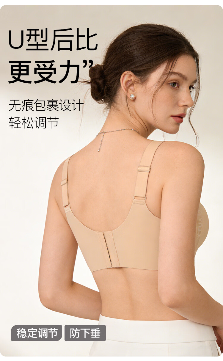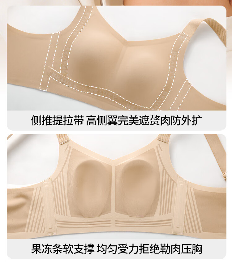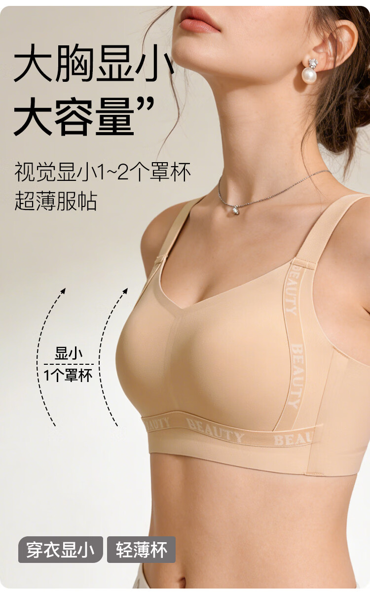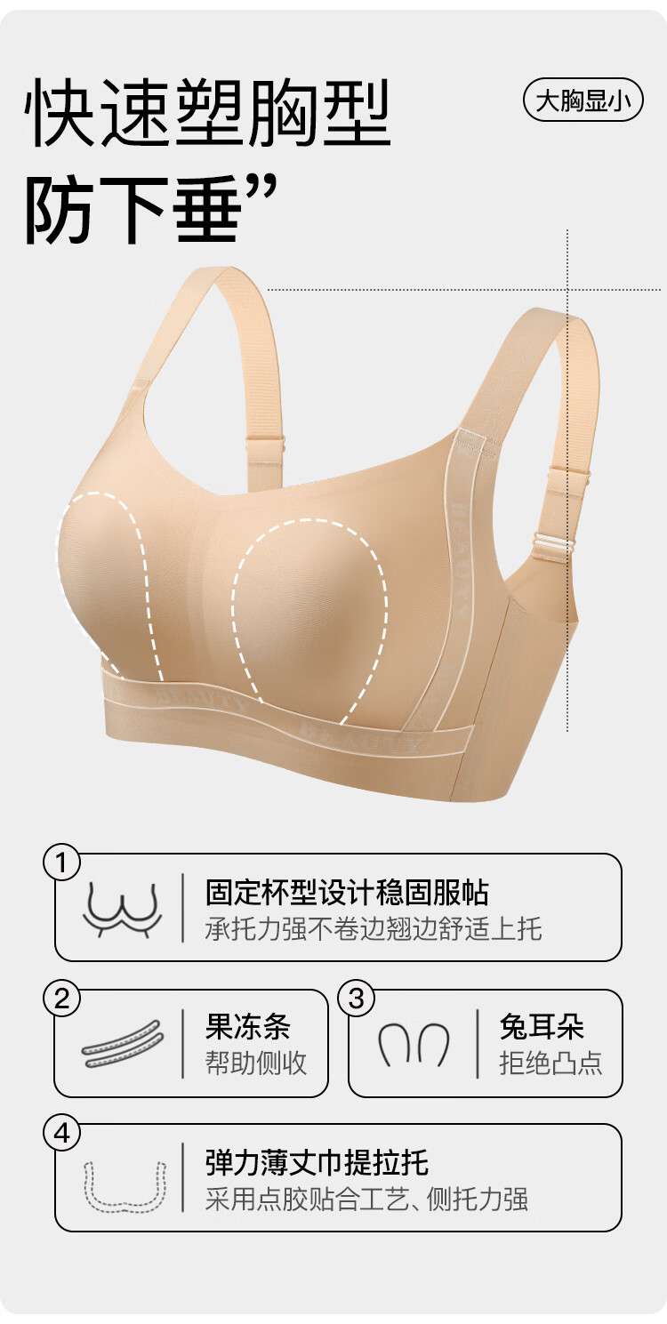 润微大胸显小内衣女大码防下垂舒适承托粉底液隐形无痕文胸罩 隐形肤 M (适合75BCD杯)