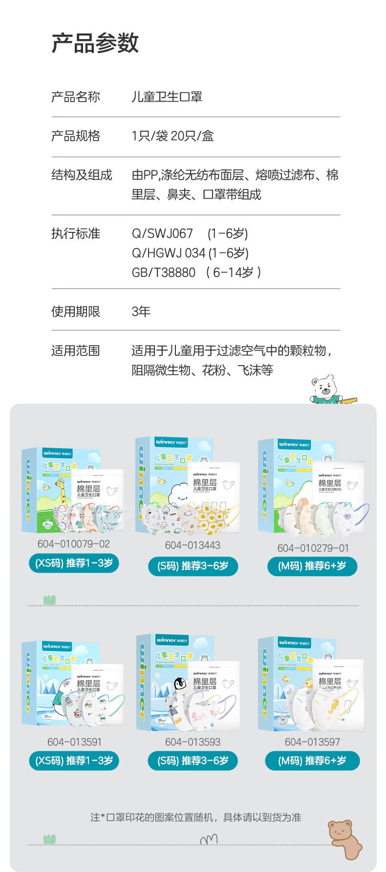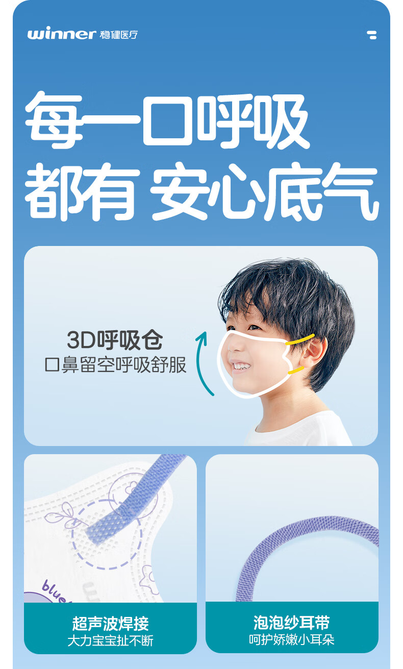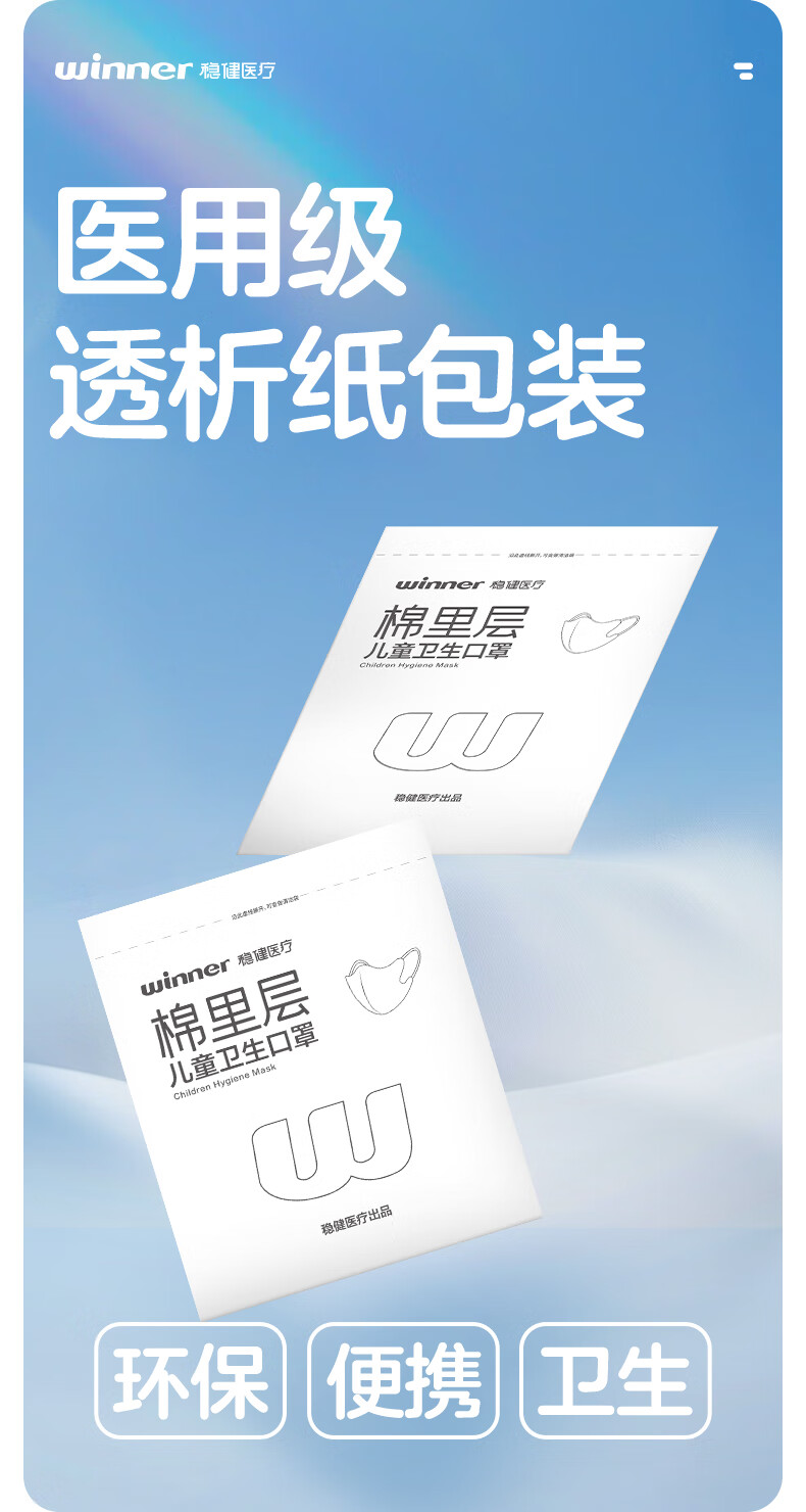 稳健棉里层儿童口罩3-6岁独立装一只一袋20只亲肤透气防尘秋冬季保暖