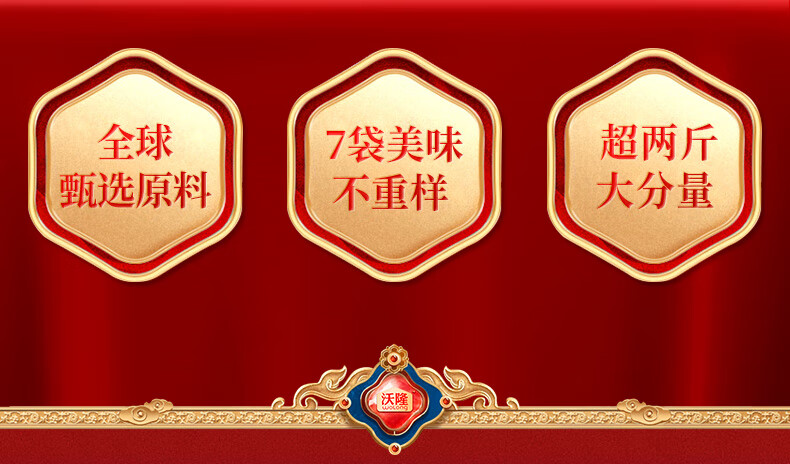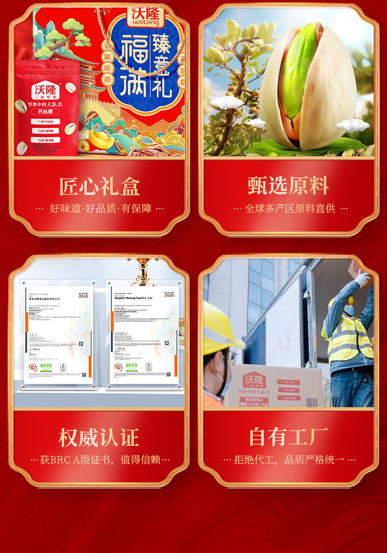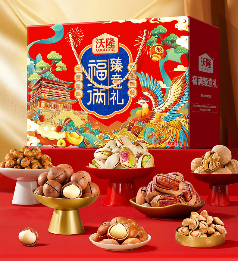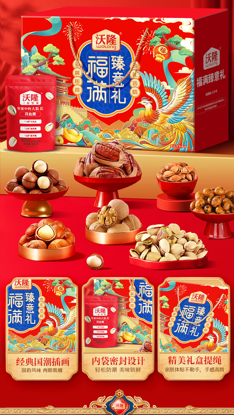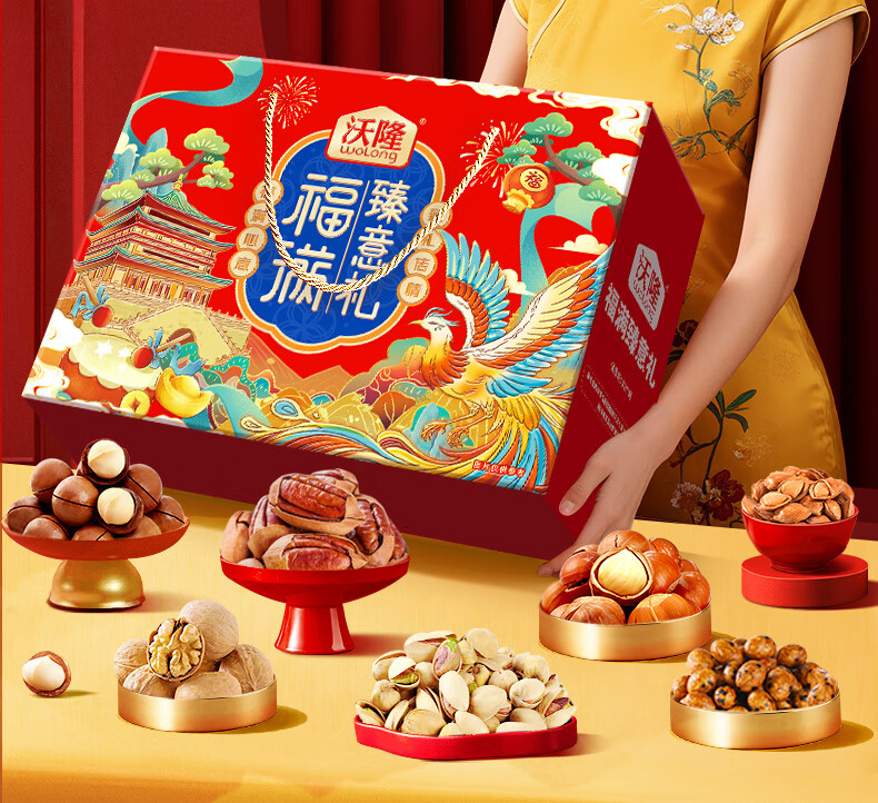 沃隆坚果礼盒开心果碧根果团购送礼坚果炒货休闲食品零食年货大礼包 【7袋纯坚果】1140g福满臻意礼