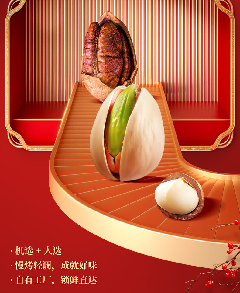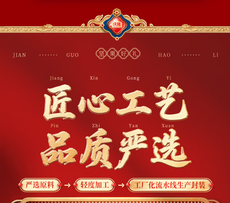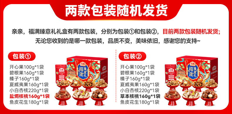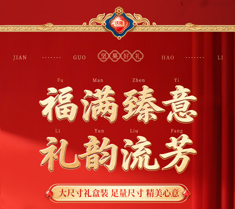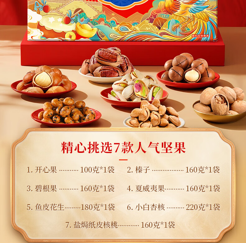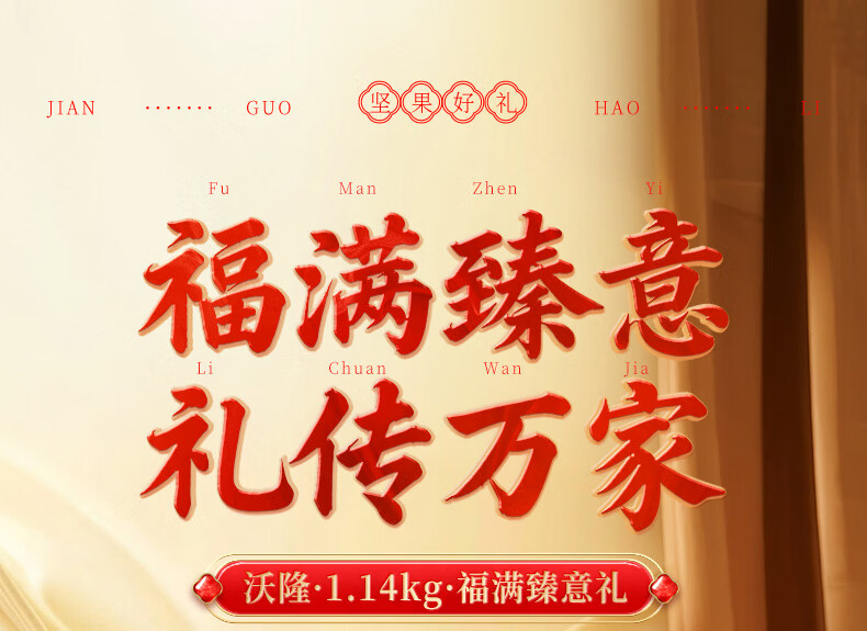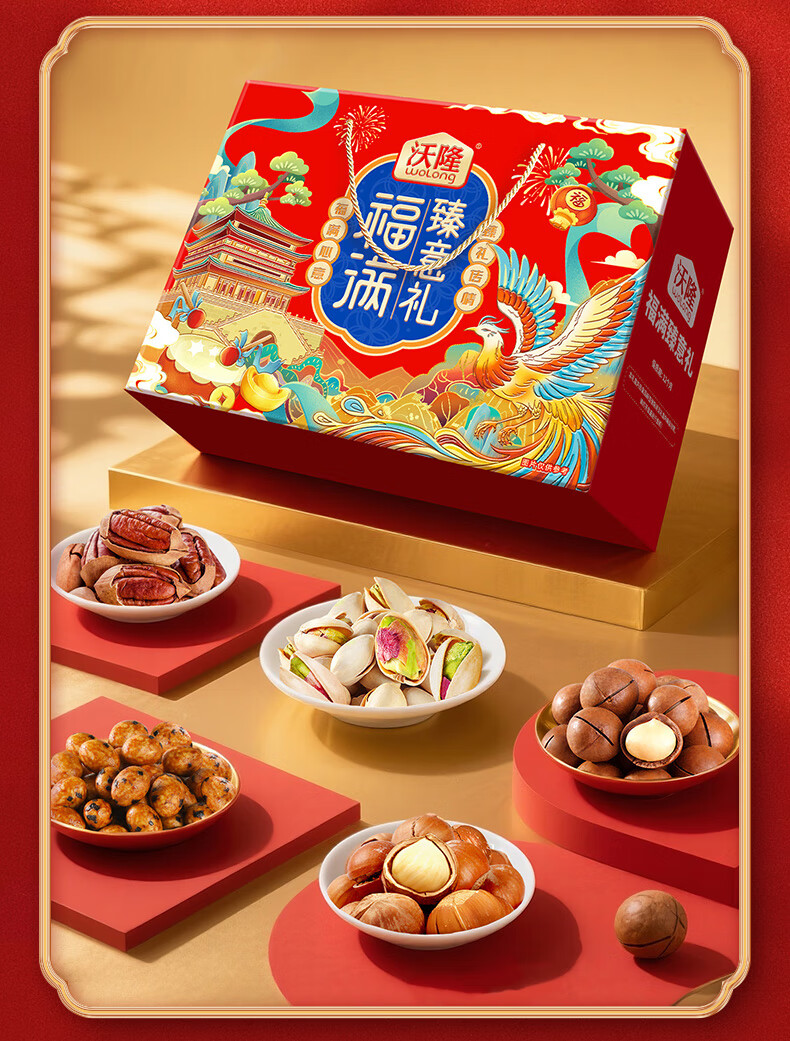 沃隆坚果礼盒开心果碧根果团购送礼坚果炒货休闲食品零食年货大礼包 【7袋纯坚果】1140g福满臻意礼