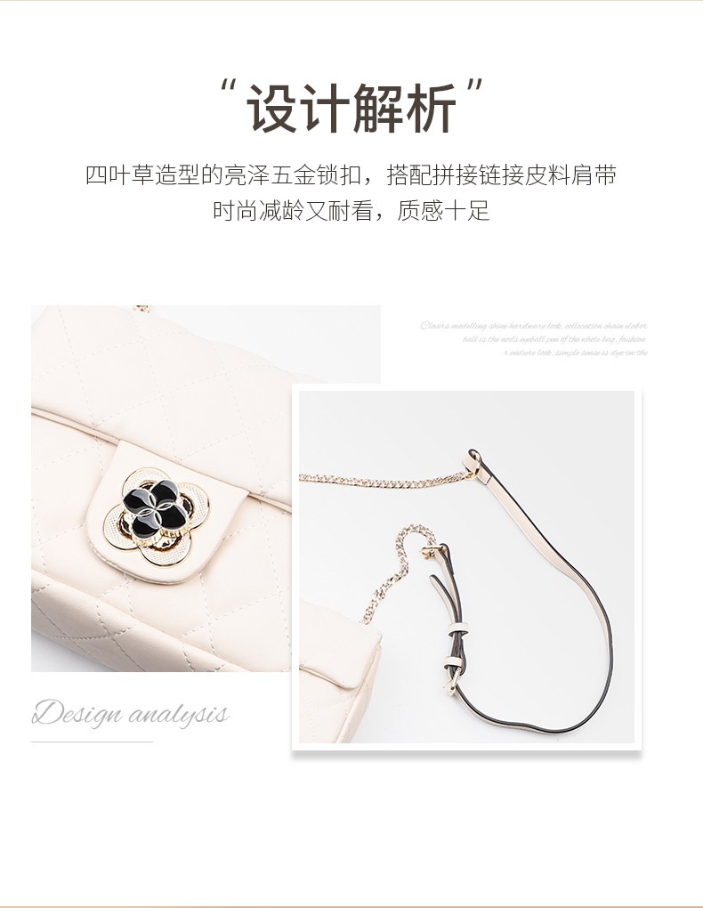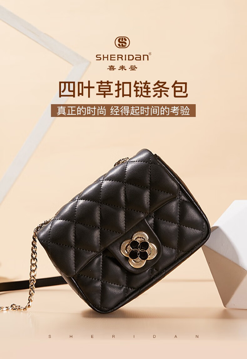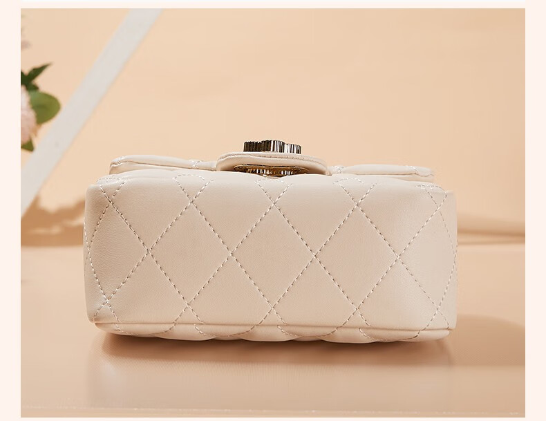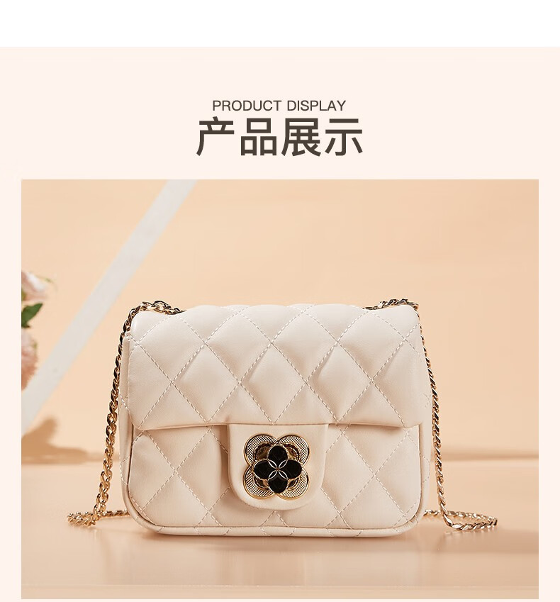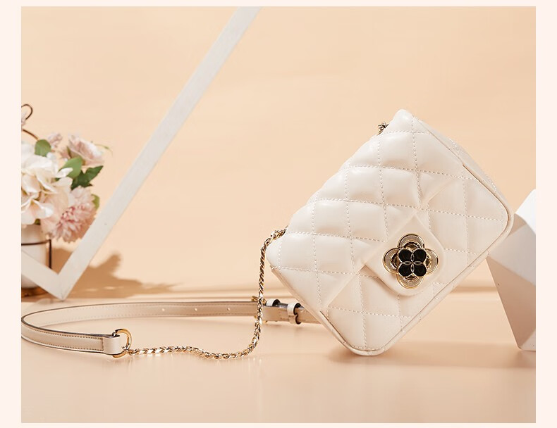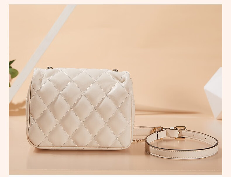 Sheridan喜来登 新款 牛皮小香风菱格链条包 时尚百搭单肩斜挎小包 米白色