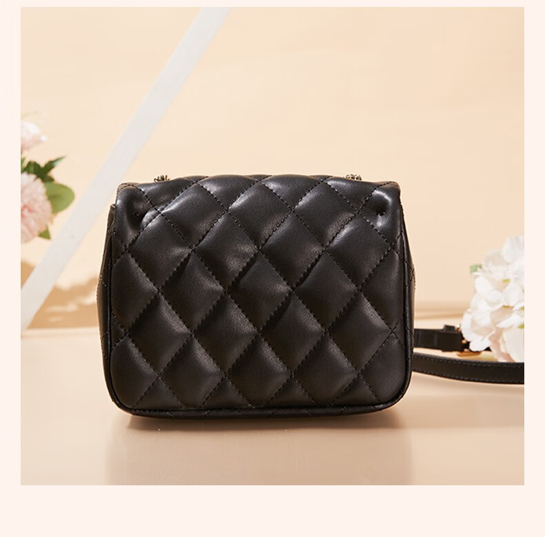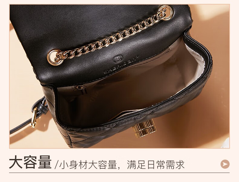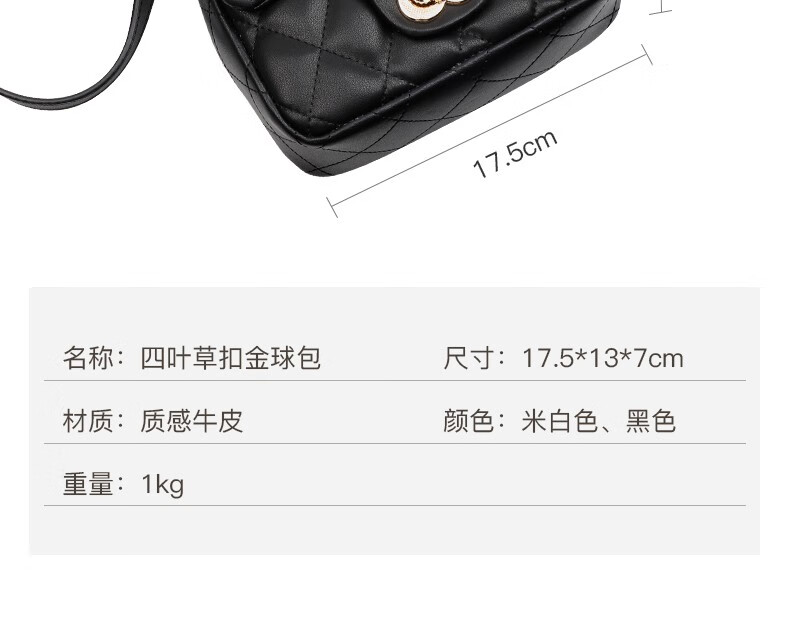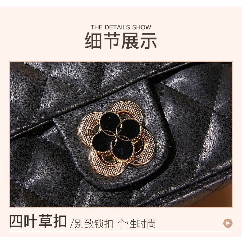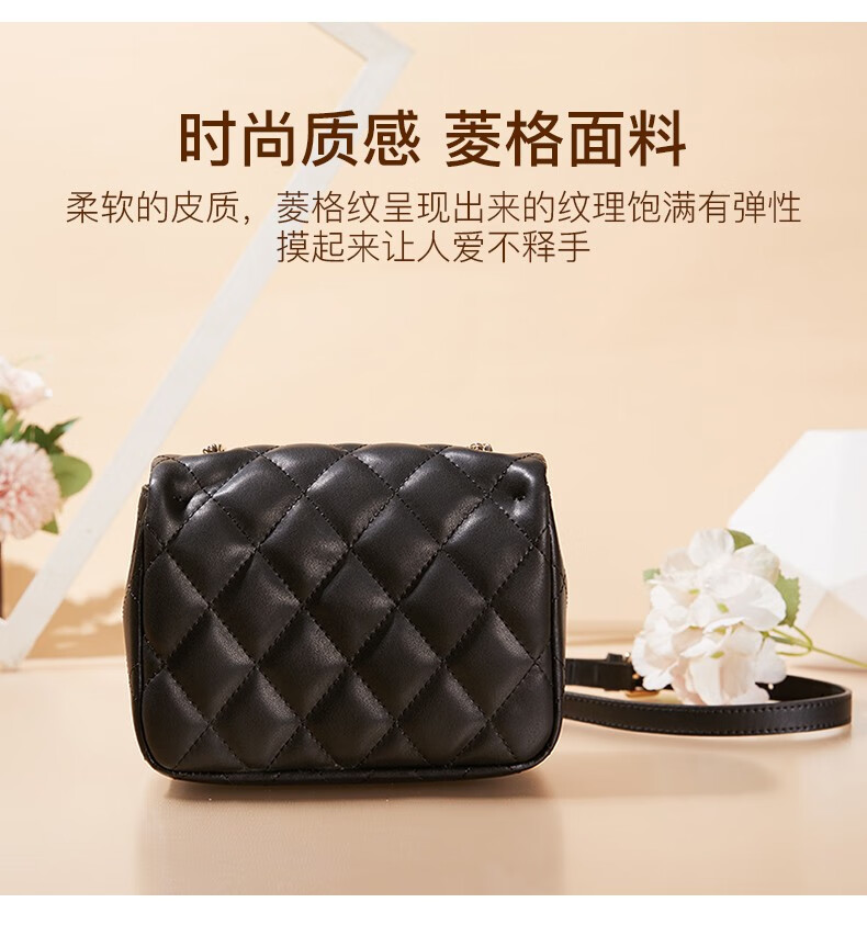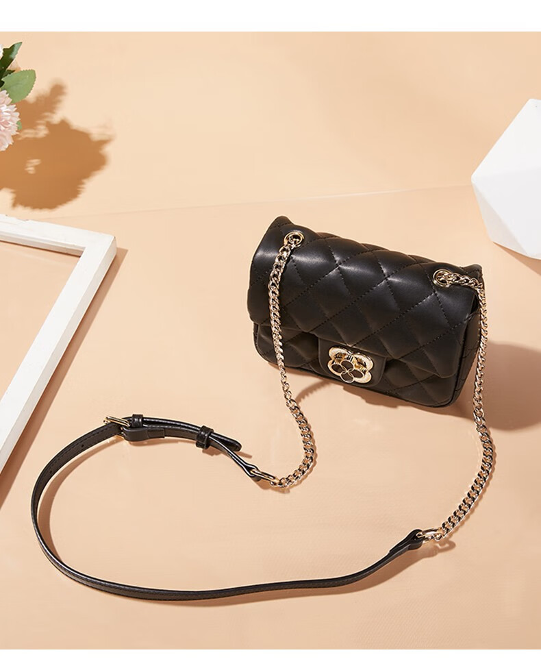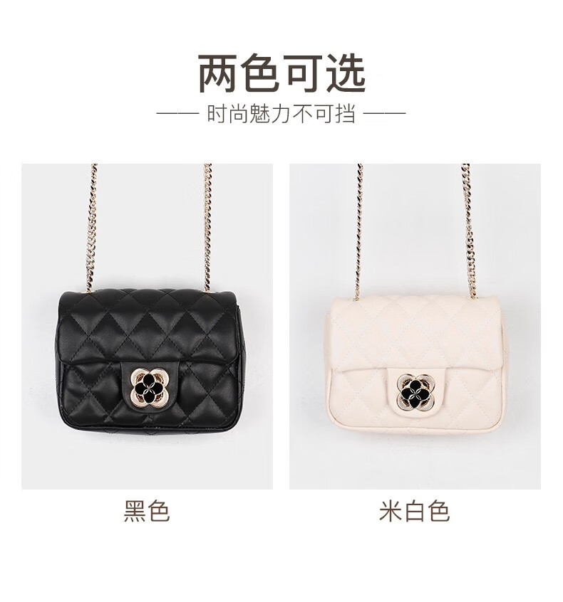 Sheridan喜来登 新款 牛皮小香风菱格链条包 时尚百搭单肩斜挎小包 米白色