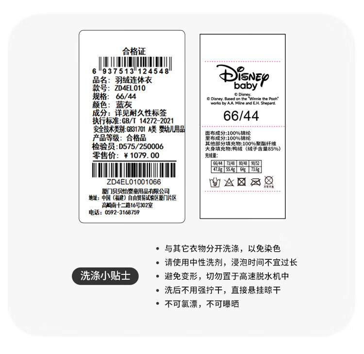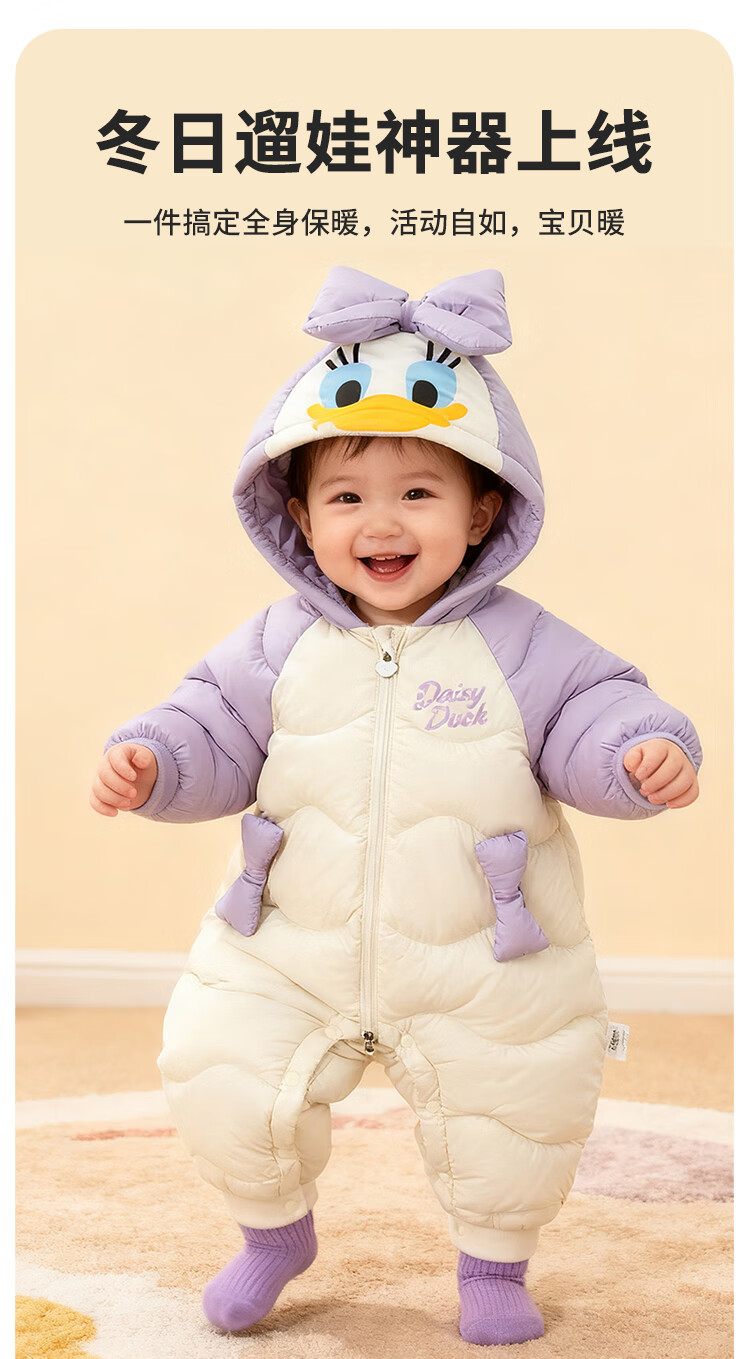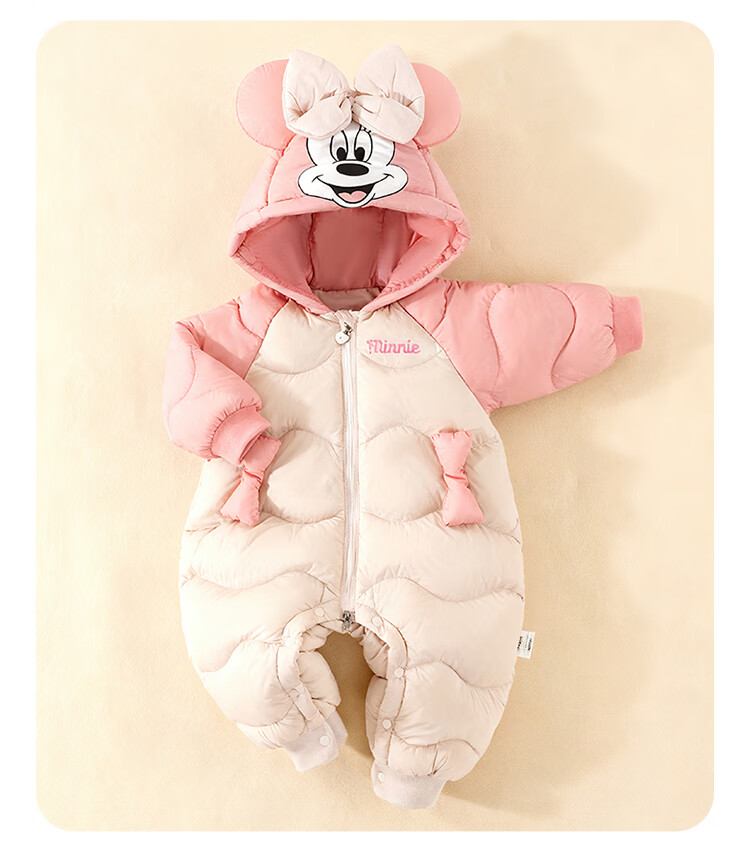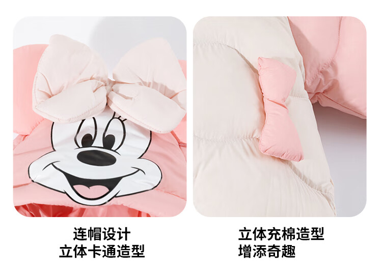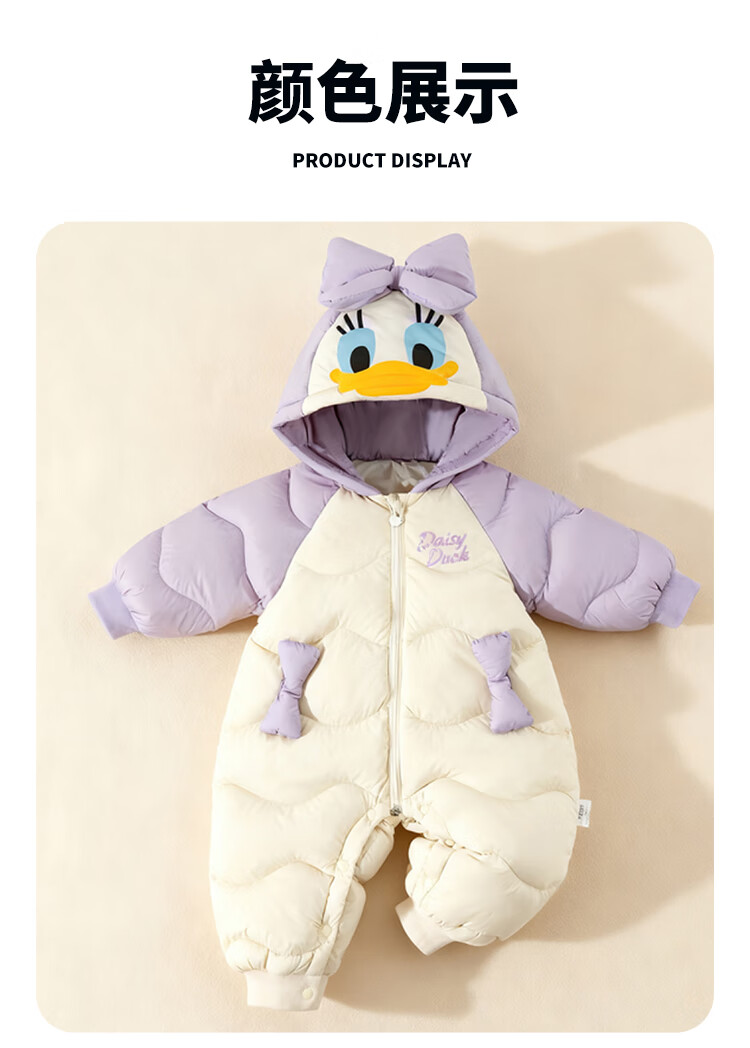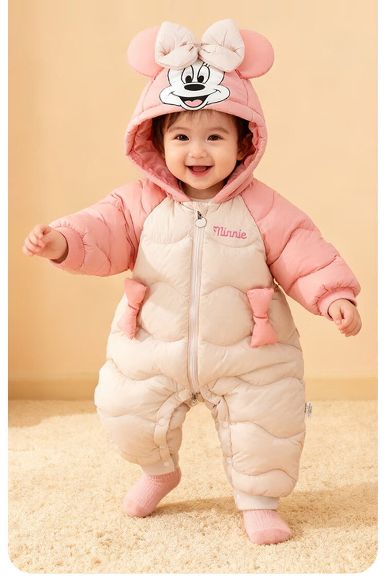 迪士尼(Disney)婴儿宝宝拼色可爱保暖90白鸭绒羽绒服连帽设计立体卡通连 蓝灰色 80 (建议9-15个月身高73-80cm)
