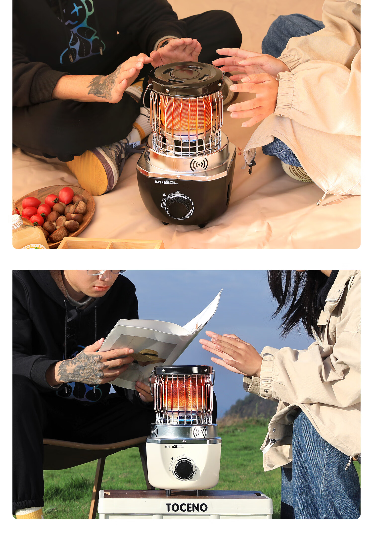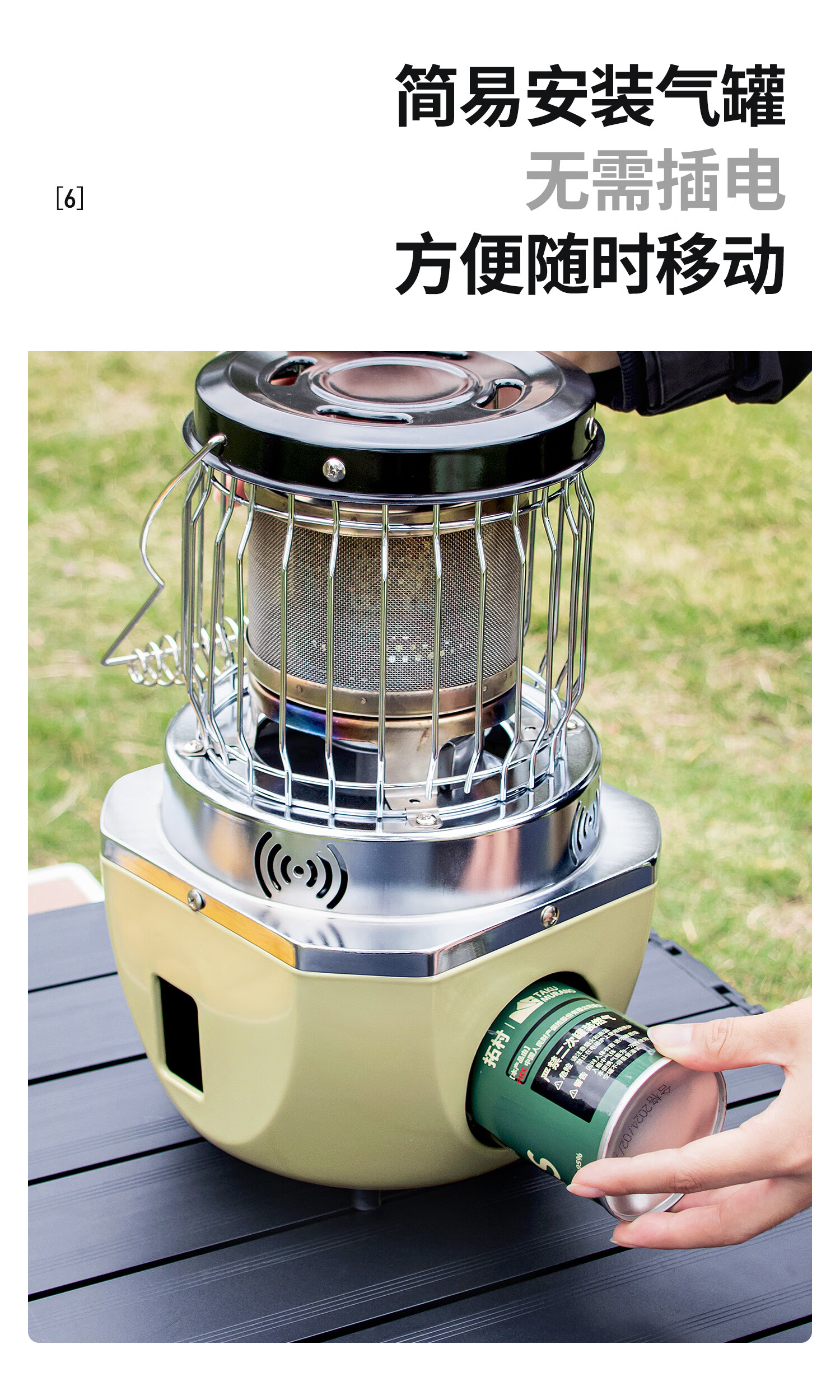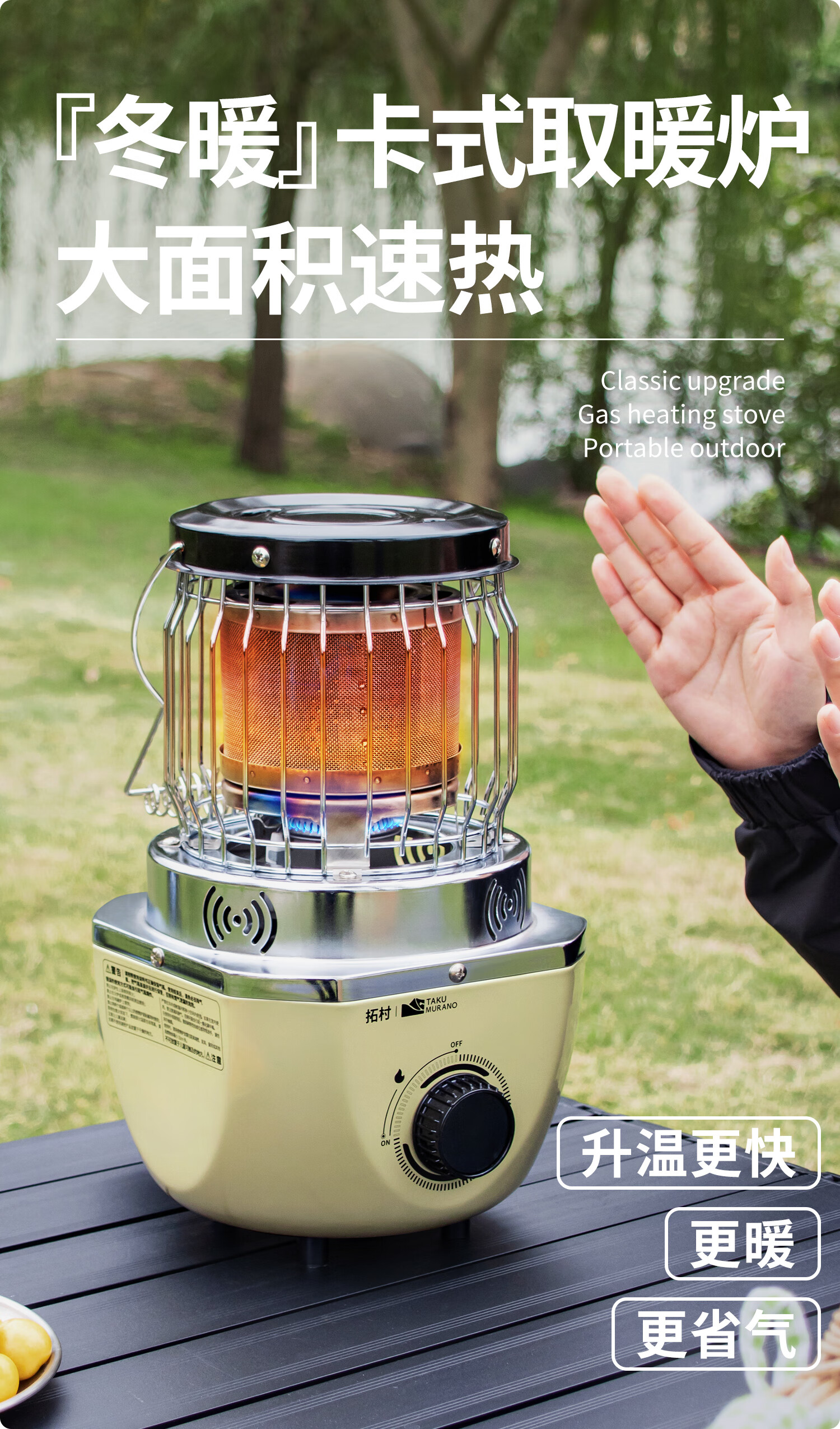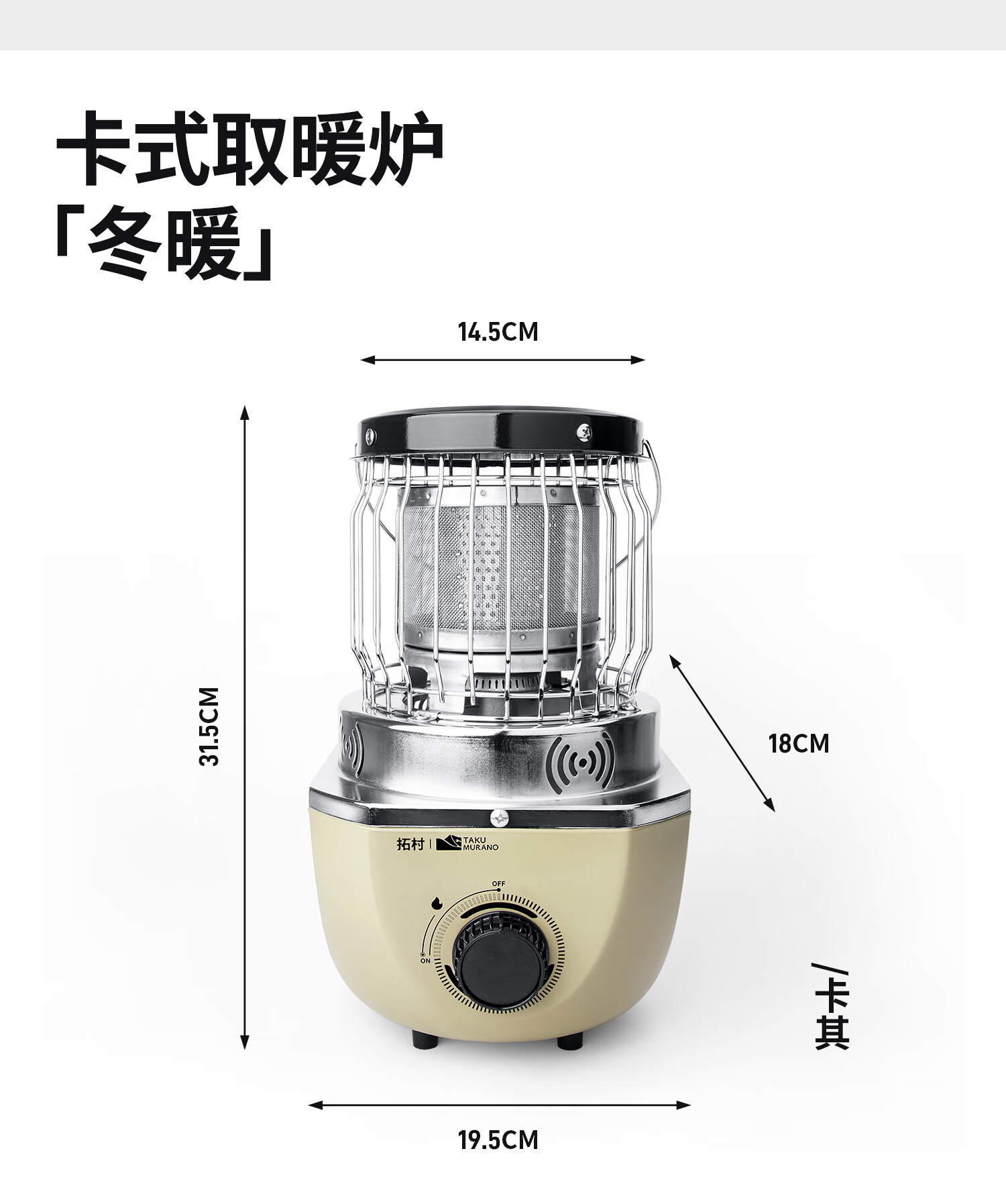 拓村卡式炉户外日式取暖炉室内便携式家用燃气灶露营装备供暖器 卡其色取暖炉+收纳袋