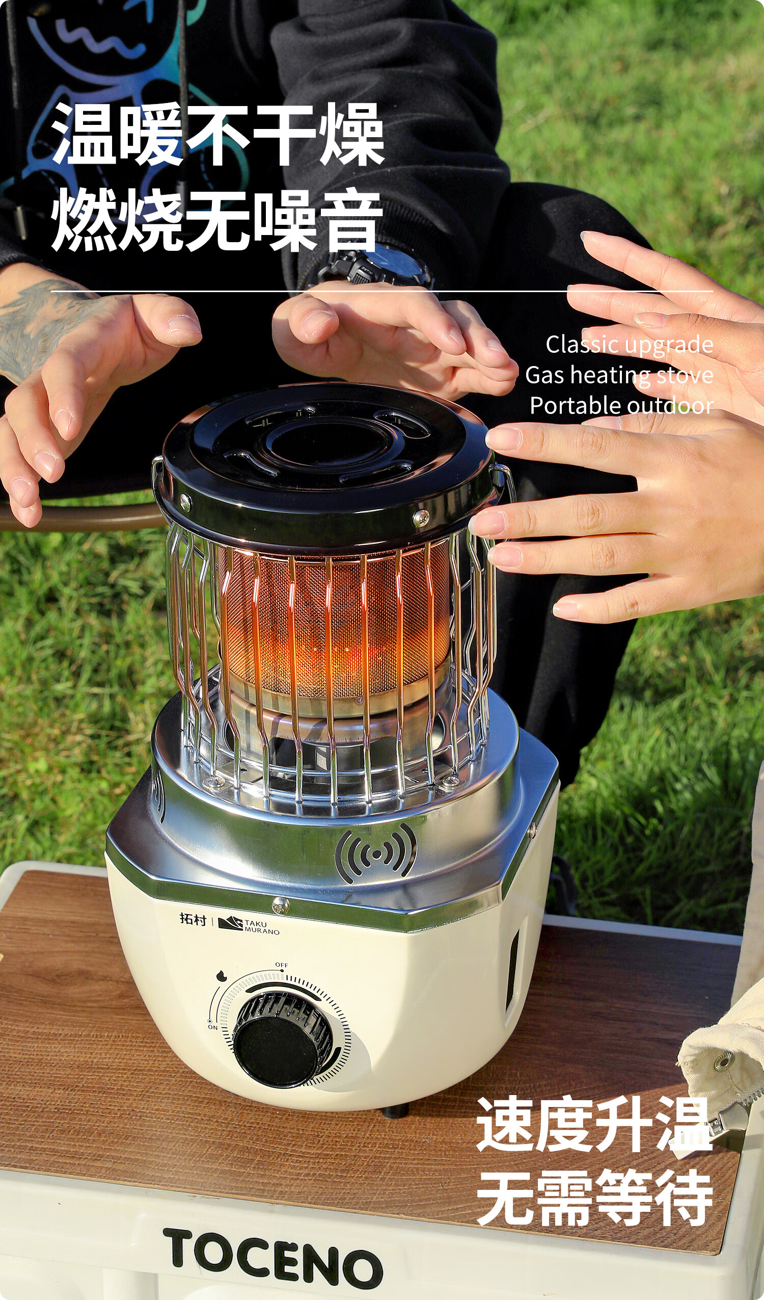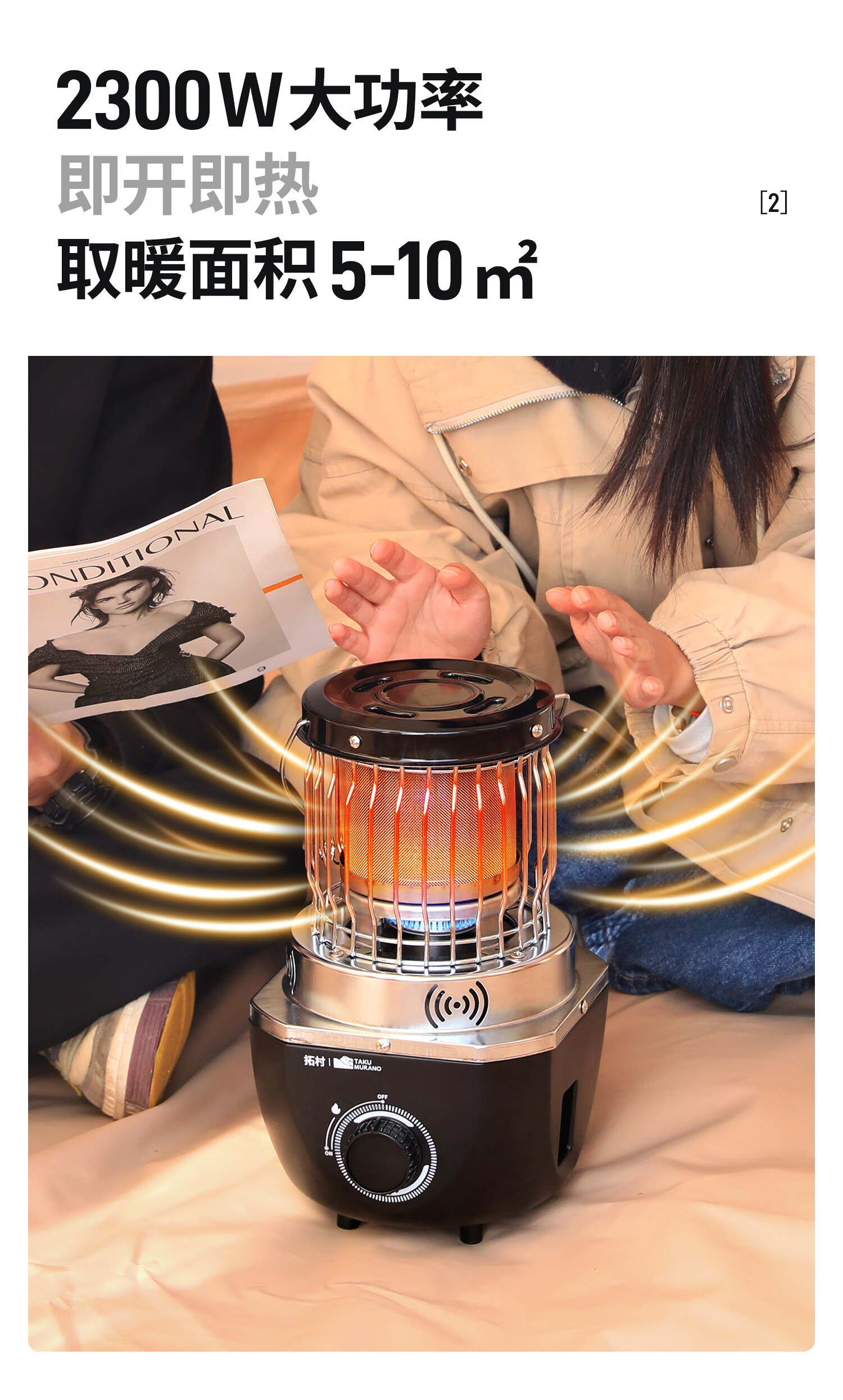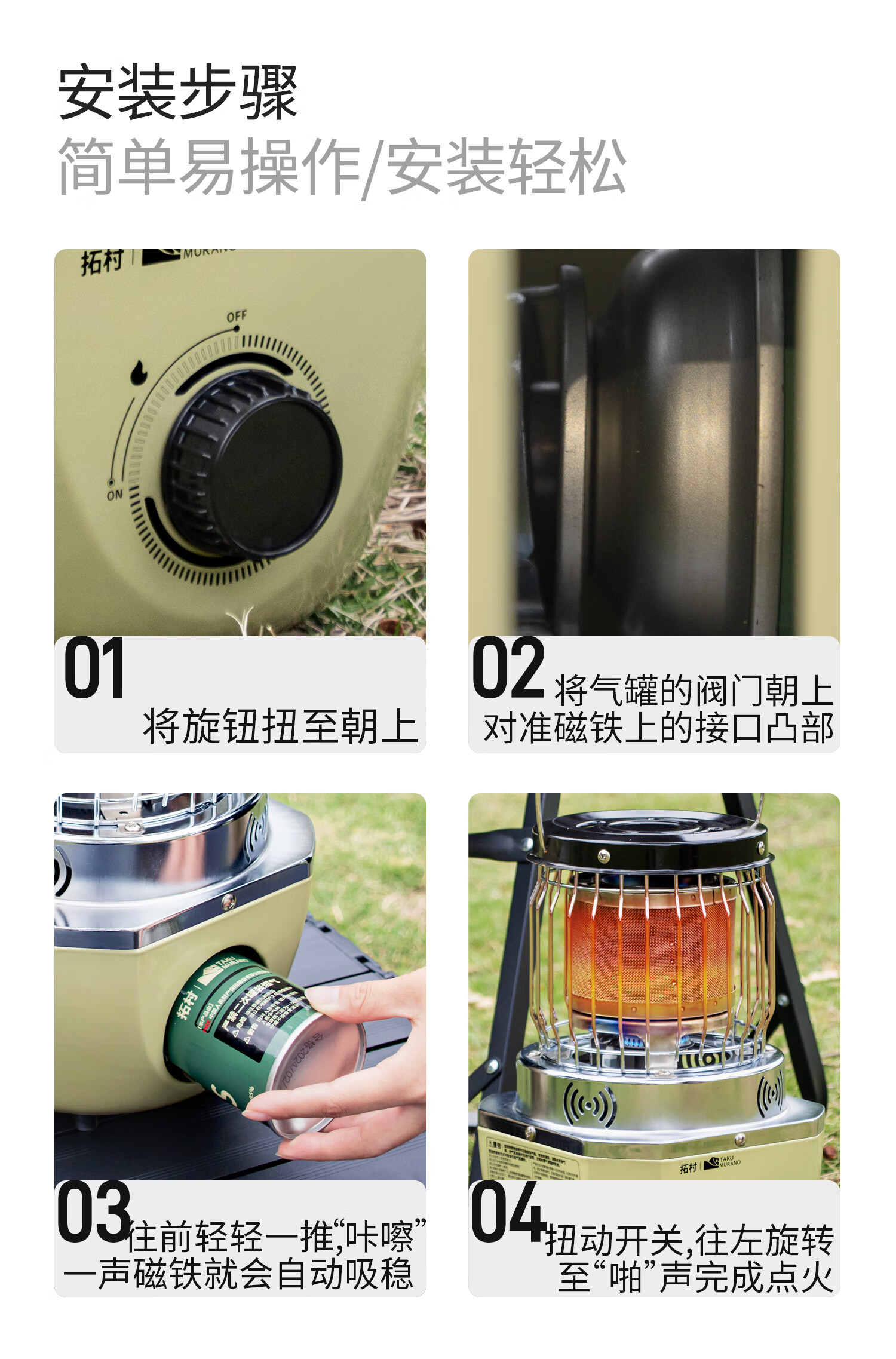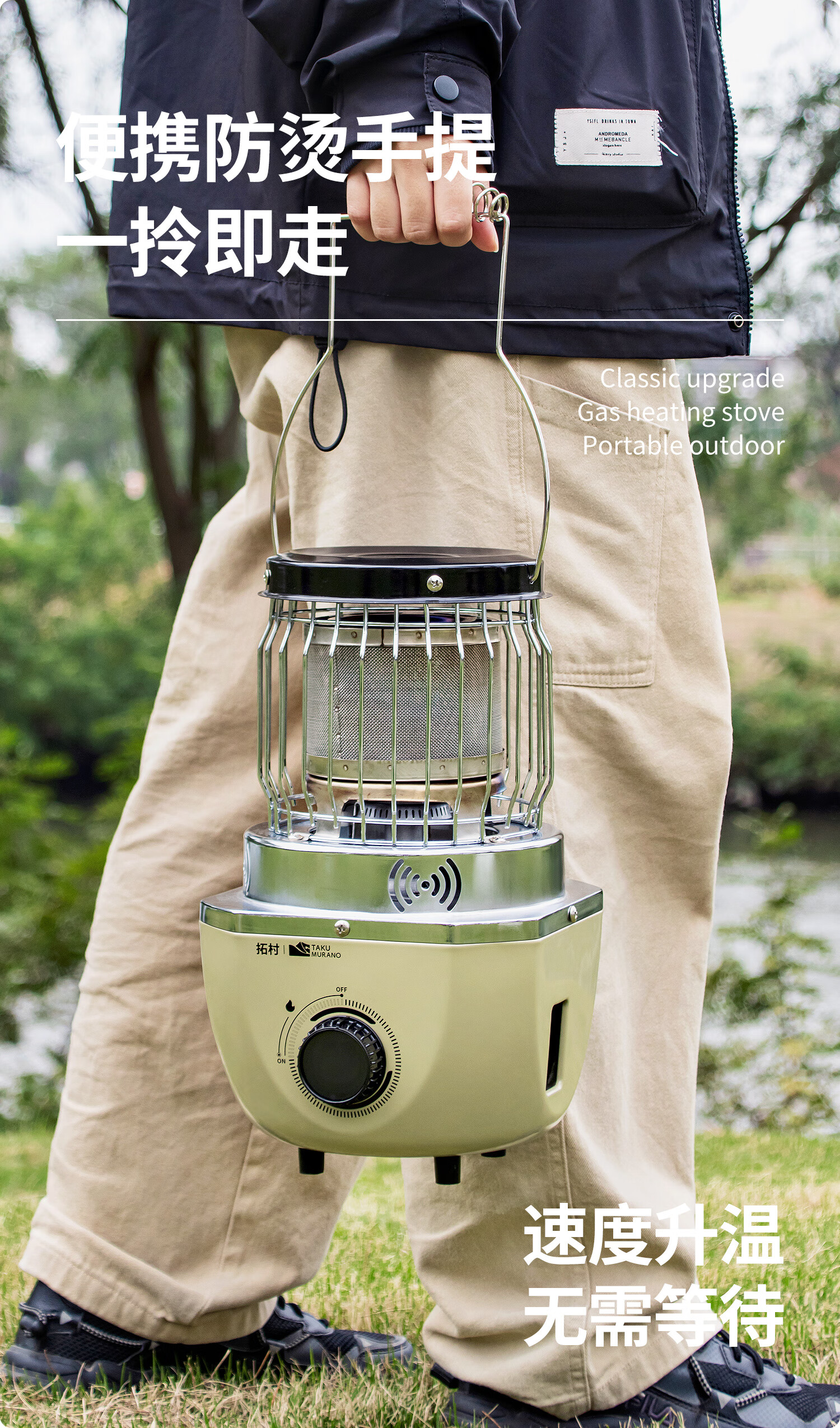 拓村卡式炉户外日式取暖炉室内便携式家用燃气灶露营装备供暖器 卡其色取暖炉+收纳袋