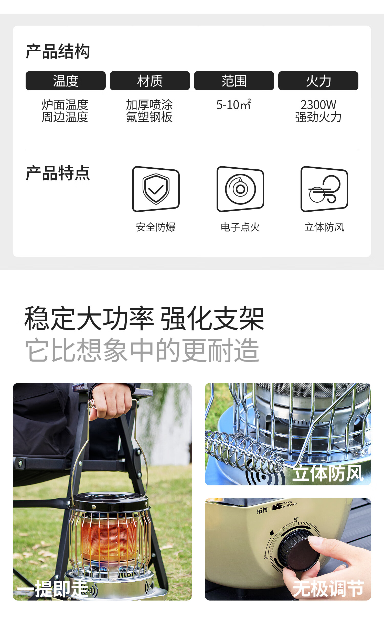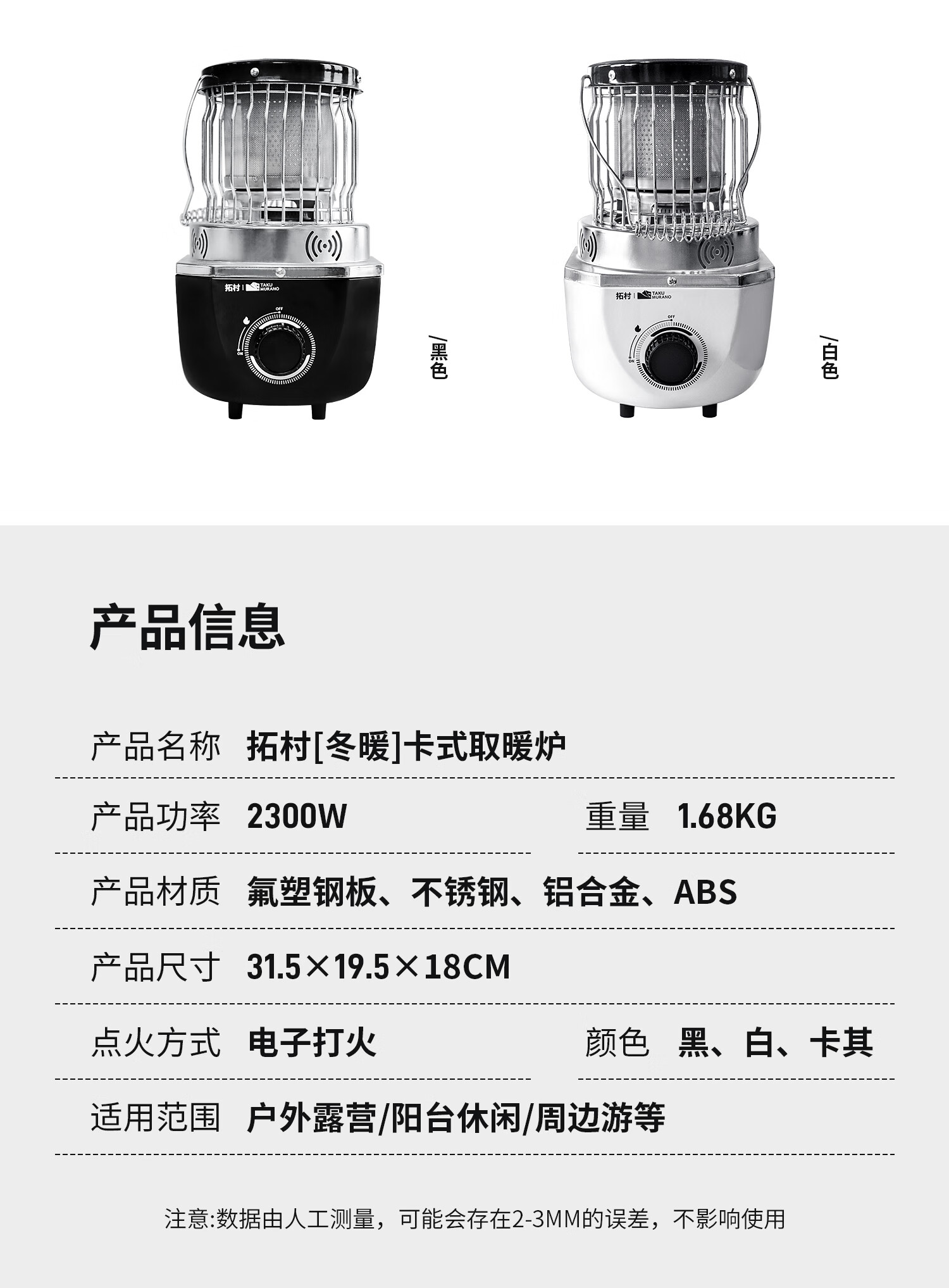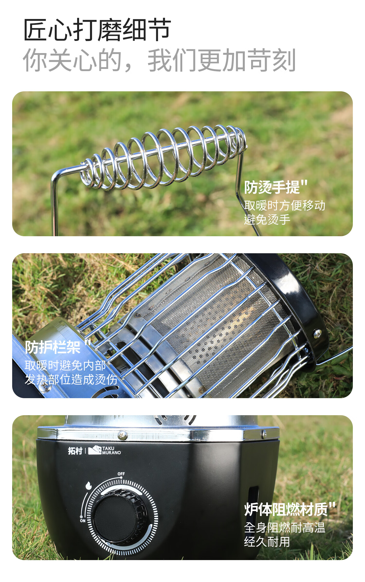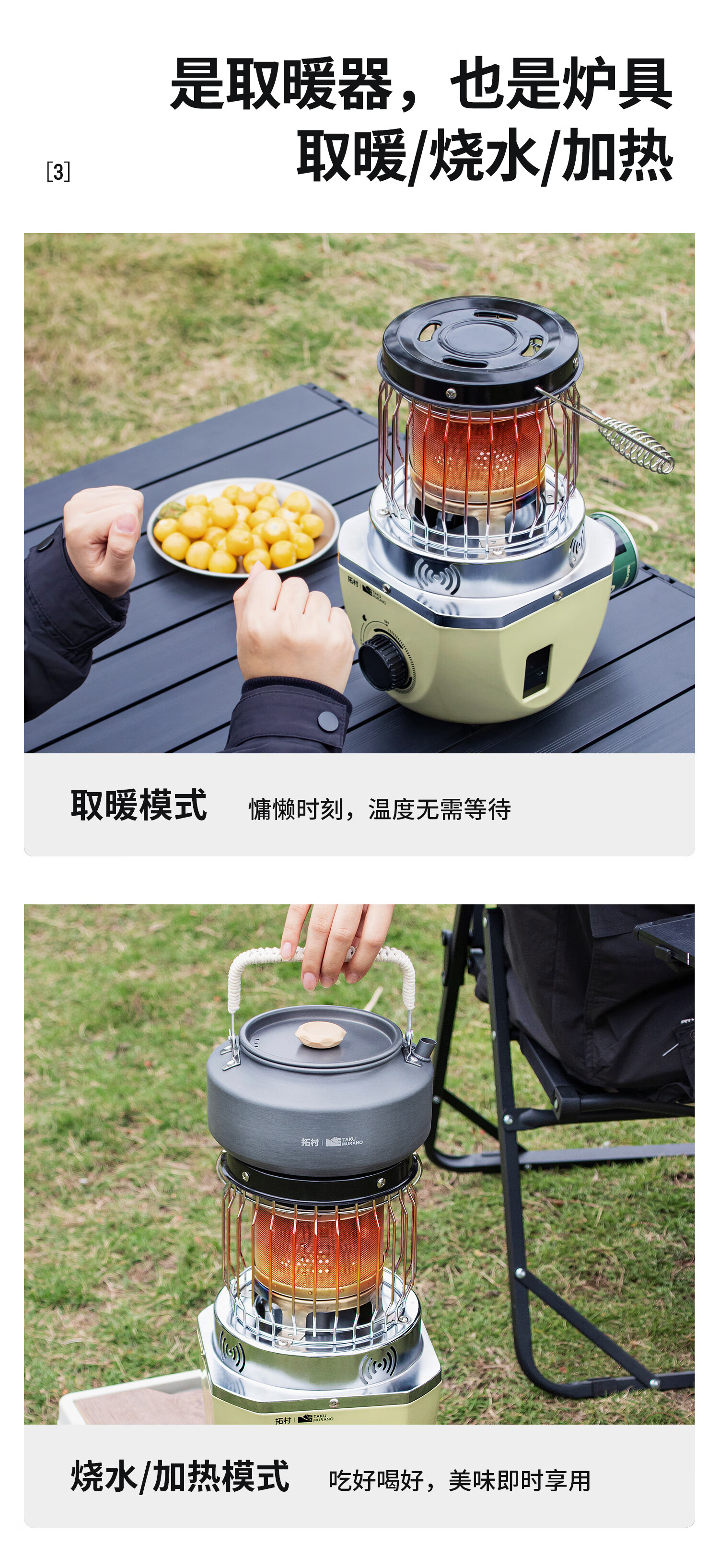 拓村卡式炉户外日式取暖炉室内便携式家用燃气灶露营装备供暖器 卡其色取暖炉+收纳袋