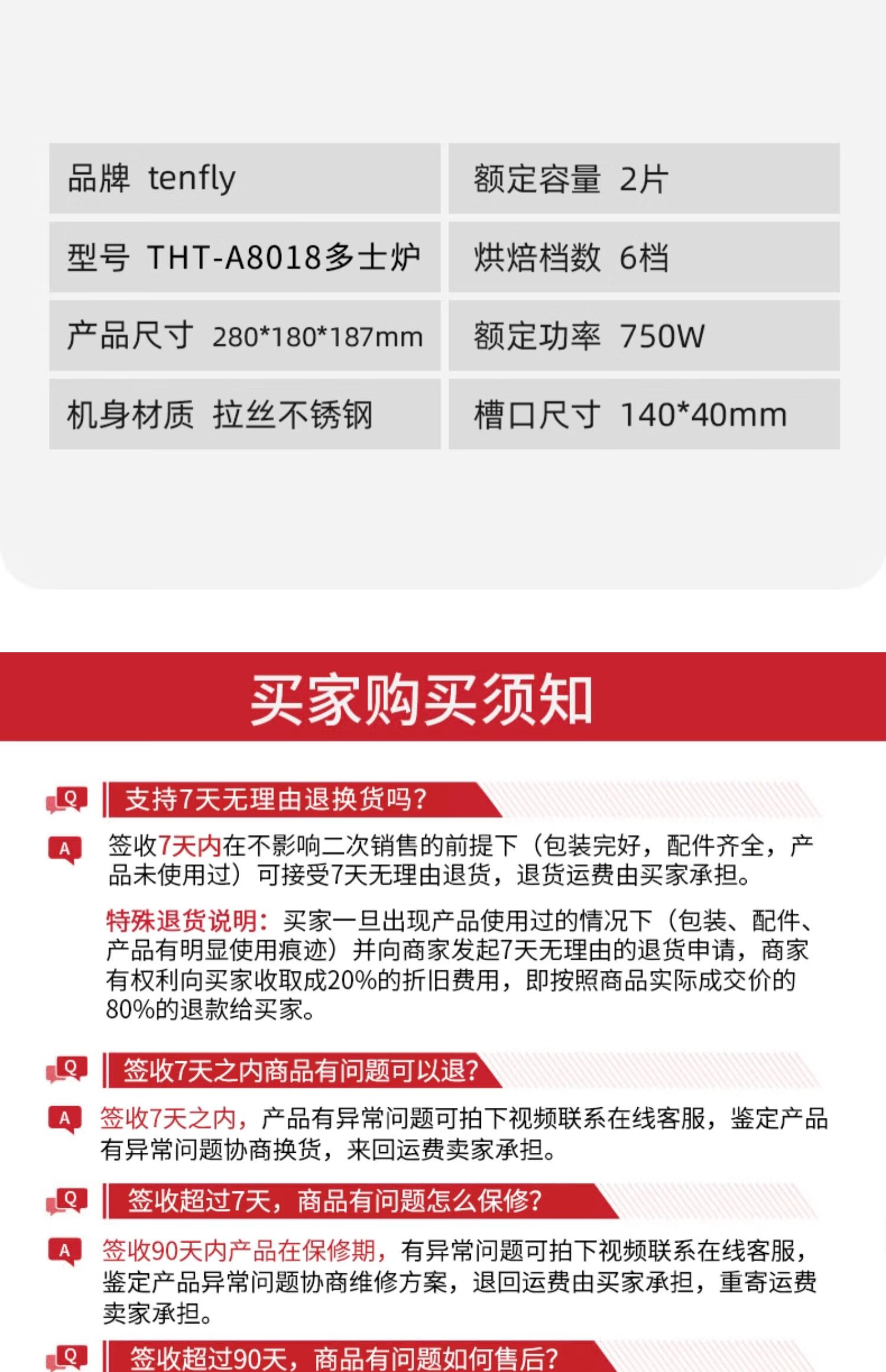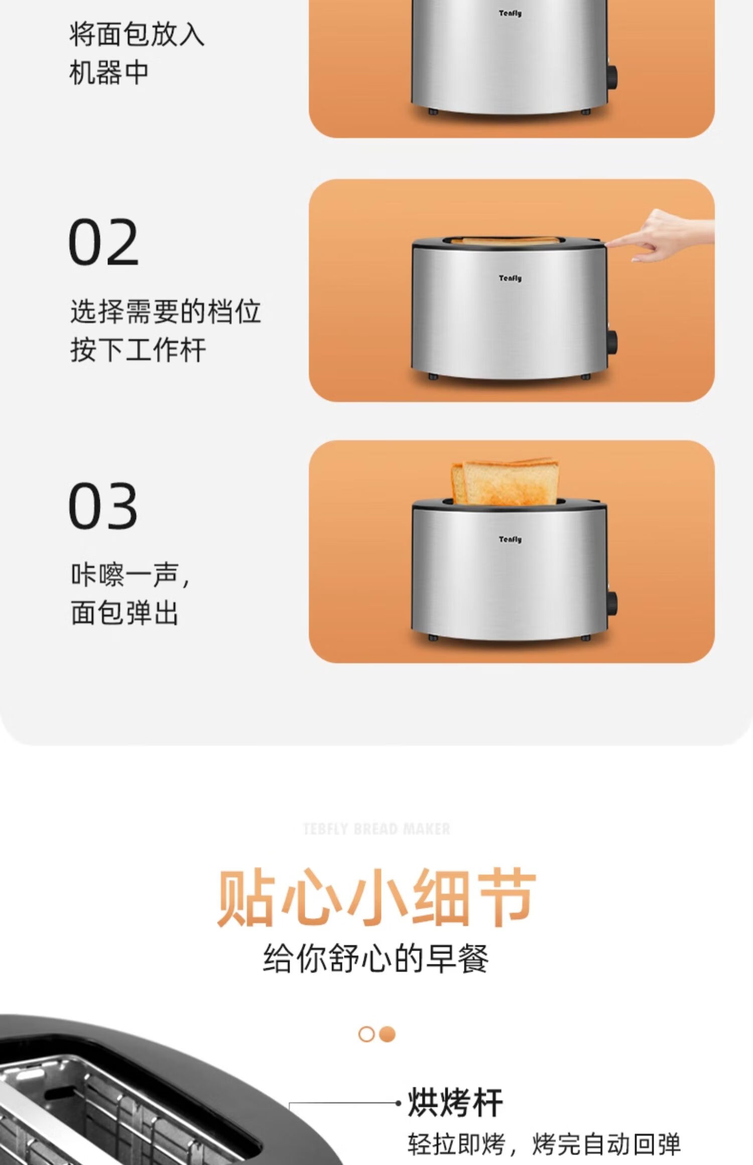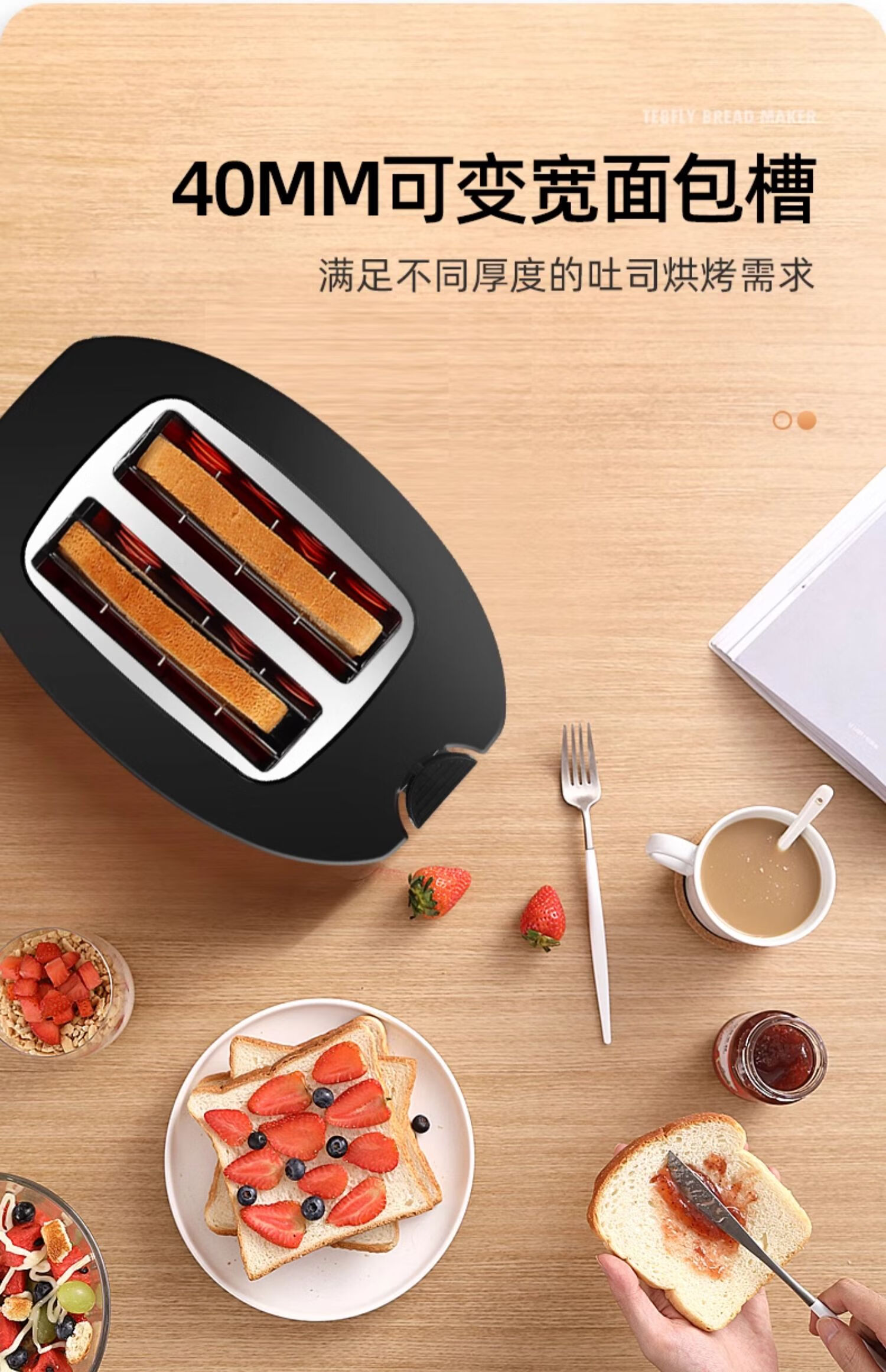 Tenfly早餐机多士炉烤面包机多档烘烤不锈钢烤面包片机烤三明治面包片 全自动家用吐司机多功能一体机 家商两用 加宽4片面包槽 含实用4件套