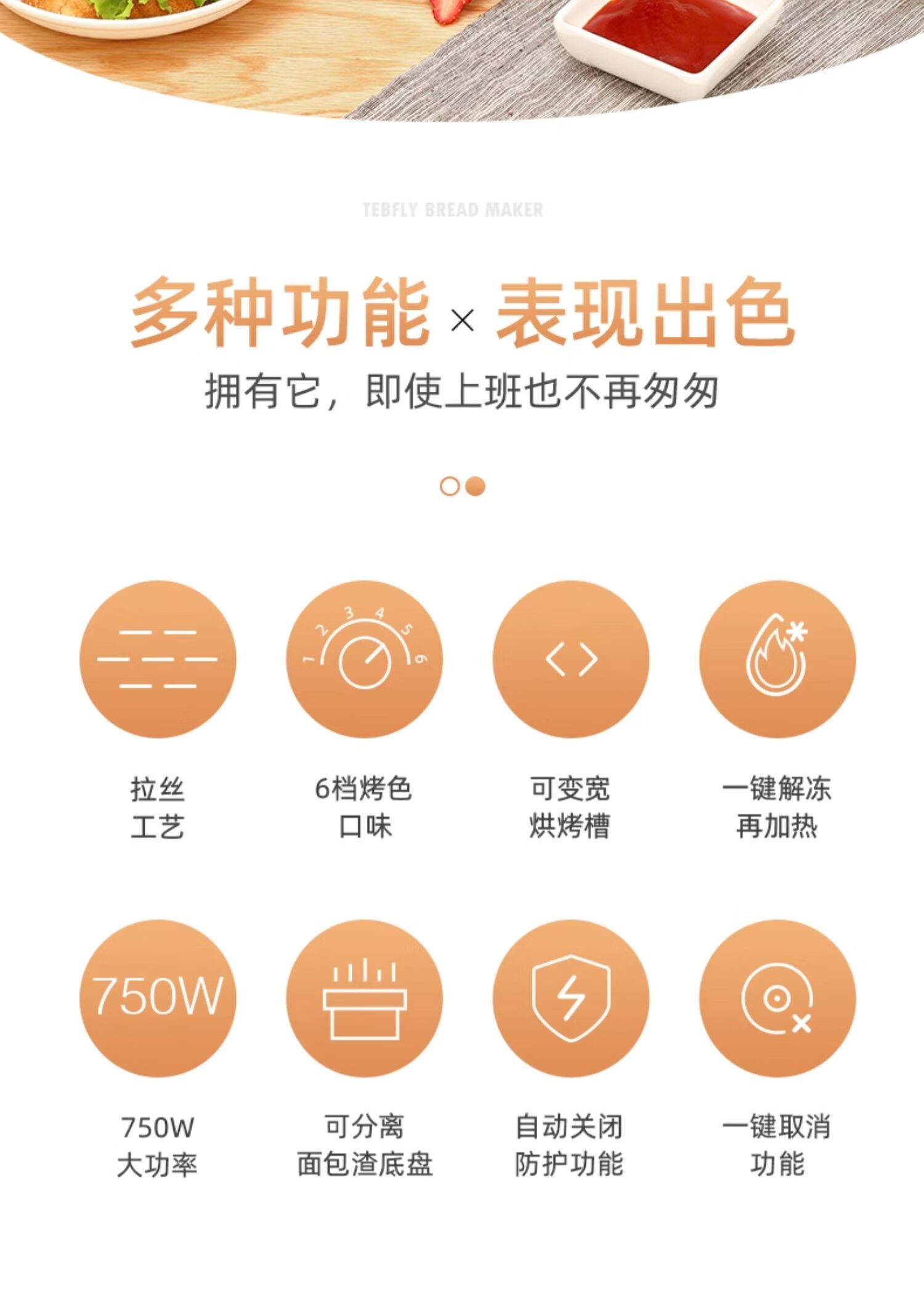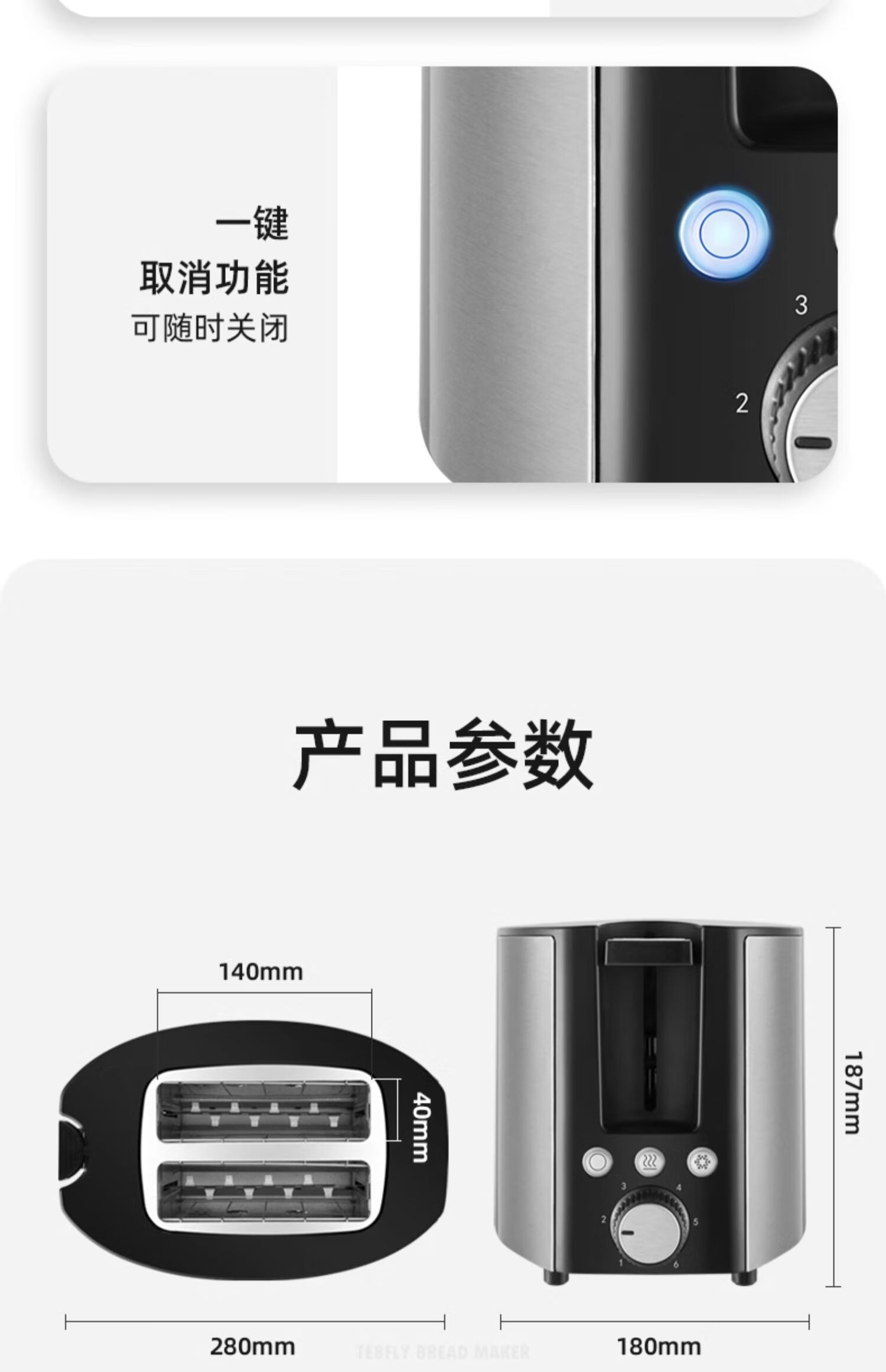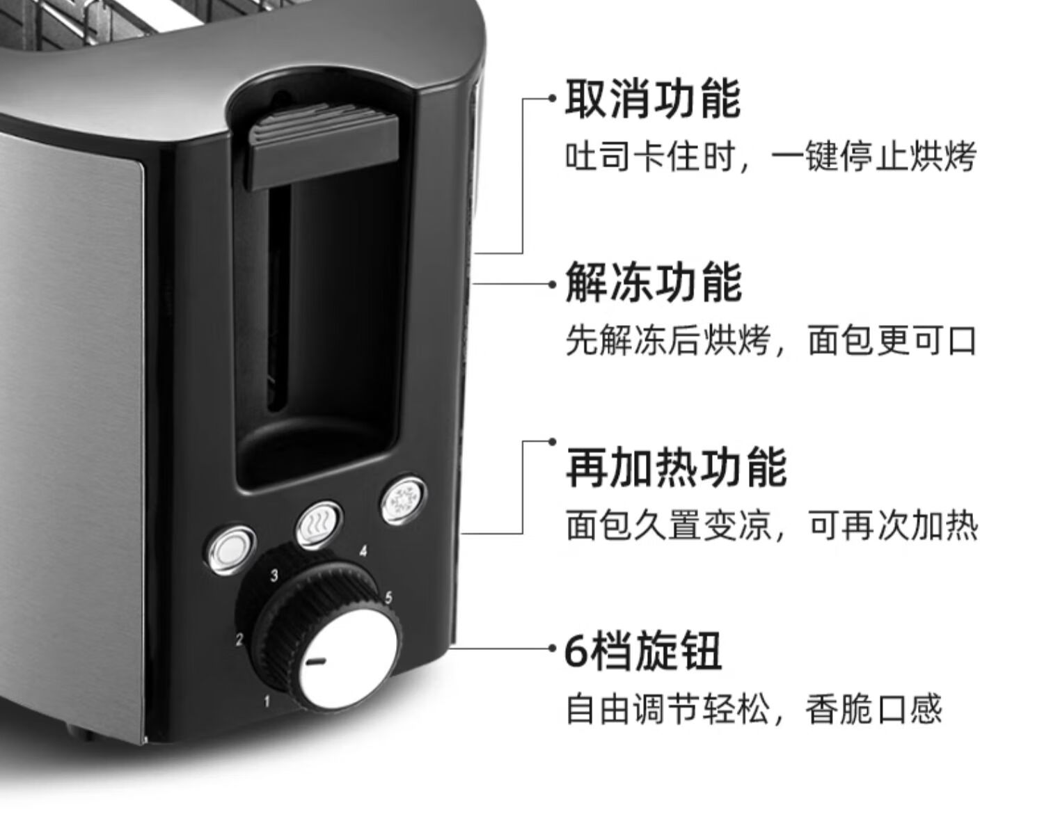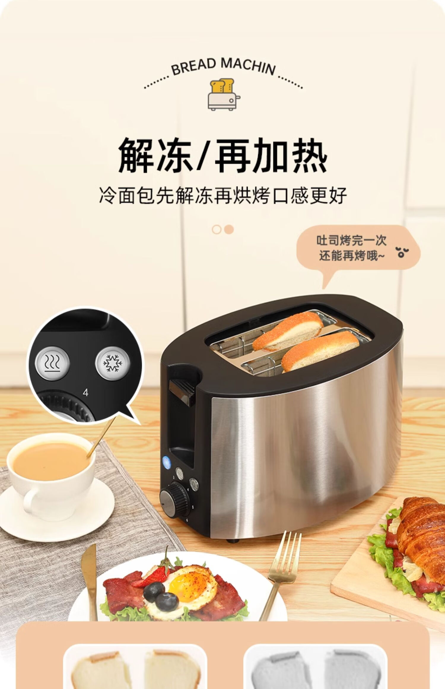 Tenfly早餐机多士炉烤面包机多档烘烤不锈钢烤面包片机烤三明治面包片 全自动家用吐司机多功能一体机 家商两用 加宽4片面包槽 含实用4件套