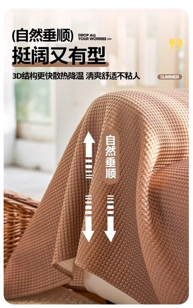 ALPLUME2026新款凉豆豆冰丝沙发巾全盖沙发套夏季凉席坐垫防滑沙发盖布 3D凉感立体豆-抹茶绿 单人位 180*130cm【适合小单人位】