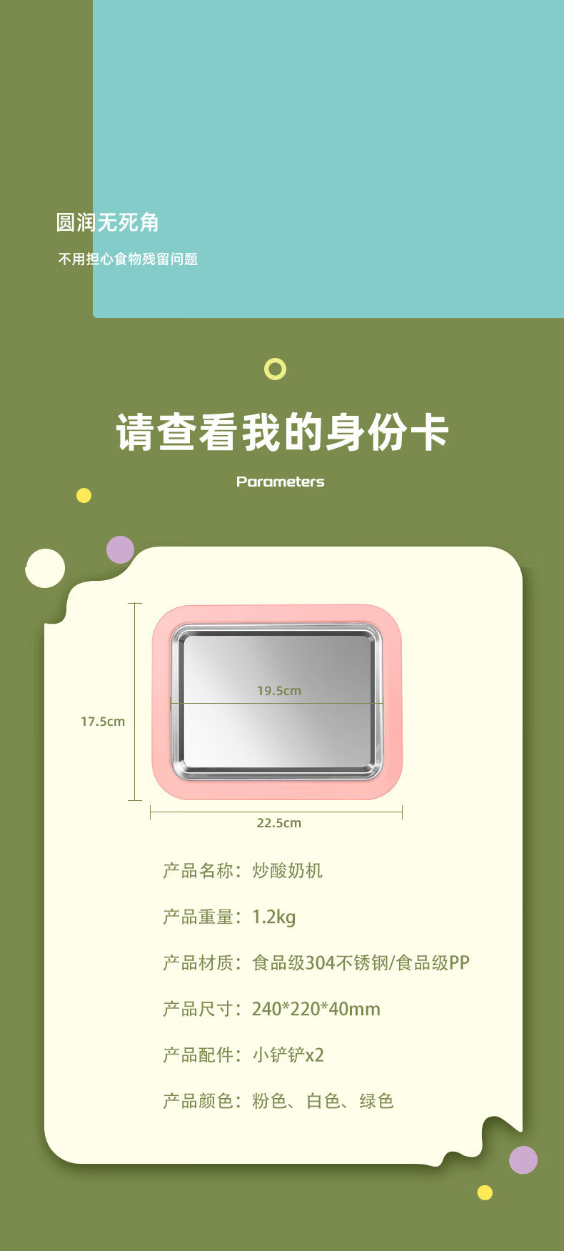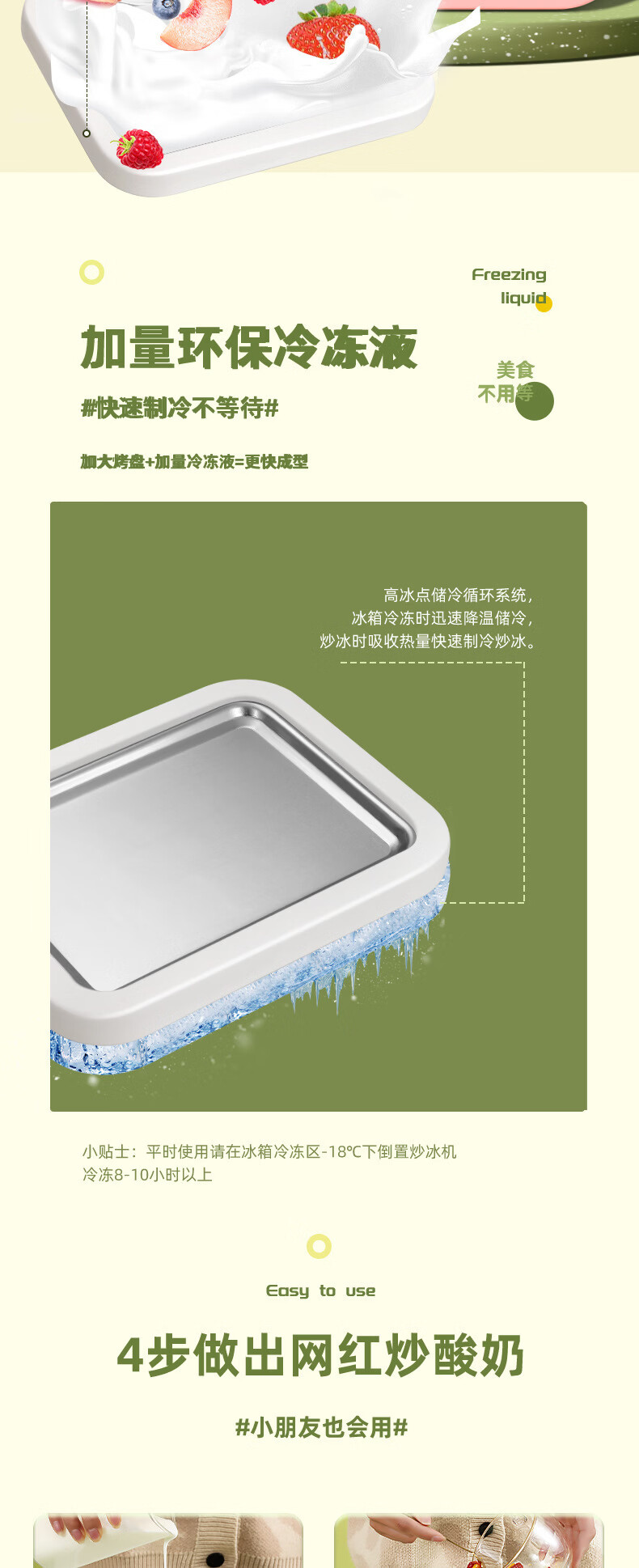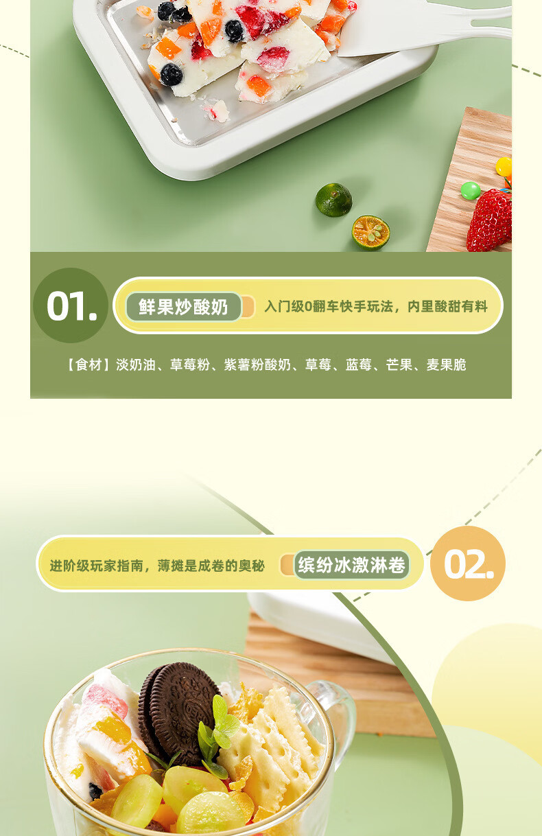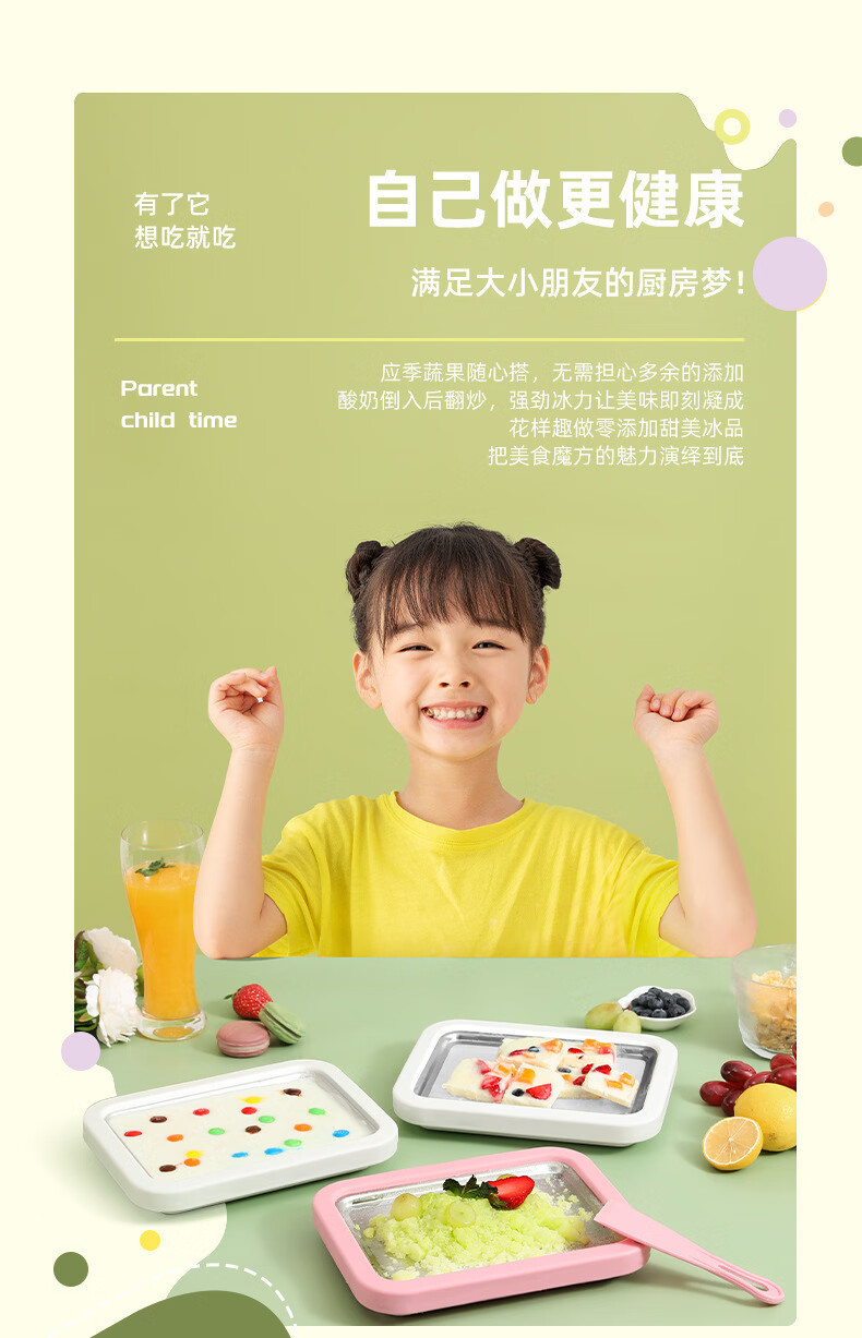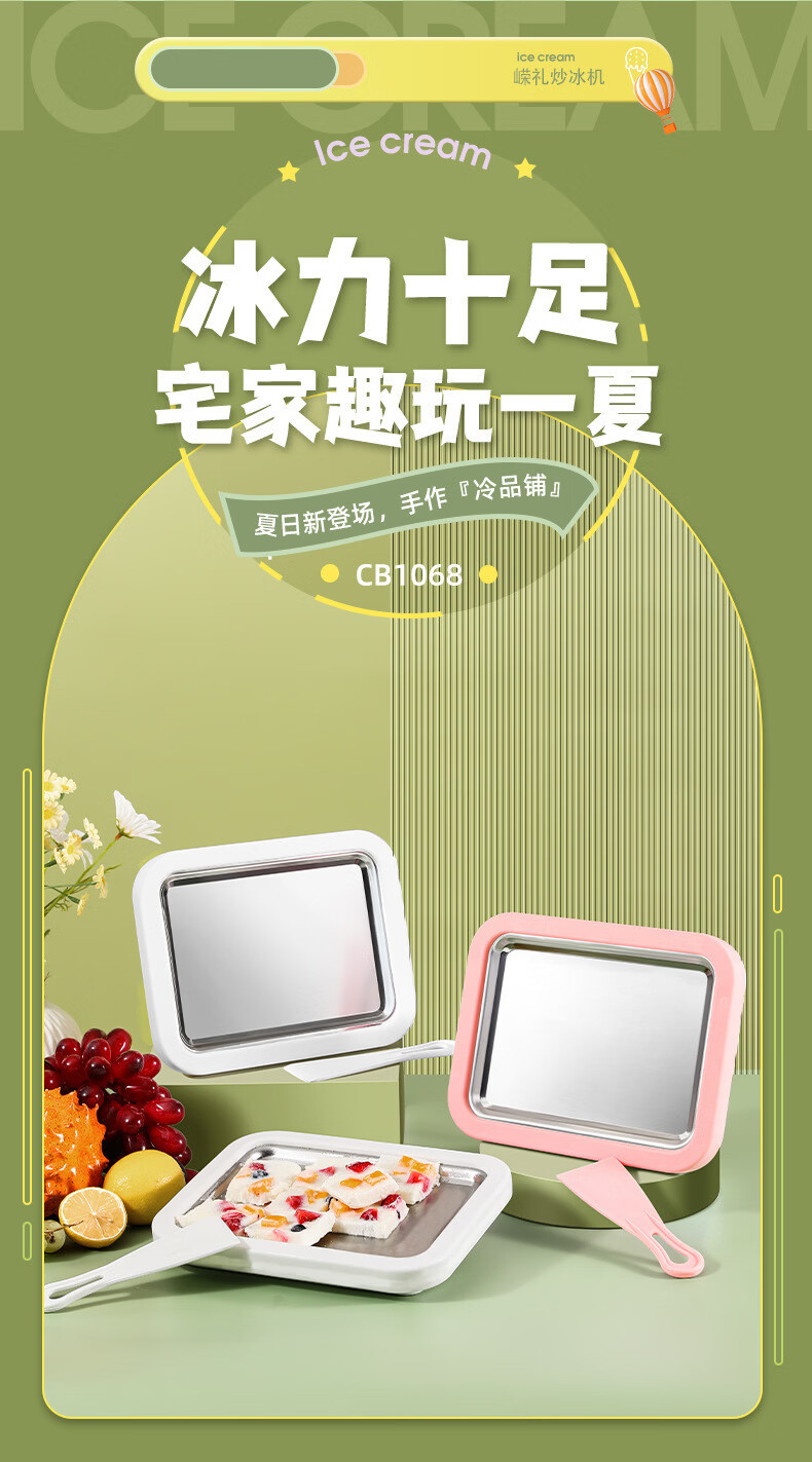 【好物优选】儿童自制DIY高颜值不锈钢炒冰盘炒酸奶机家用小巧冰淇淋机炒冰机 白色 大号尺寸(22.5*17.5