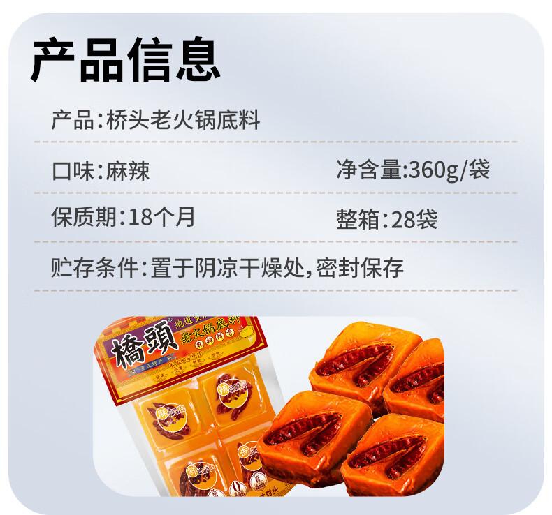 桥头老火锅底料360g 重庆风味麻辣烫冒菜干锅香锅调料 牛油火锅底料