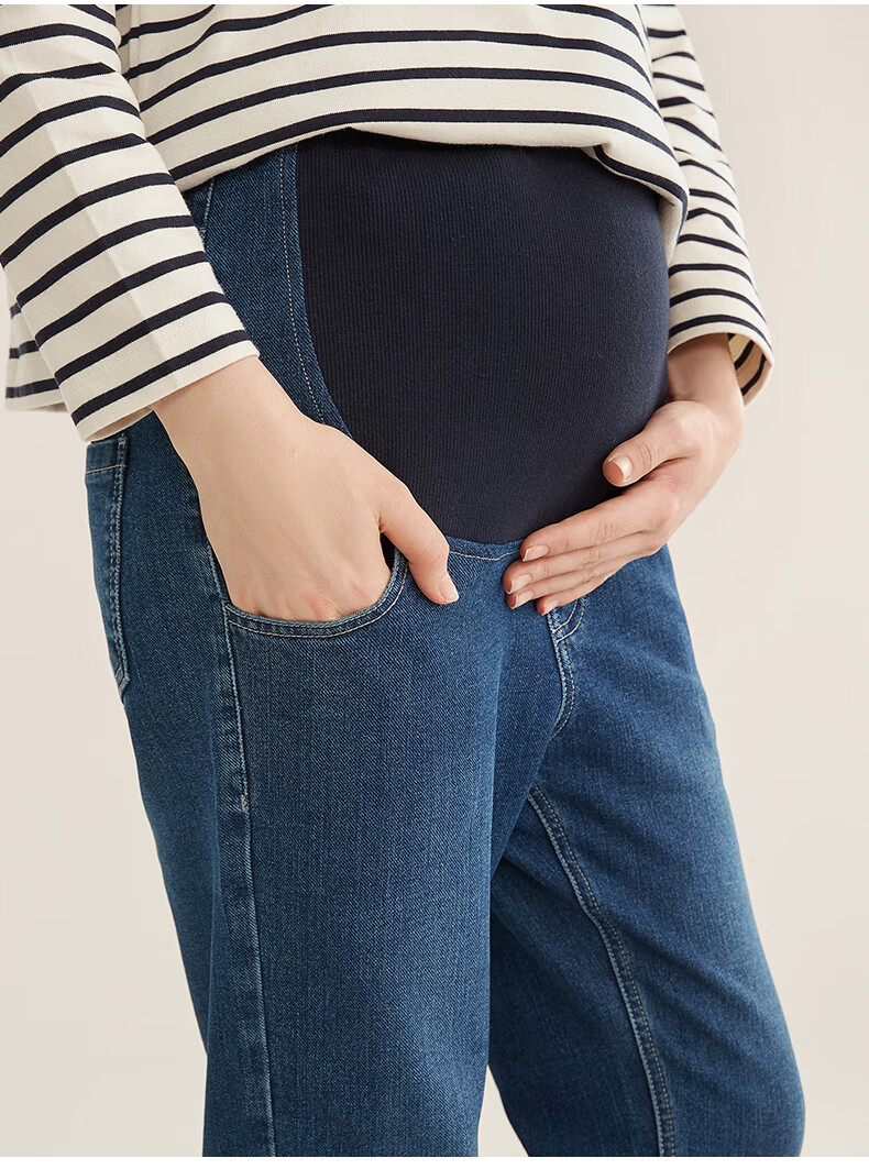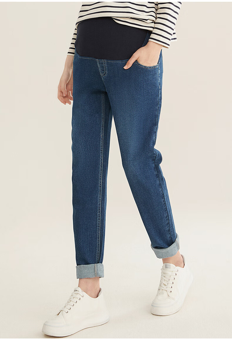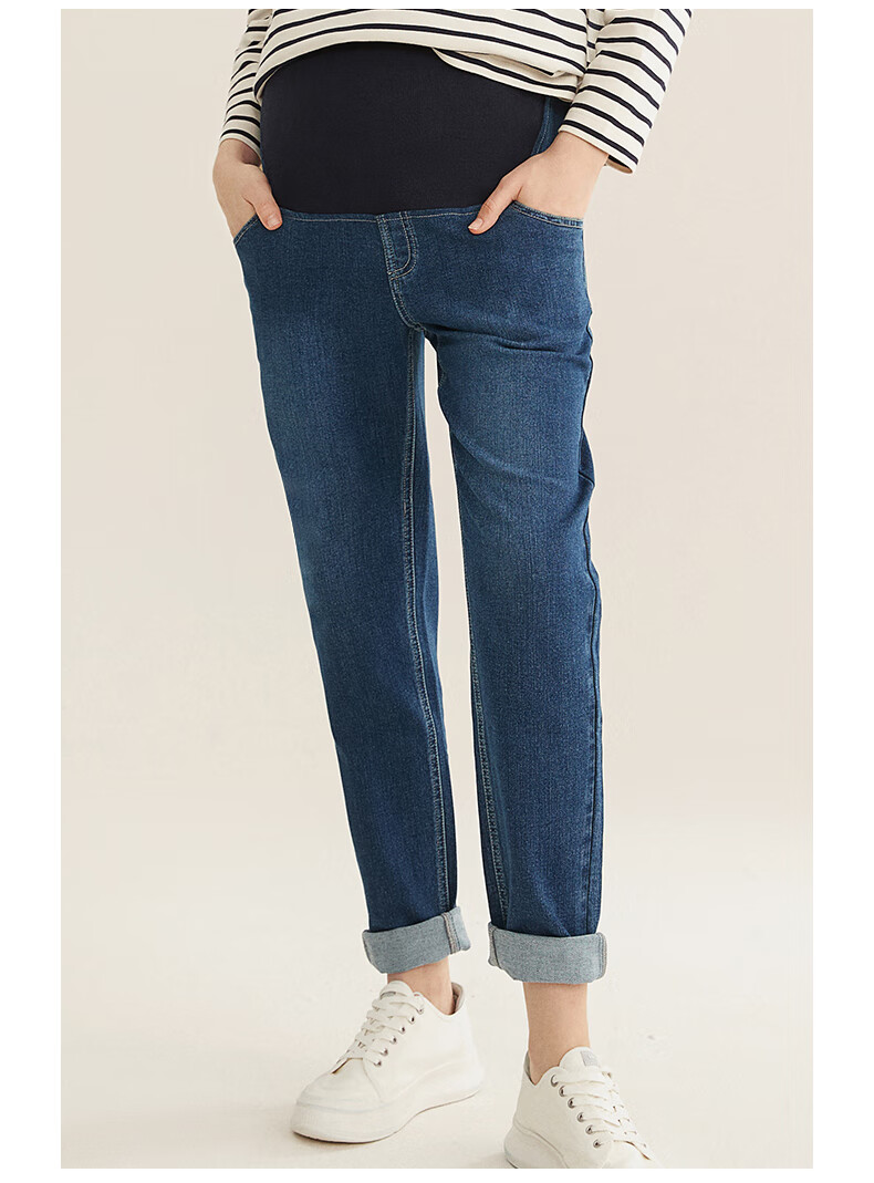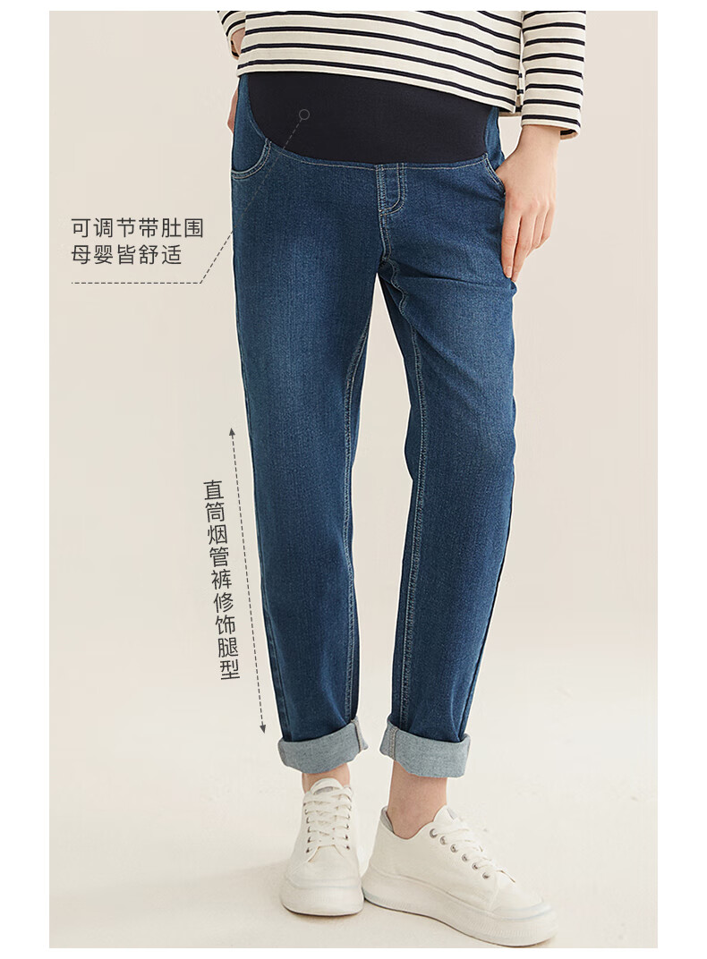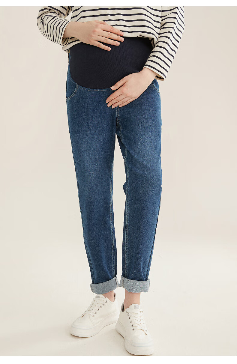 sohiwoo孕妇牛仔裤新款外穿大码直筒款小个子老爹牛仔裤 深蓝 2XL