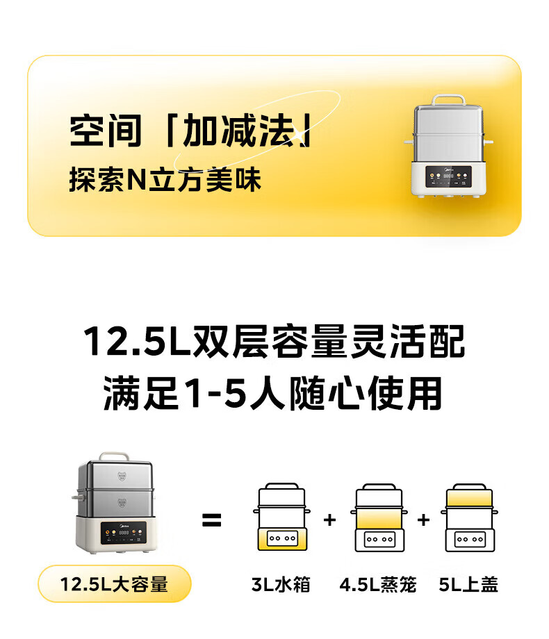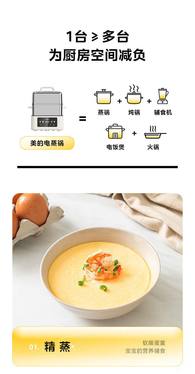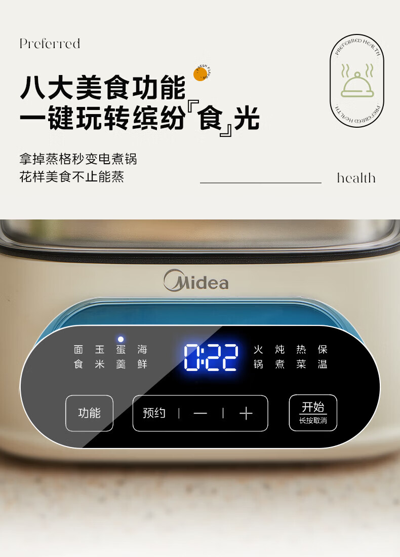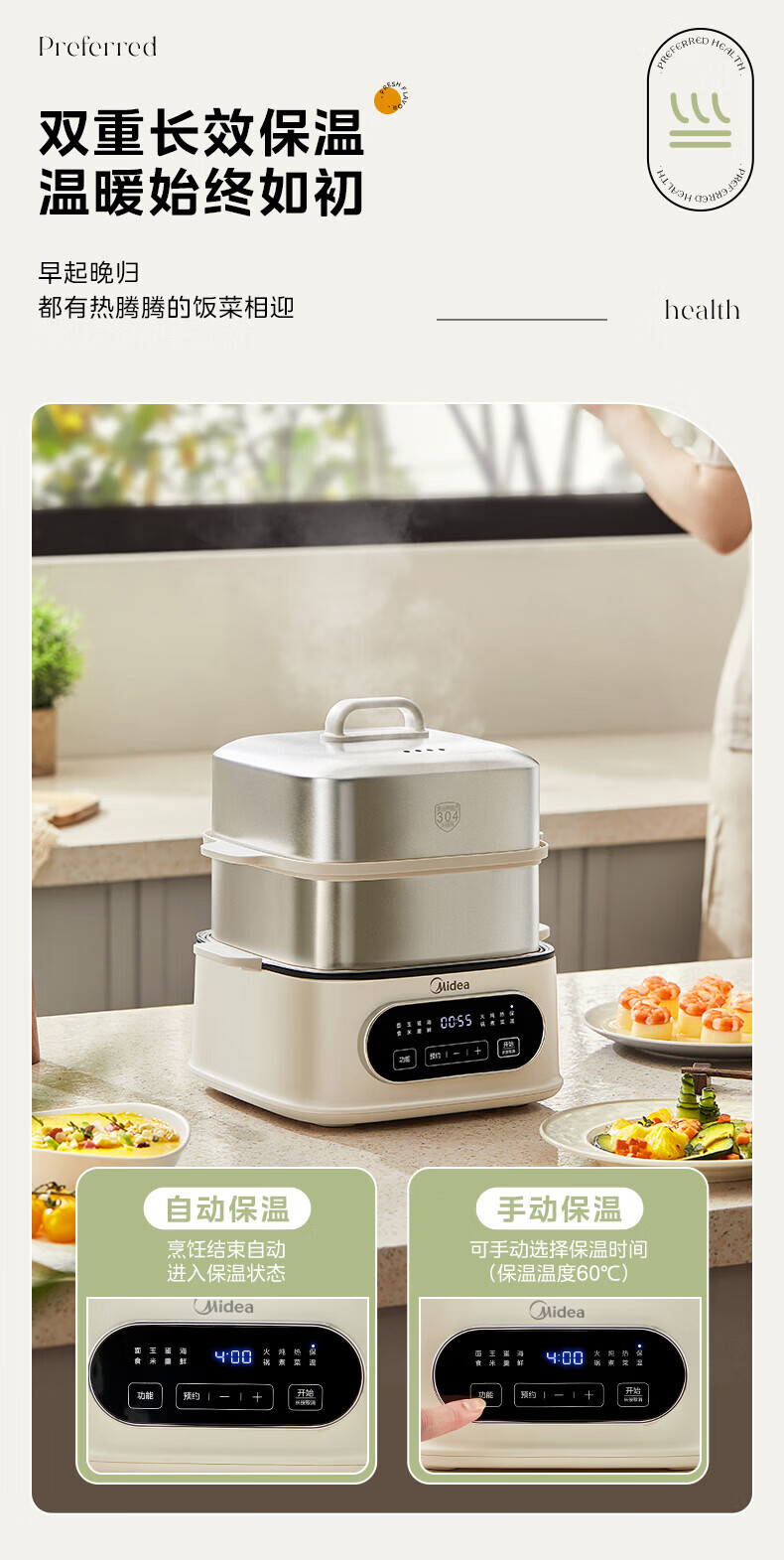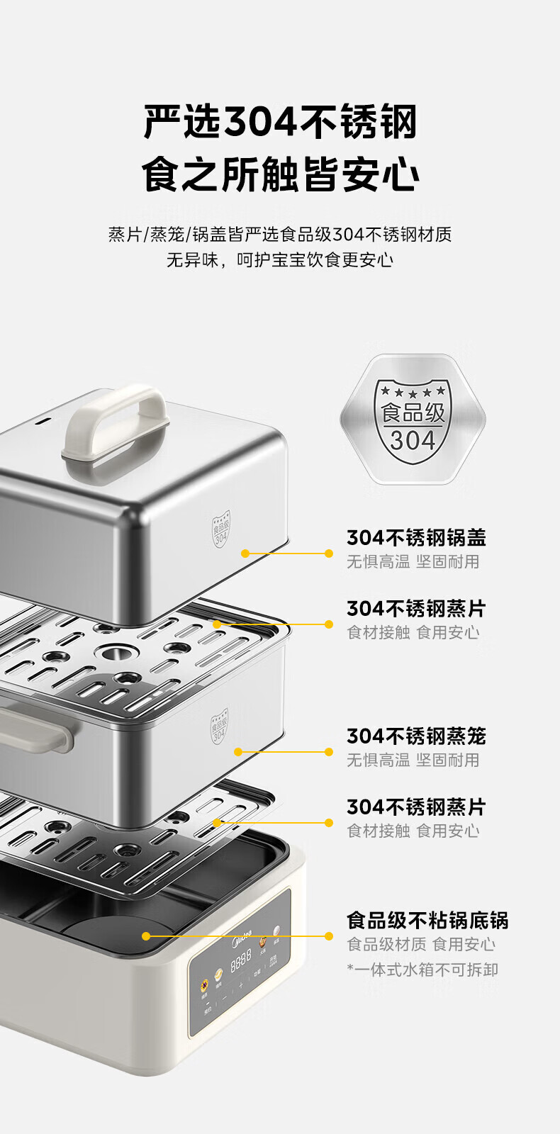 美的(Midea)电蒸锅炖蒸煮一体304不锈钢家用多功能电煮锅火锅自动保温定时早餐蒸蛋煮蛋器蒸鱼馒头包子蒸锅 9.3L 智能预约上蒸下炖ZGC232366