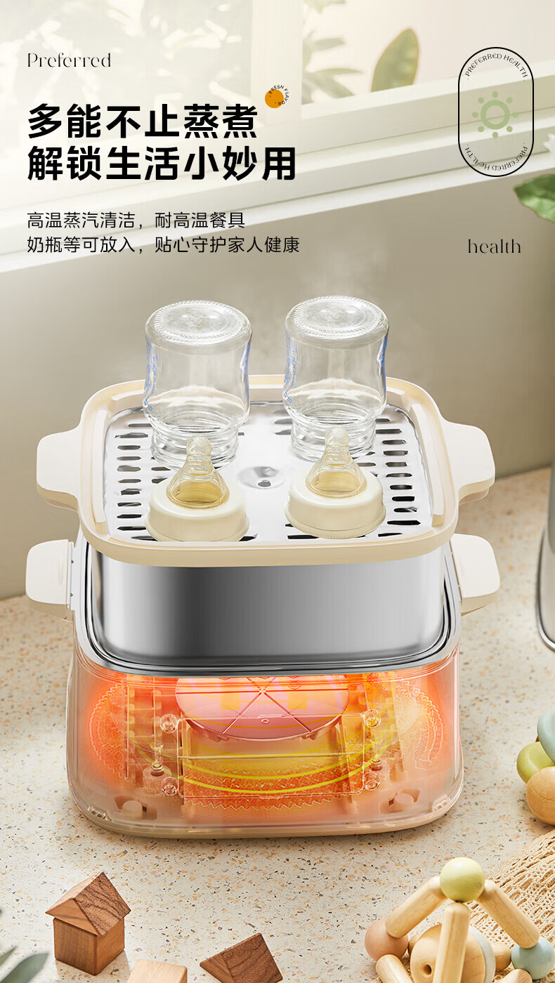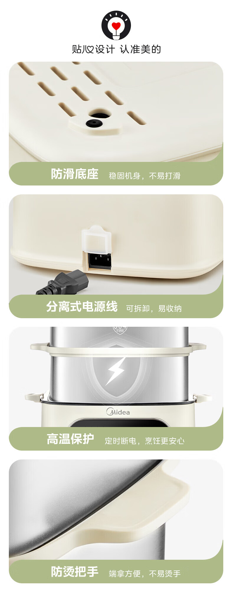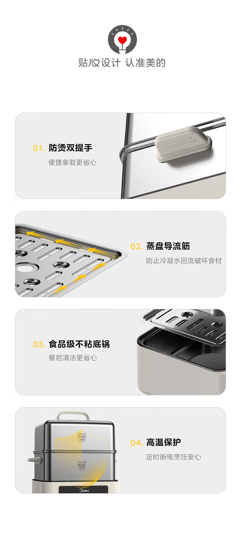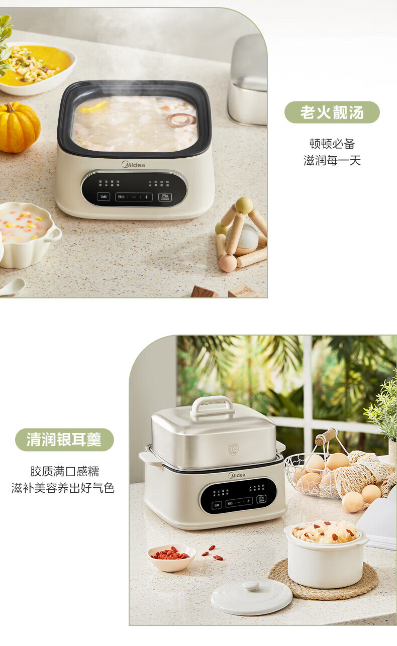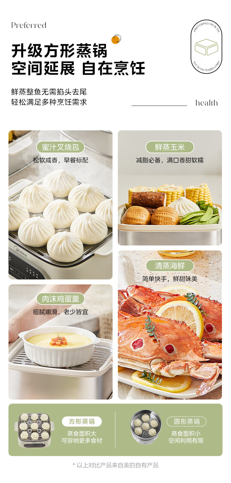 美的(Midea)电蒸锅炖蒸煮一体304不锈钢家用多功能电煮锅火锅自动保温定时早餐蒸蛋煮蛋器蒸鱼馒头包子蒸锅 9.3L 智能预约上蒸下炖ZGC232366