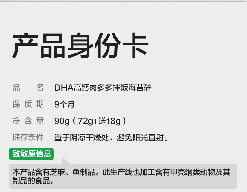宝宝馋了DHA高钙拌饭海苔碎90g儿童佐餐拌饭无添加食盐享婴儿宝宝辅食谱