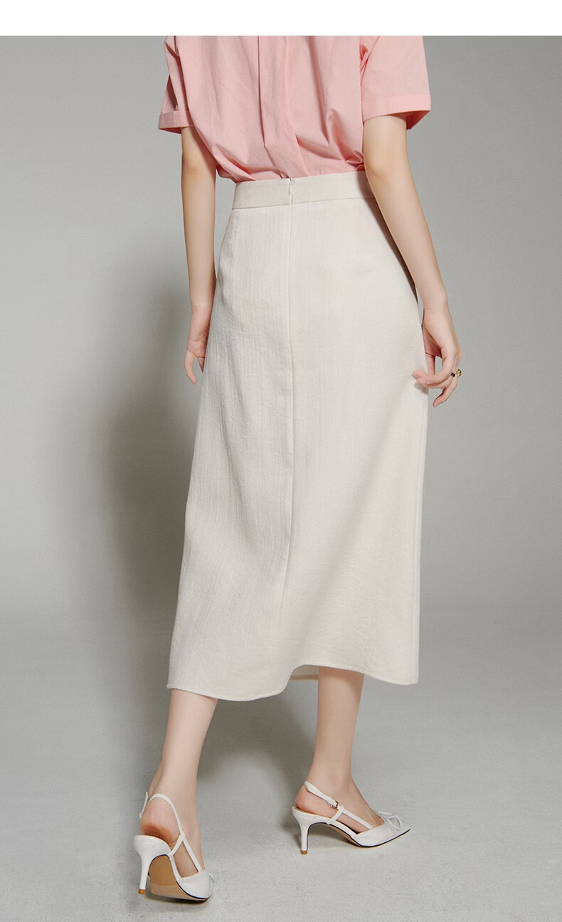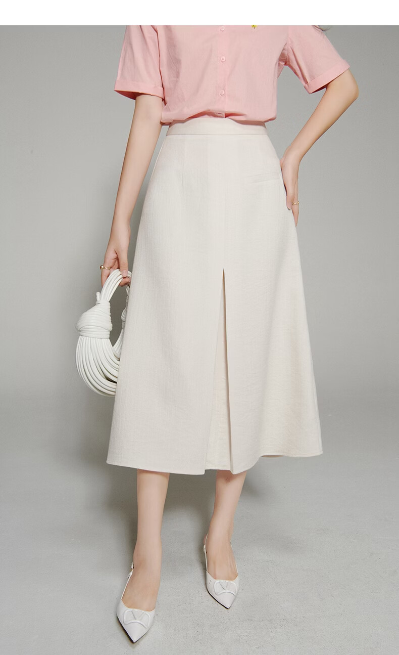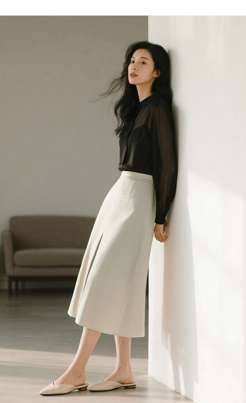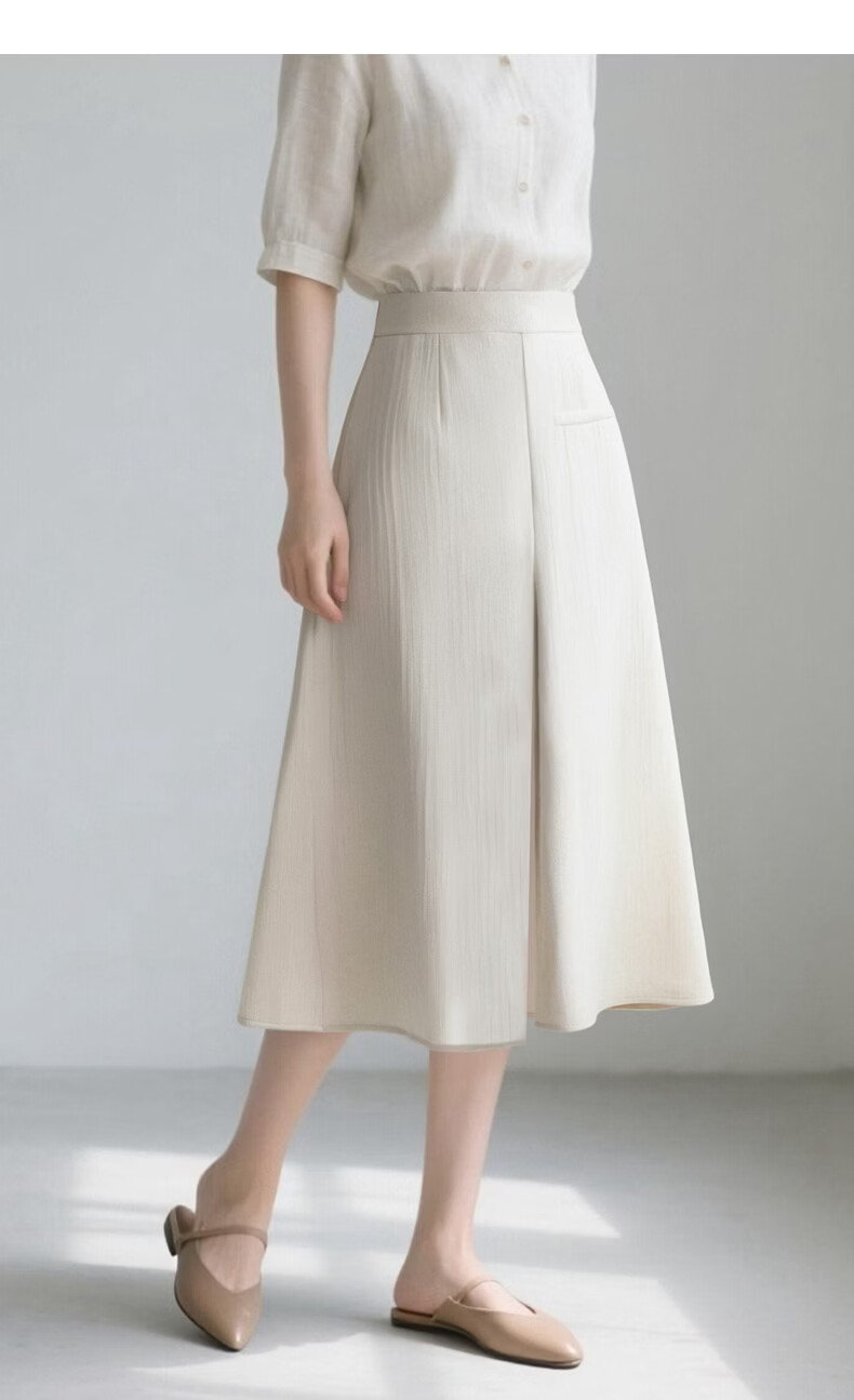 晚白【新品】2026春款时尚纯色高腰裙子亲肤舒适气质百搭半身裙 米杏色 M