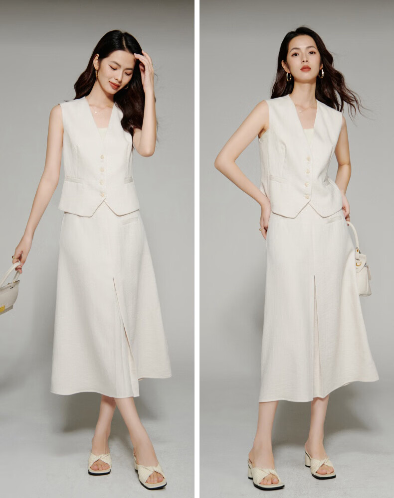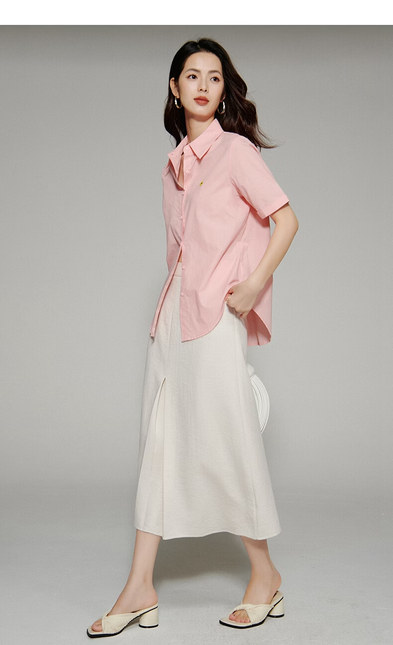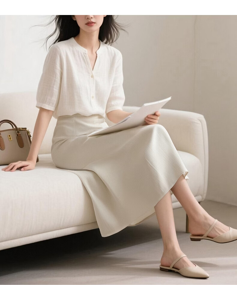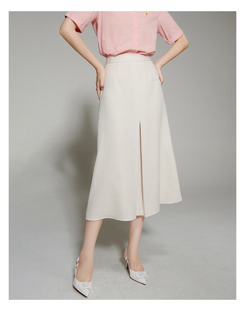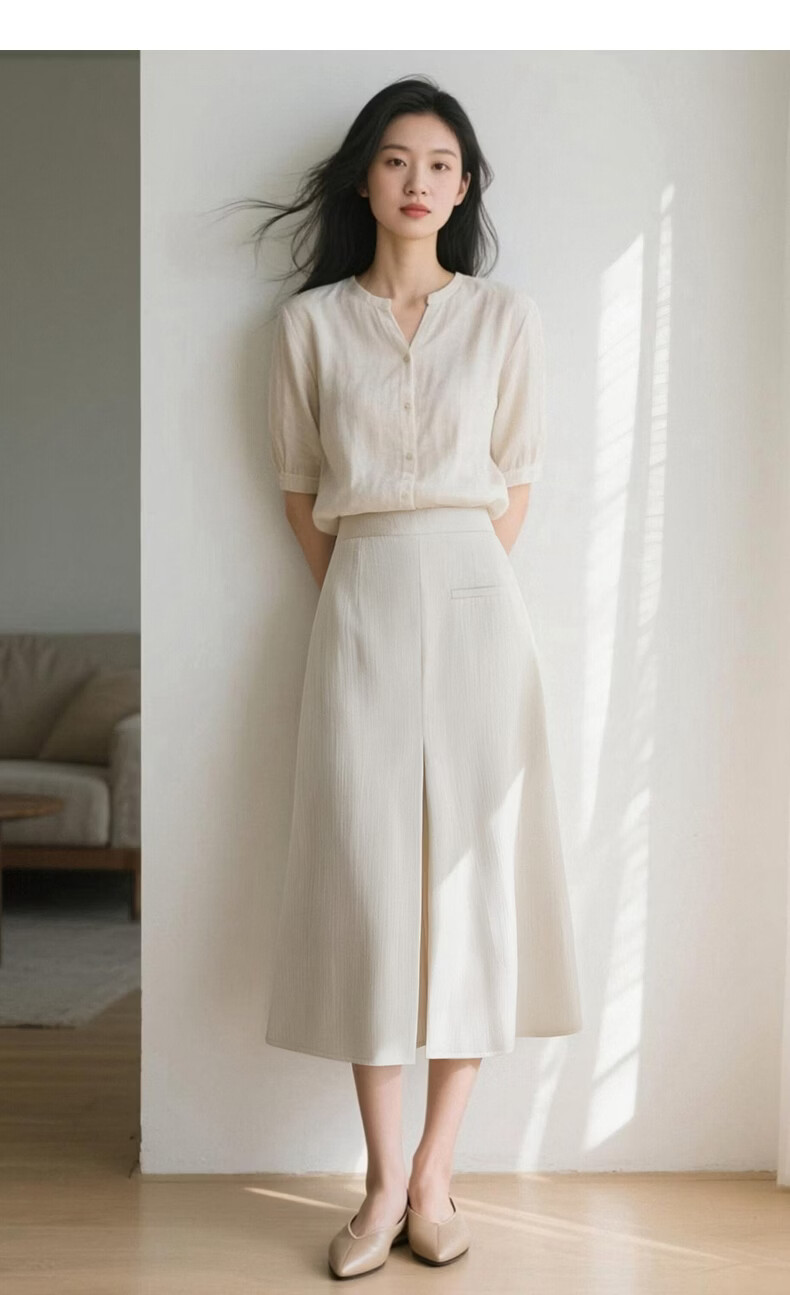 晚白【新品】2026春款时尚纯色高腰裙子亲肤舒适气质百搭半身裙 米杏色 M