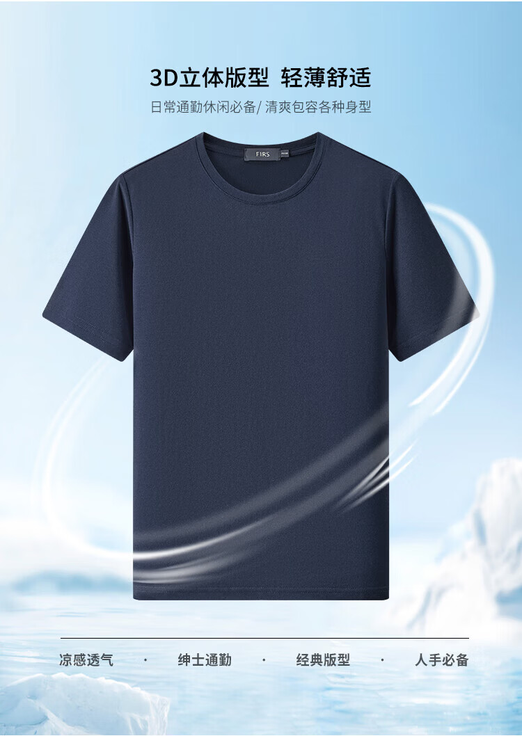 杉杉(FIRS)【凉感桑蚕丝】短袖T恤男夏季轻薄透气纯色简约休闲亲肤柔软上衣 藏青 M (170/88A)