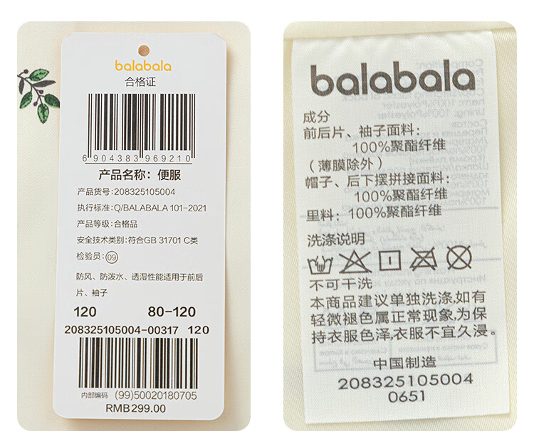 巴拉巴拉童装春秋硬核户外冲锋衣男童女童儿童外套【bp】防风208324105205