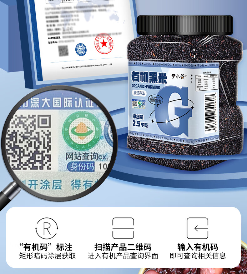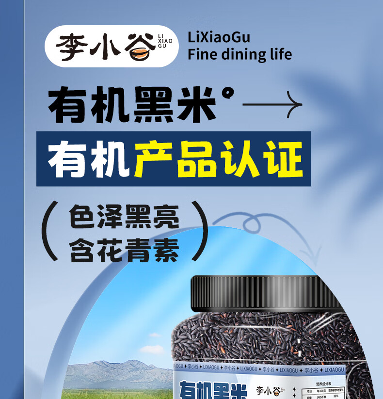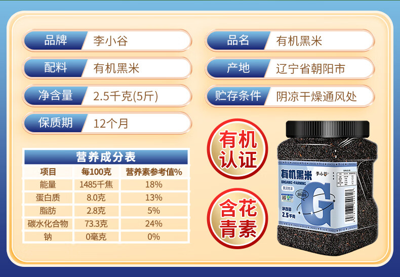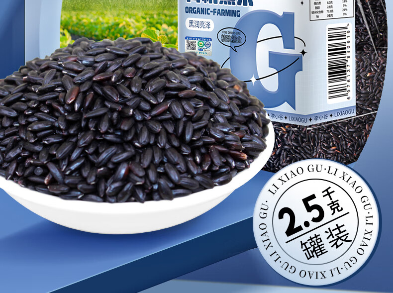 李小谷 有机黑米5斤罐装(粥米伴侣东北粗粮黑色杂粮腊八宝粥原料)