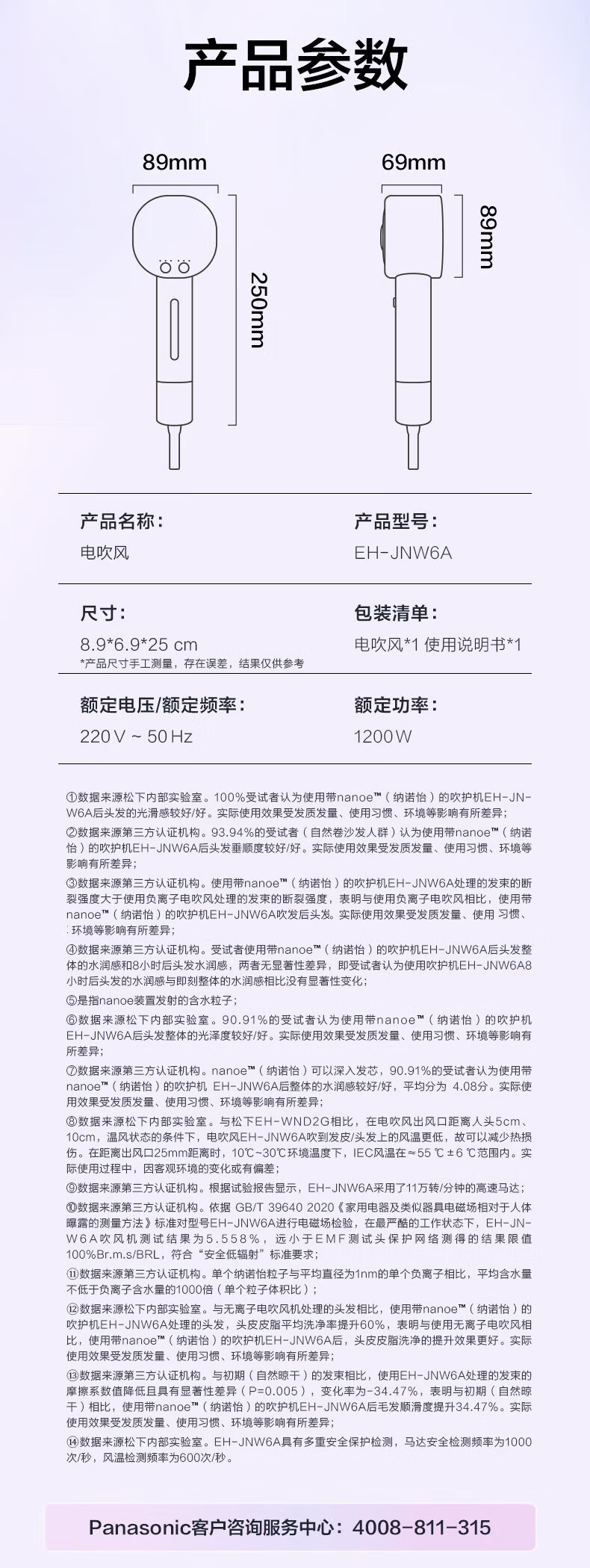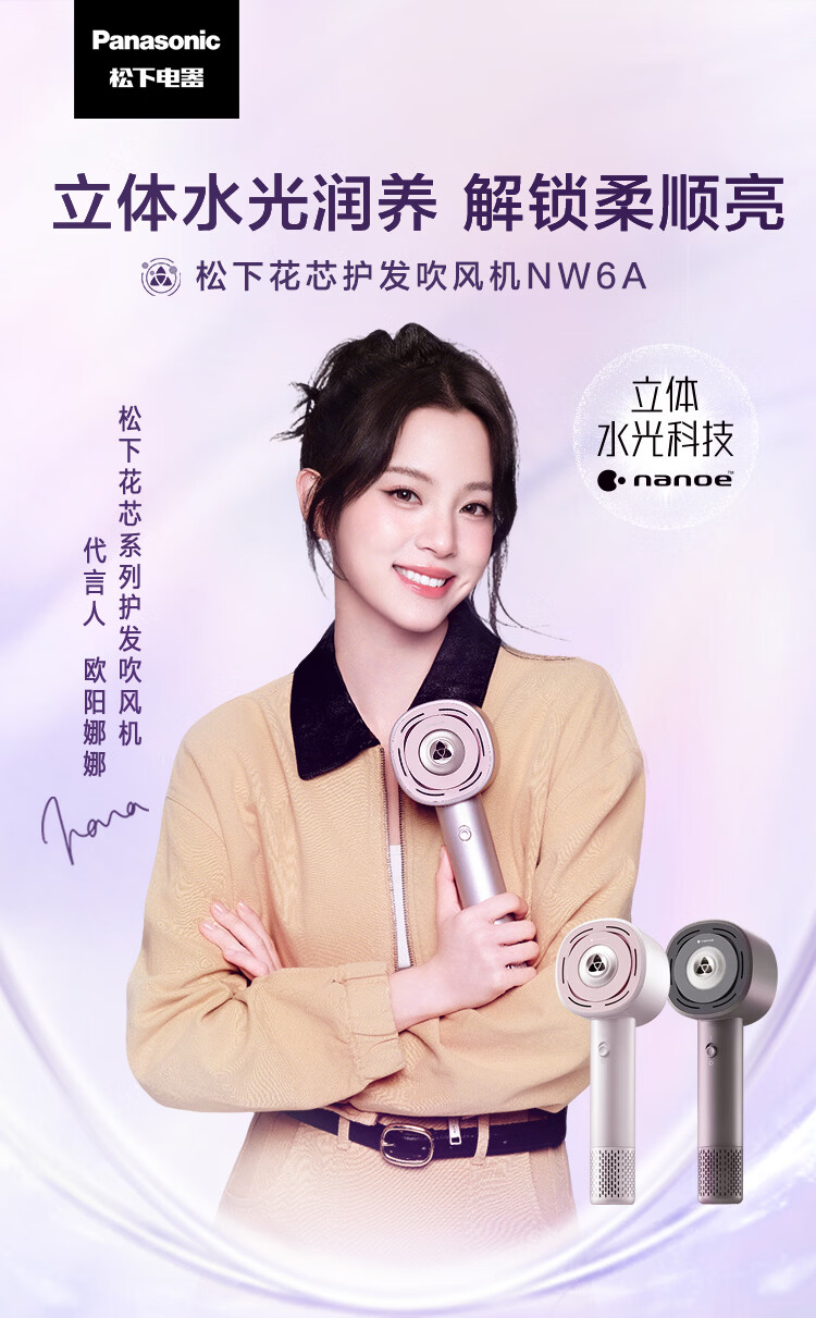 松下(Panasonic)【欧阳娜娜同款】花芯电吹风家用高速护发吹风机纳诺怡水光离子送女友新年礼物芍药粉EH-JNW6A