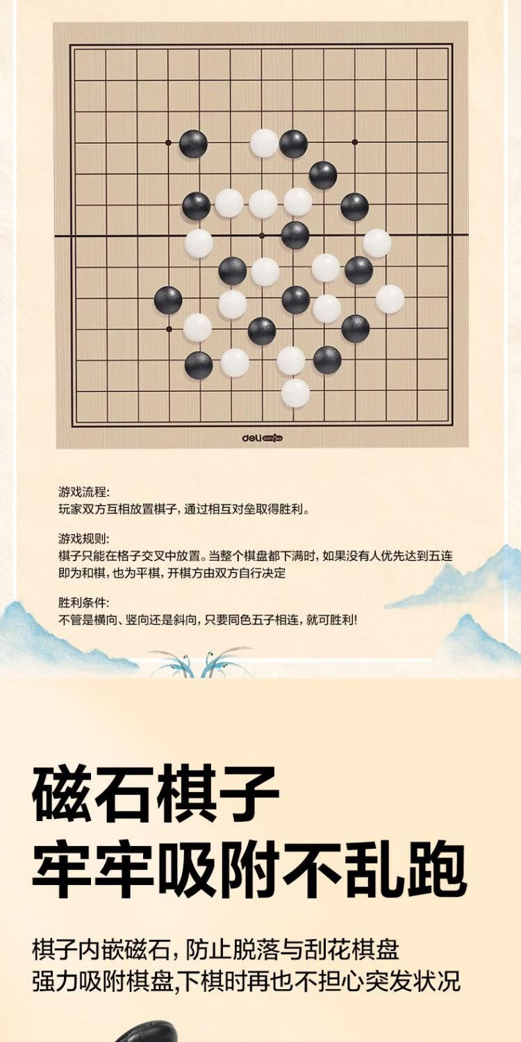 得力(deli)儿童磁石围棋五子棋折叠棋盘桌游小号男女孩 开学玩具礼物
