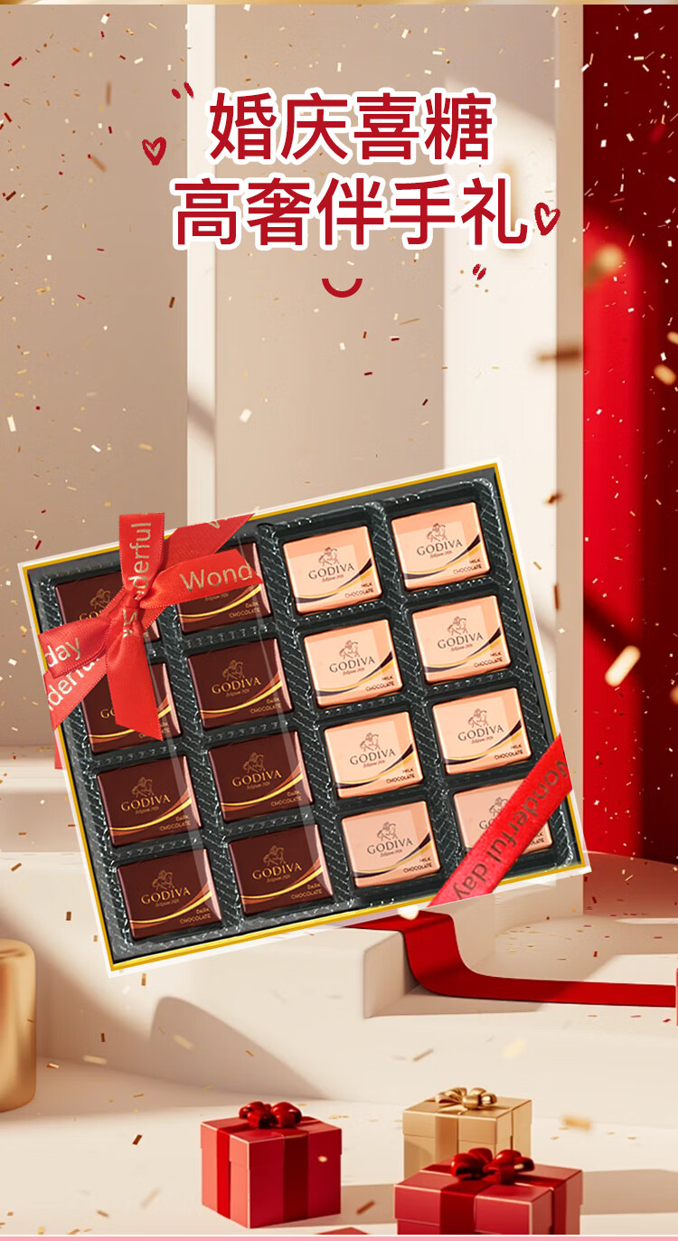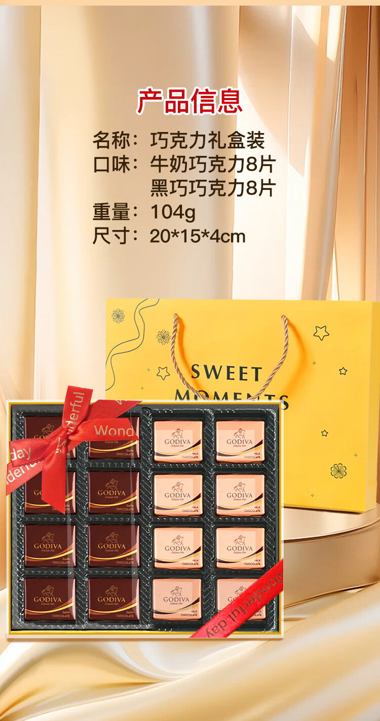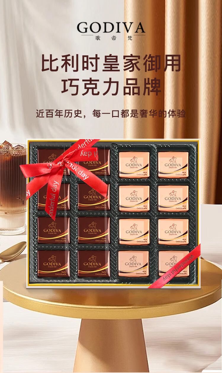 歌帝梵(Godiva) 巧克力礼盒 新年礼物 黑巧牛奶16片 生日礼送女友女生男朋友 [亚克力材质]礼盒16片送礼袋