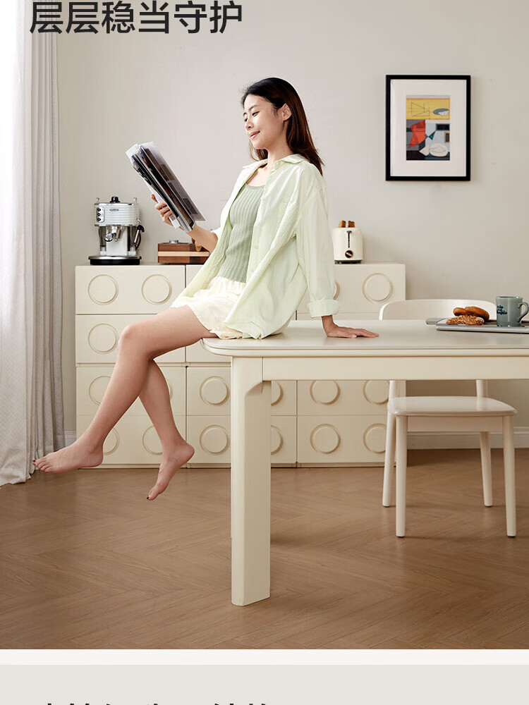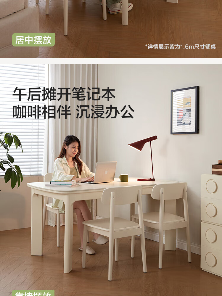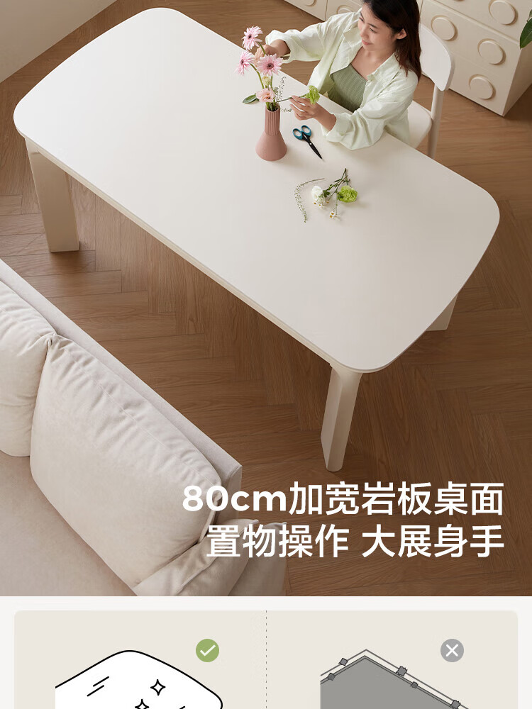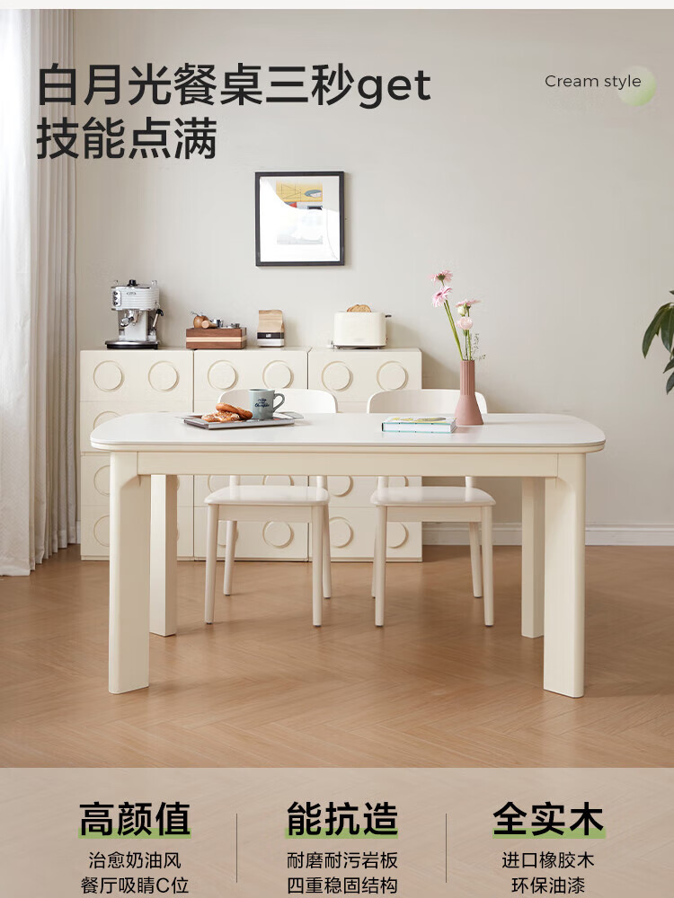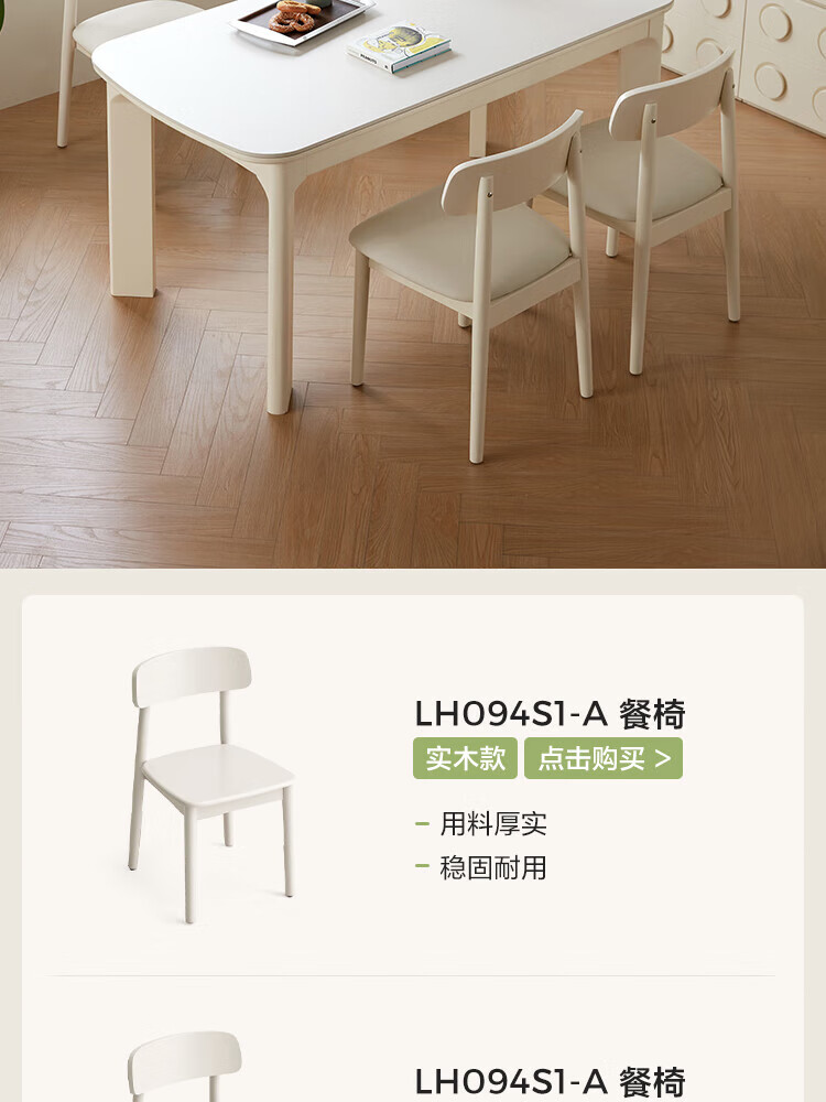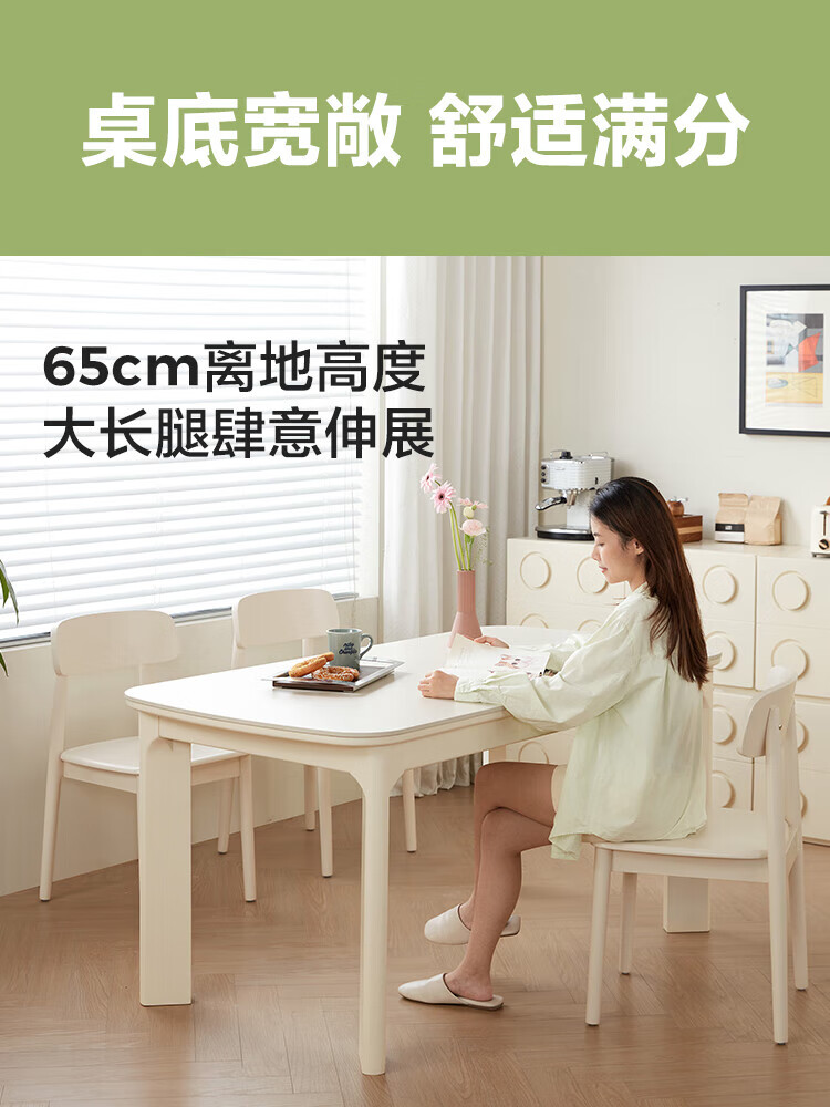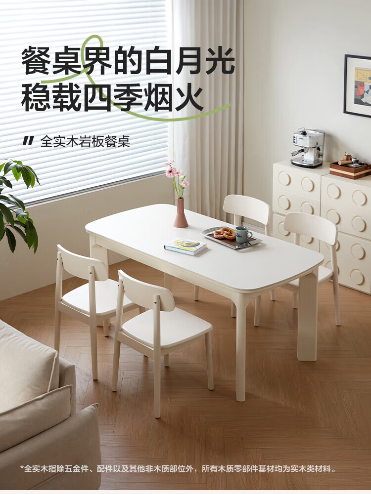 林氏家居实木餐桌餐厅岩板饭桌椅家用吃饭桌子白色奶油风方桌木业LH094R4 【1.2m】实木餐桌