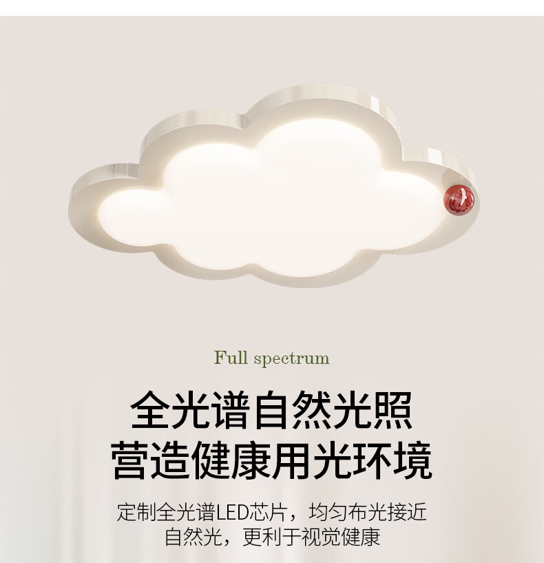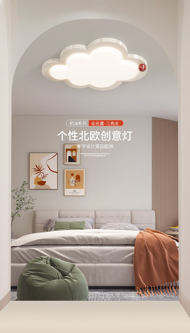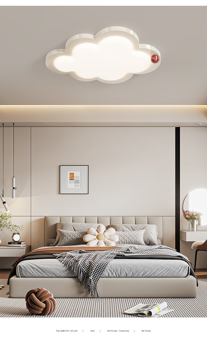 卡伯森卧室吸顶灯现代简约大气设计师款高档全光谱护眼书房吸顶灯奶油风 奶白色-长50*宽37cm【三色变光】