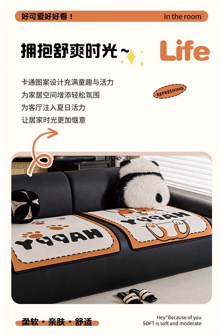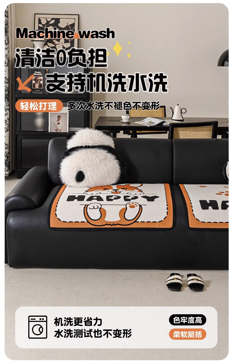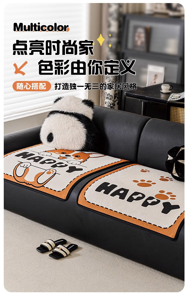 金拾美月卡通分体沙发垫2026新款四季通用沙发套罩固定防滑一片式盖布巾 柴犬-白(单个装/图案随机发出) 70cm*70cm