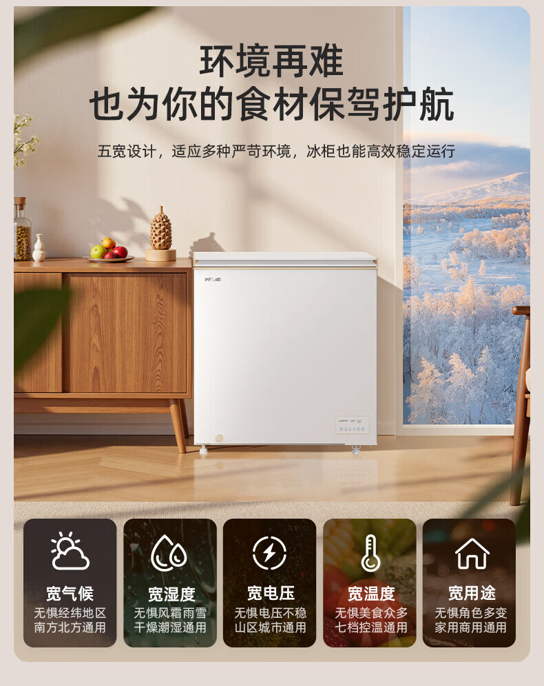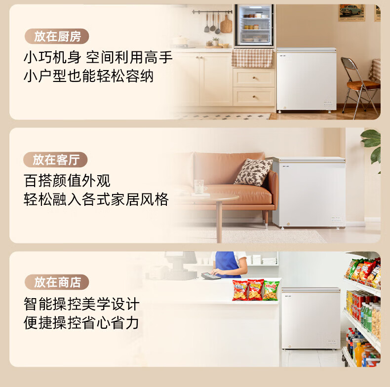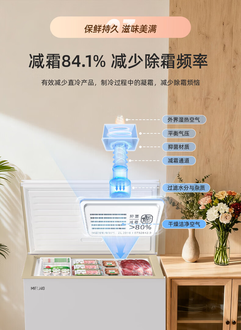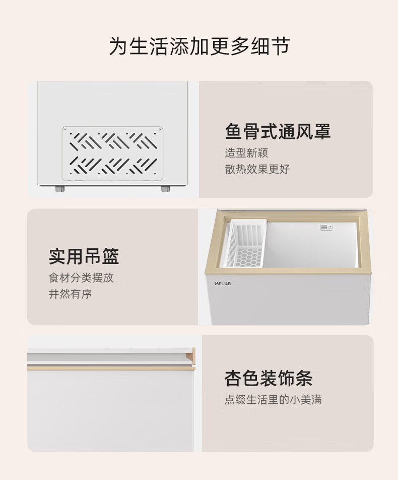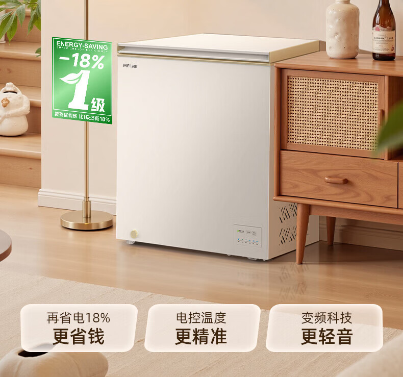 美菱(MeiLing)小美满200升单温家用冷柜电控变频节能新一级深冷速冻大冷冻力囤货钢胆BC/BD-200DTPCX1 杏运灰 200升 BC/BD-200DTPCX1