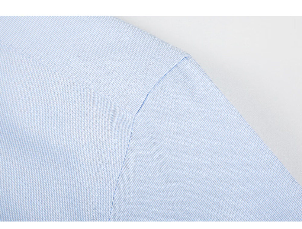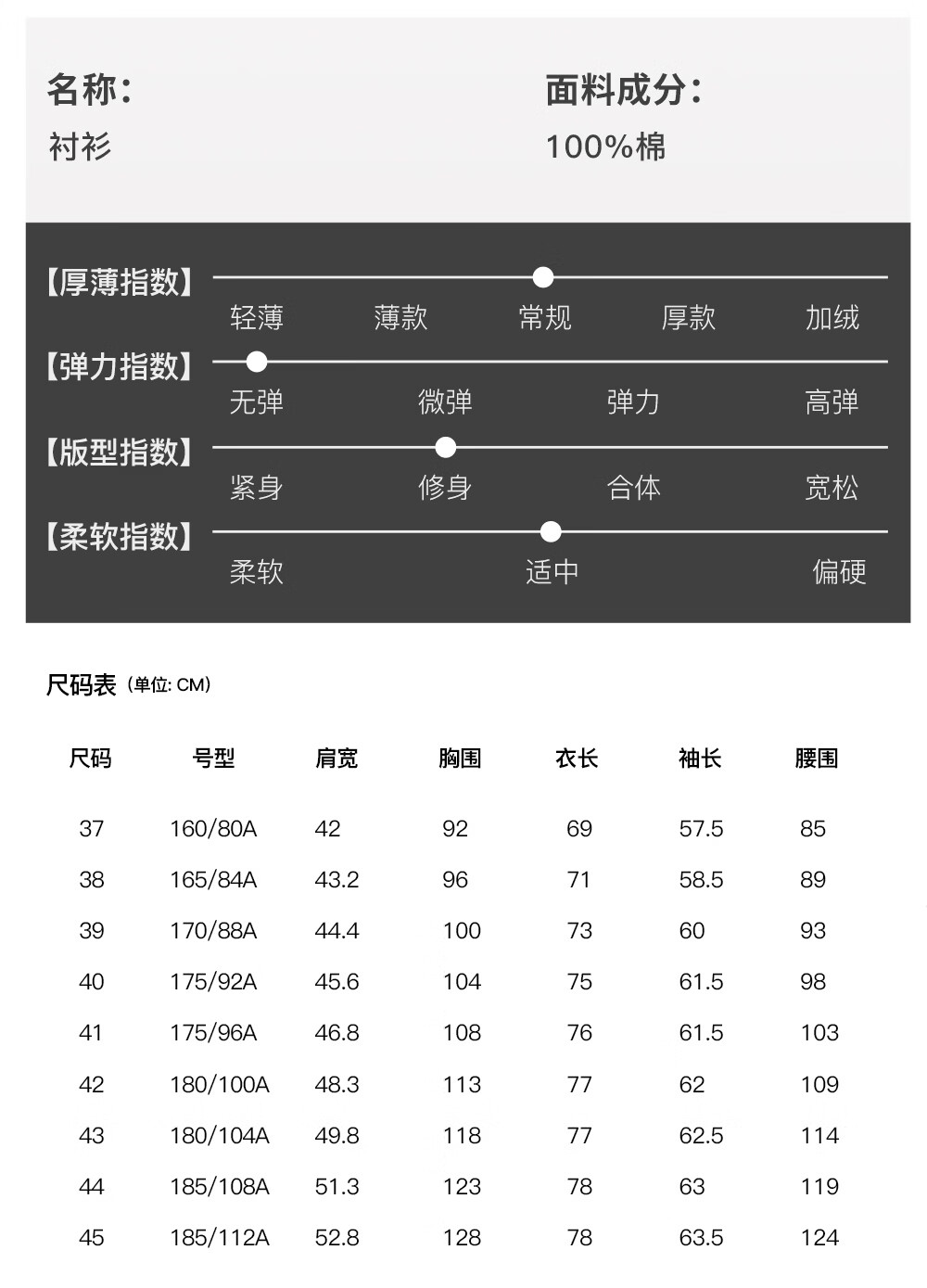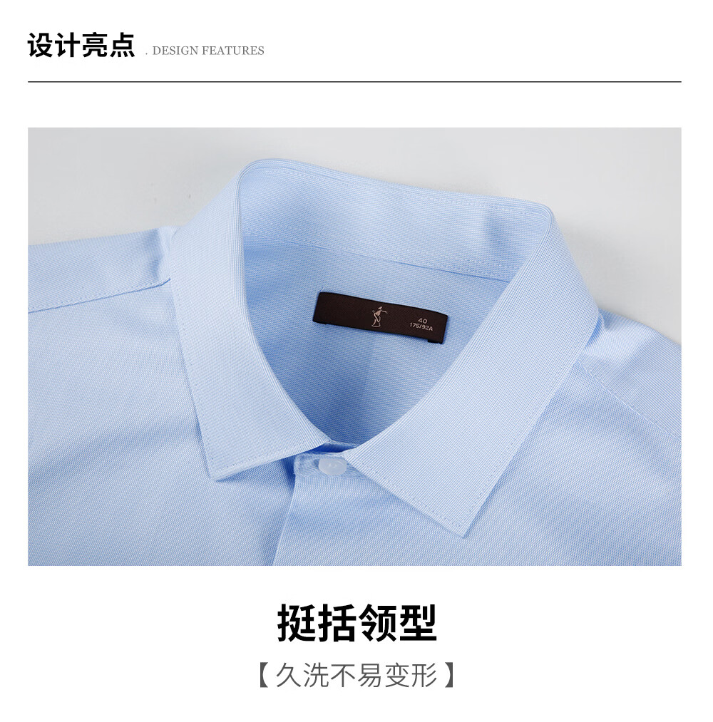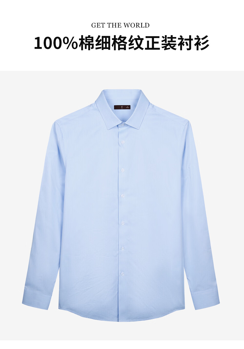 才子(TRIES)男士春季100%棉细格纹长袖衬衫商务正装修身抗皱纯棉衬衣 蓝色 38 165/84A