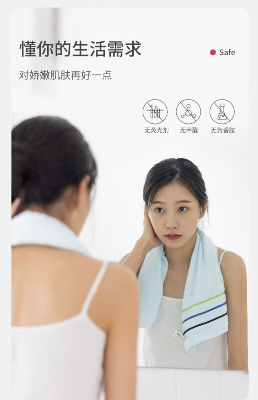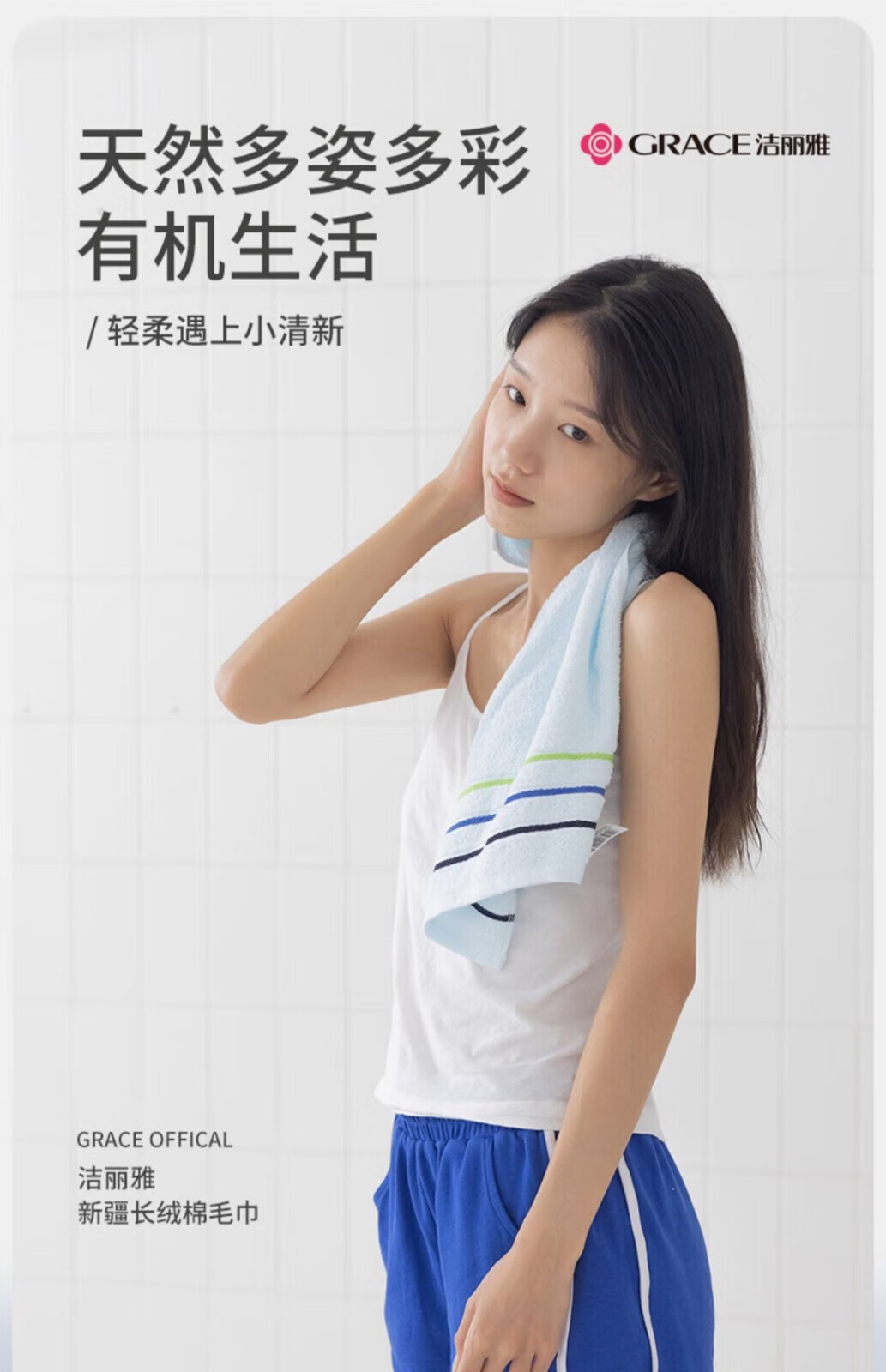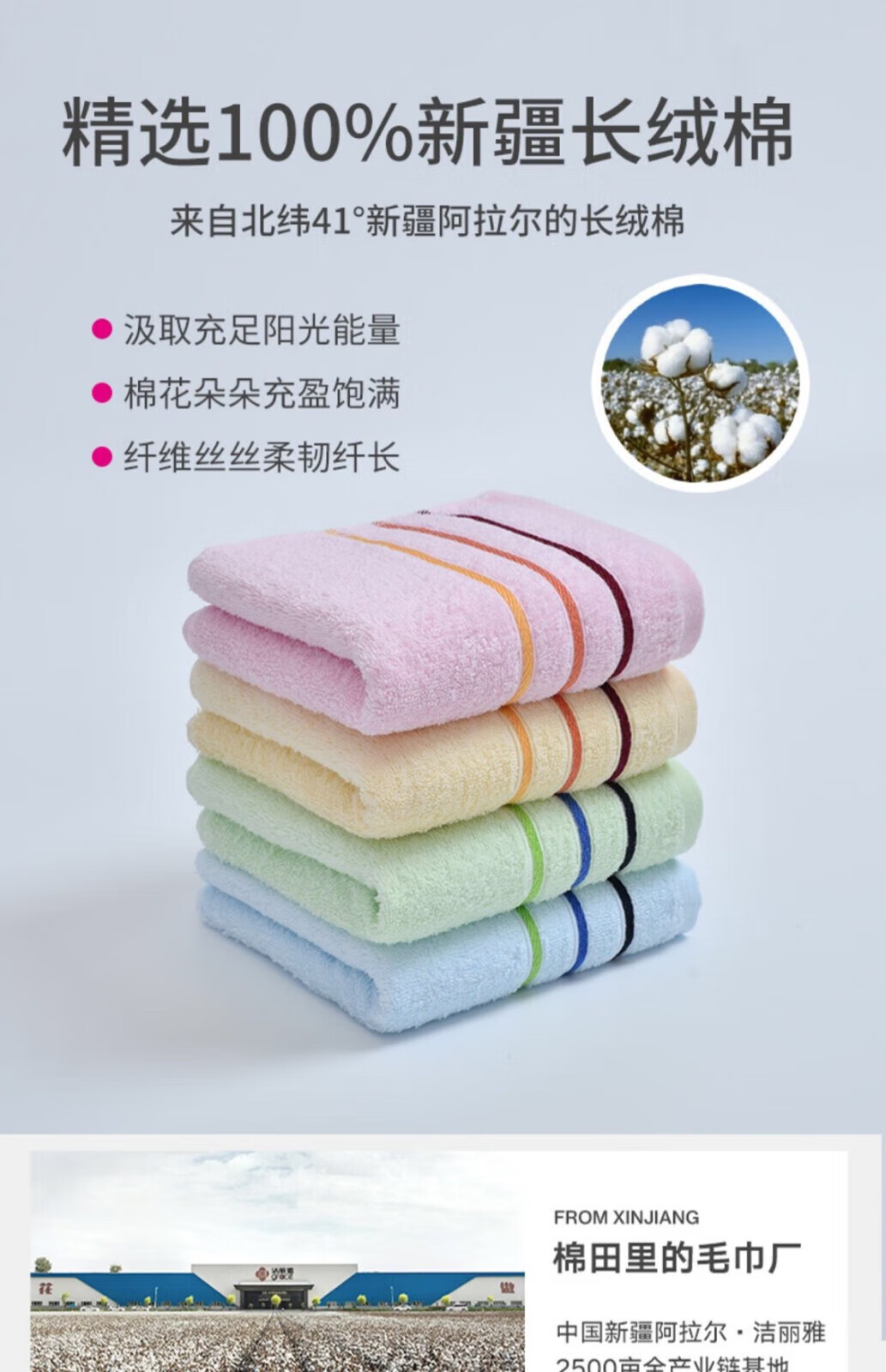 洁丽雅(grace)纯棉毛巾柔软洗脸家用吸水成人男女洗澡不掉毛面巾 3293三条装粉+兰+米黄 纯棉/不掉毛不掉色74*33CM