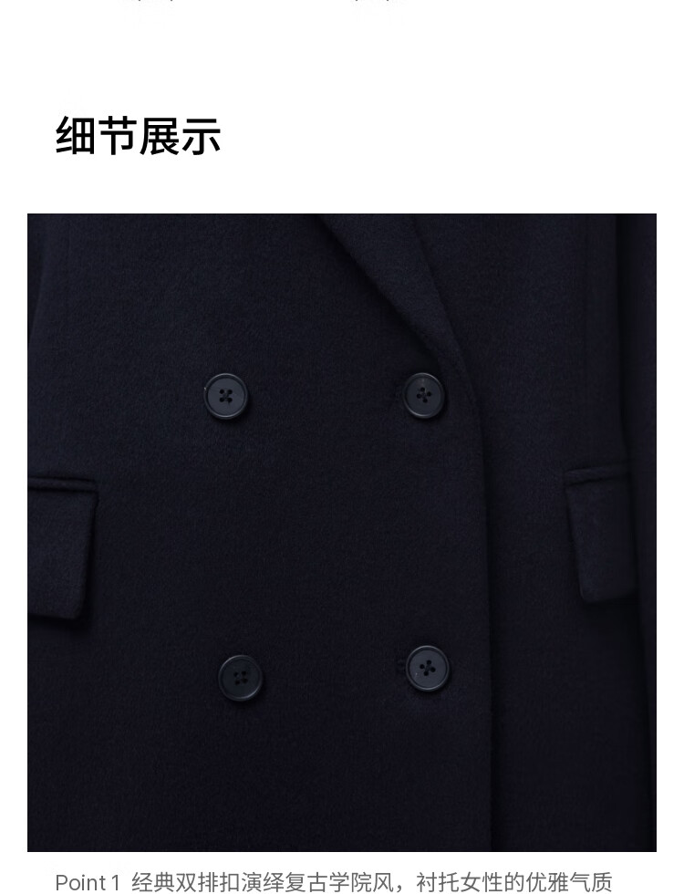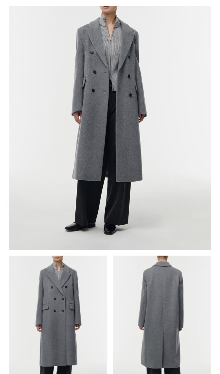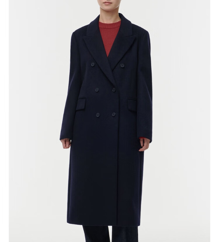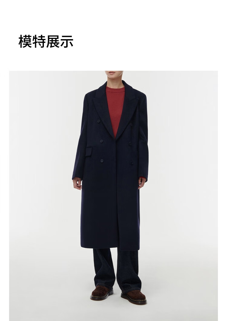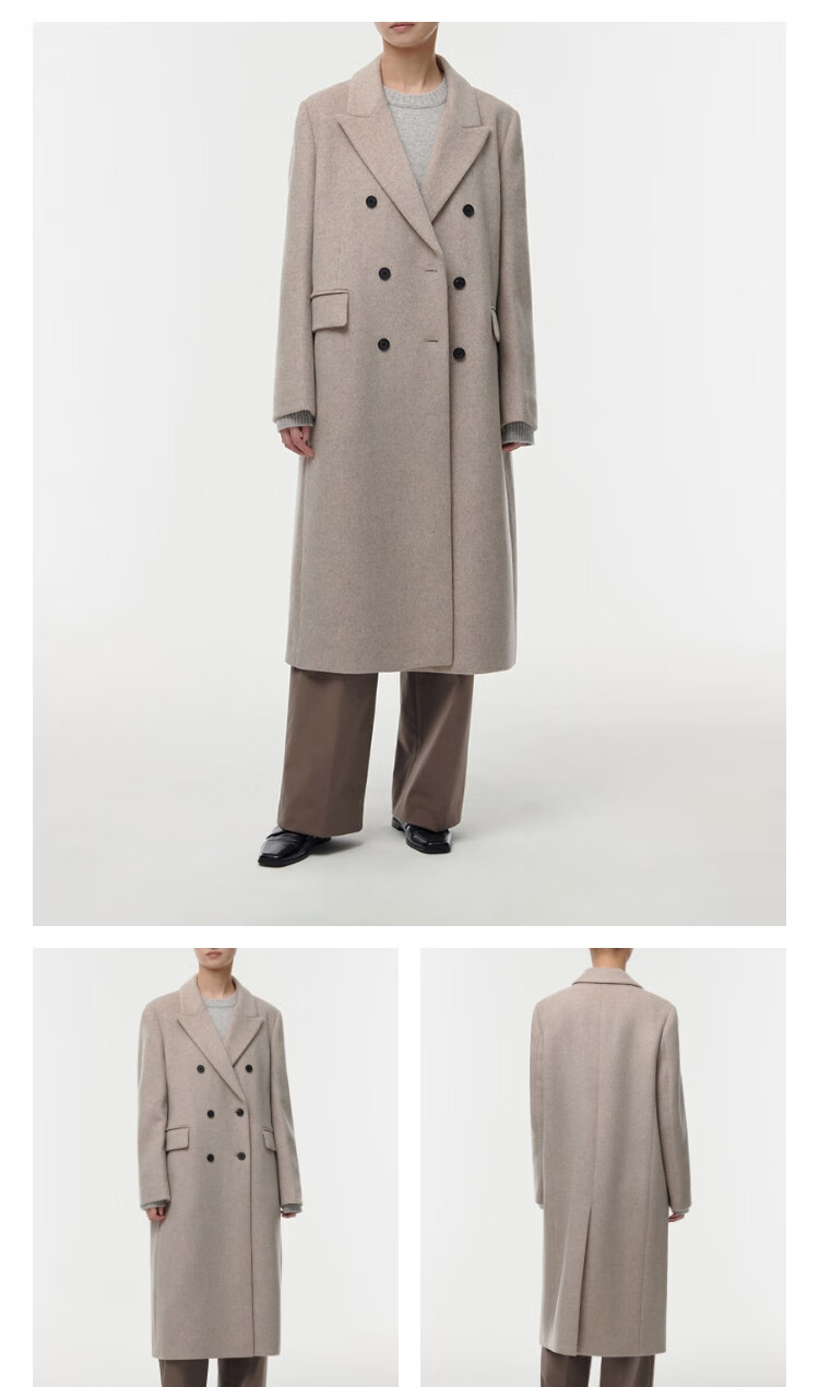 MUSINSA STANDARD【含羊绒羊毛】韩国秋冬显瘦复古百搭双排扣长大衣 黑色(BK) L