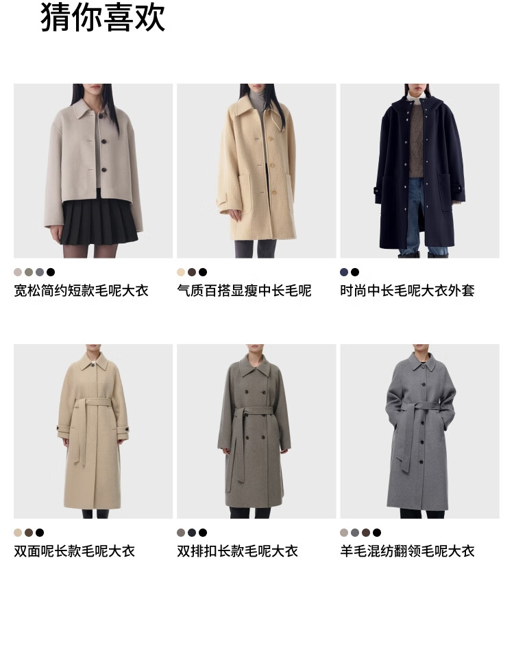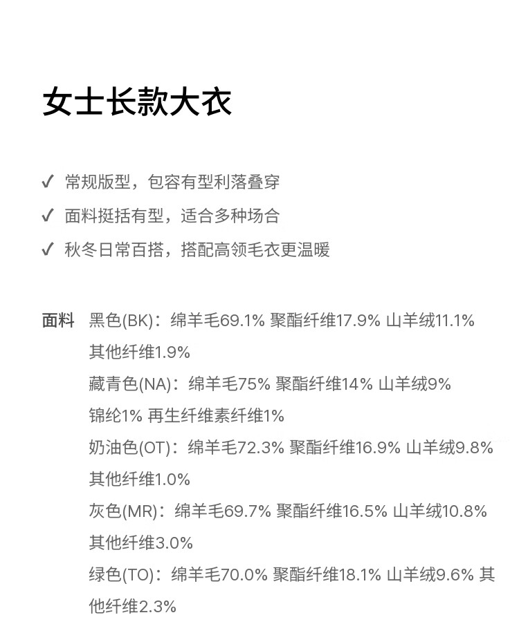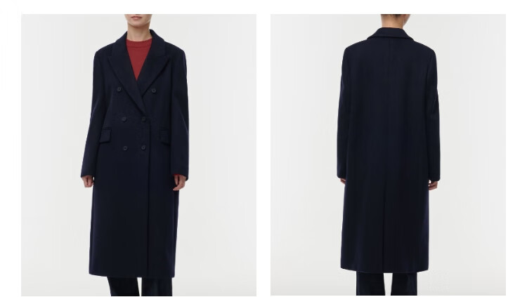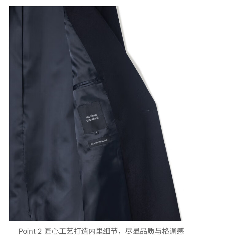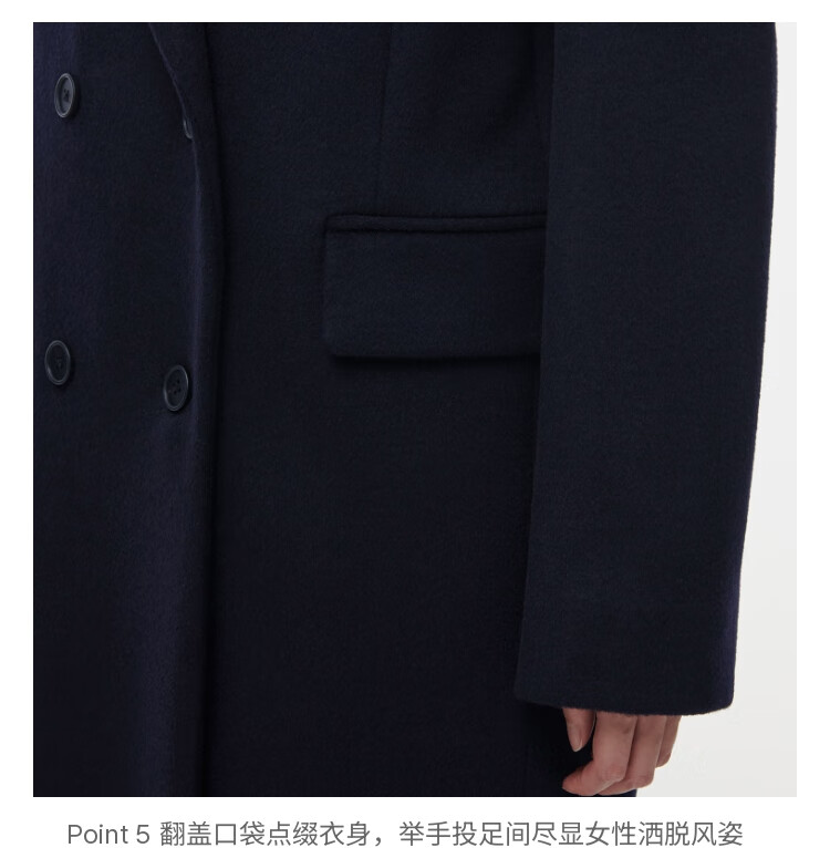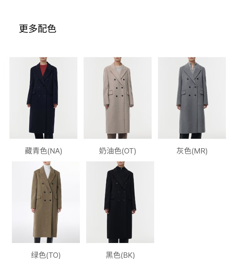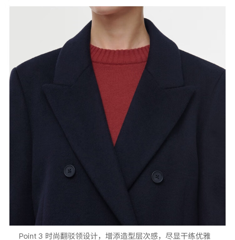MUSINSA STANDARD【含羊绒羊毛】韩国秋冬显瘦复古百搭双排扣长大衣 黑色(BK) L