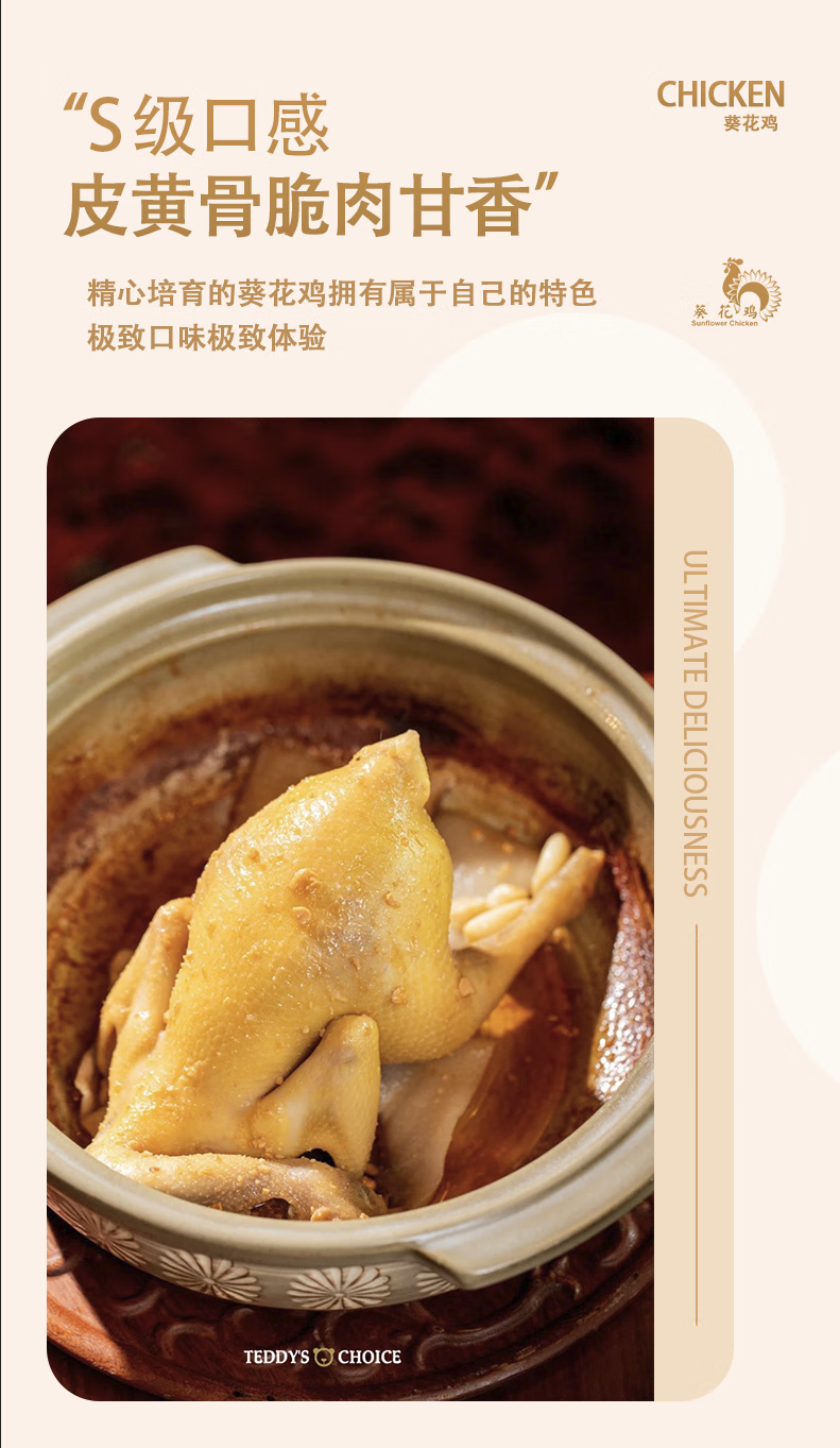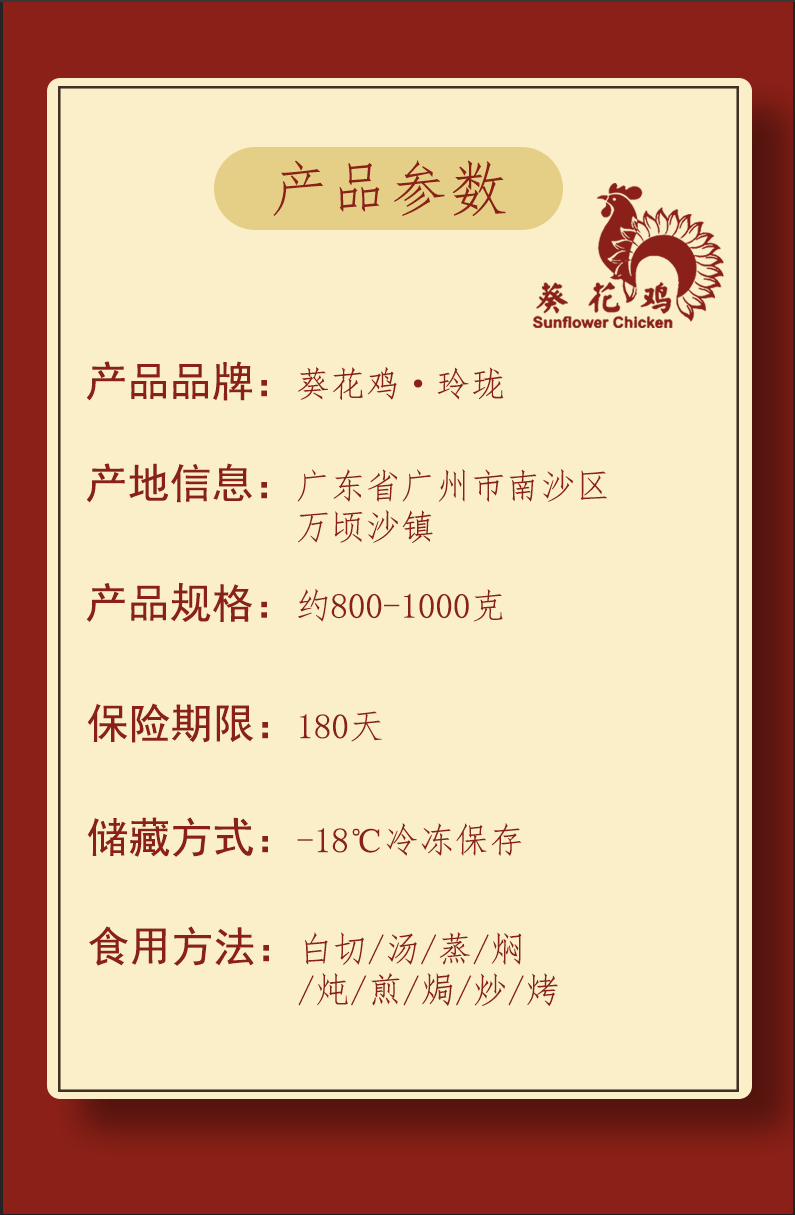 【正宗广东南沙葵花鸡】800-1000g生鲜/白切母鸡整鸡营养现宰顺丰 精选白切鸡(熟食)